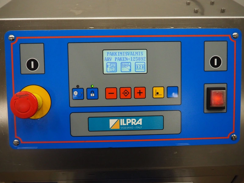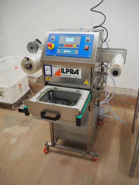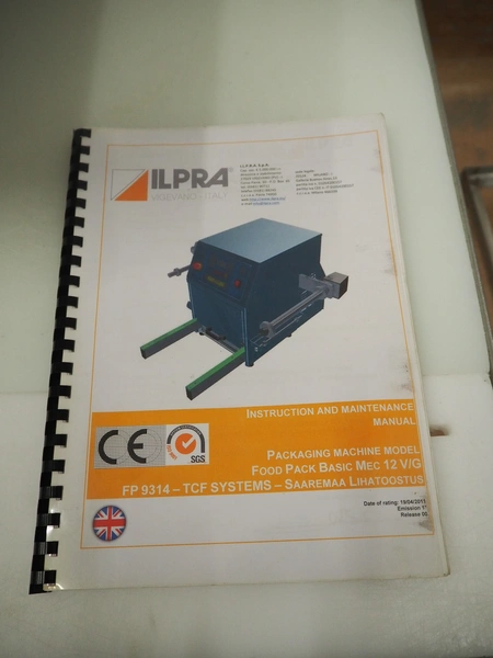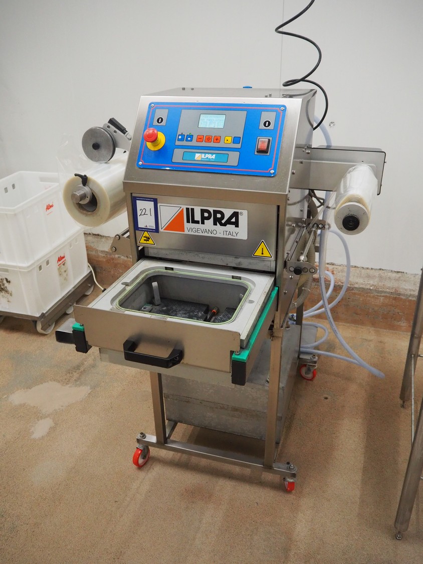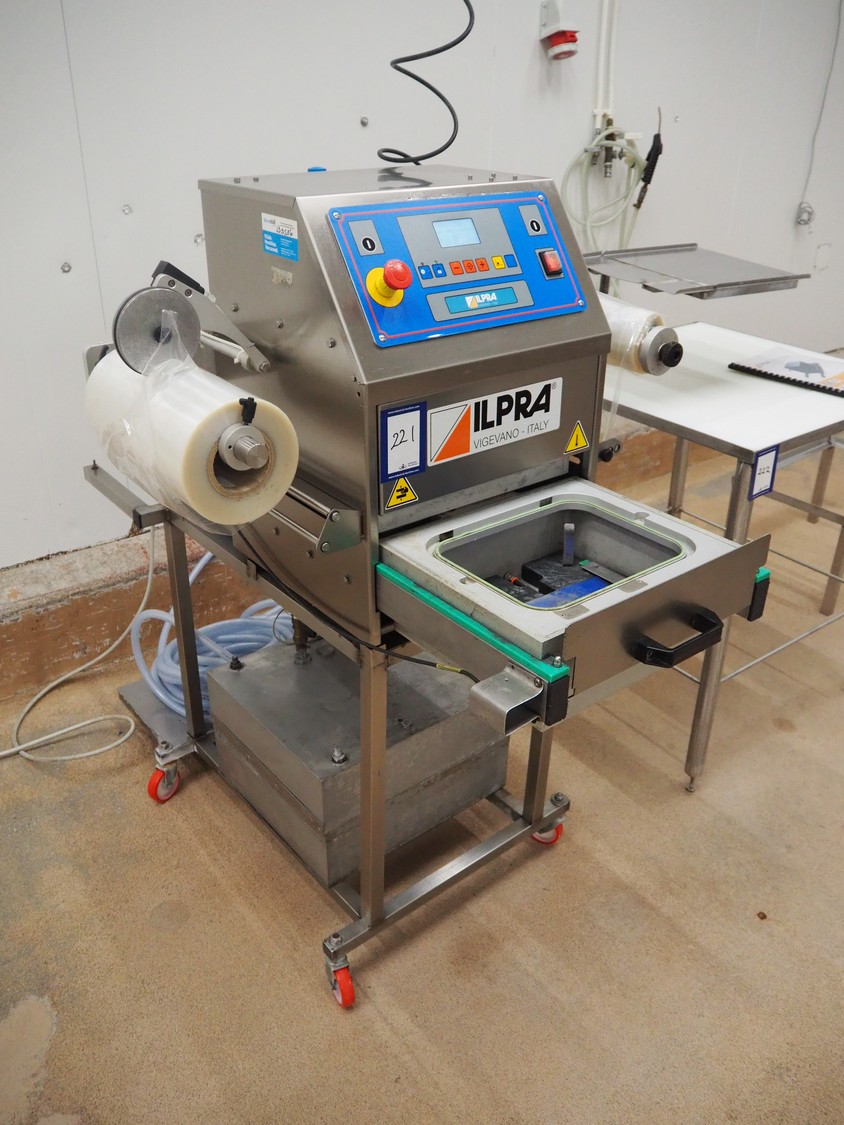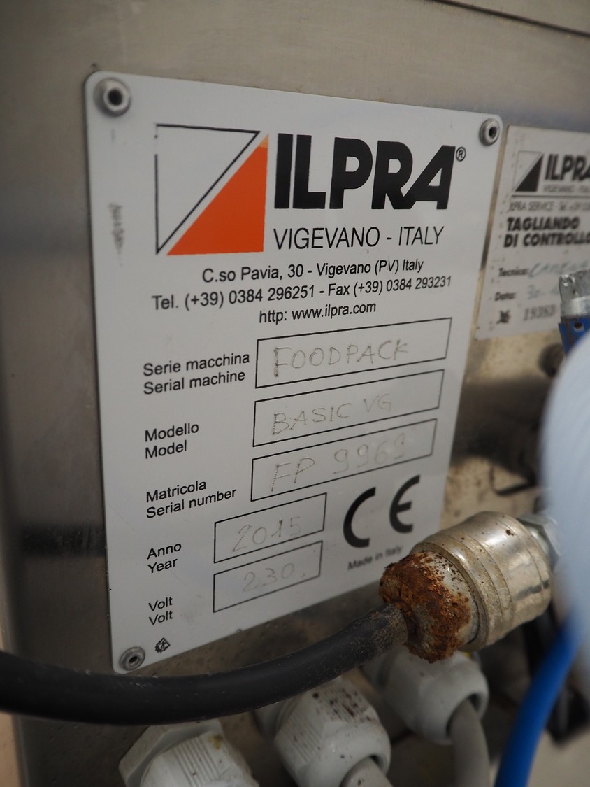 Ilpra traysealer, serie: FOODPACK, model: BASIC V/G, serial number: FP9969, year of construction: 2015, 230 V, film width: 310 mm, dimensions dye: 295 mm x 230 mm, total dimensions: 1320 mm x 870 mm x 1320 mm.
