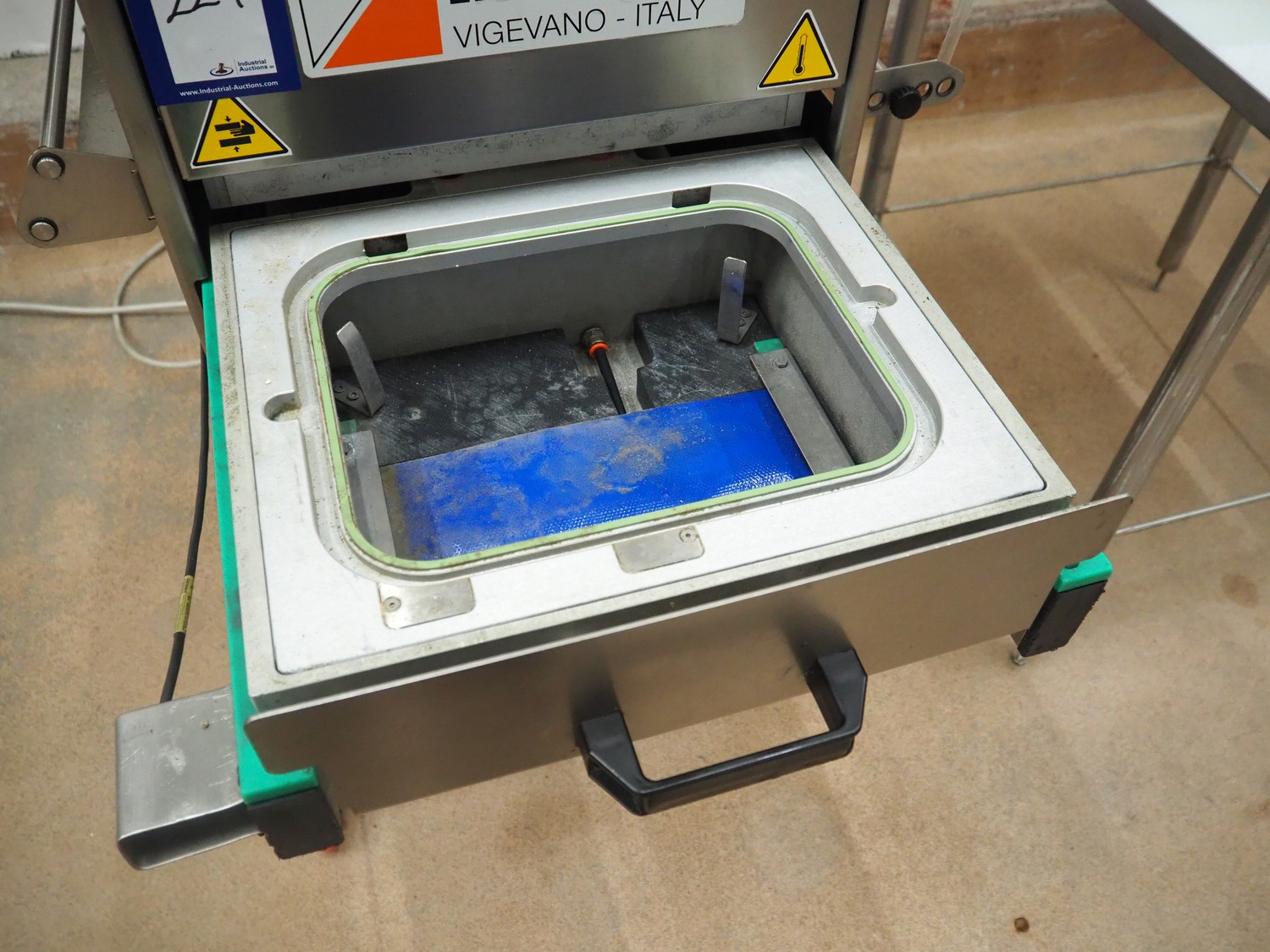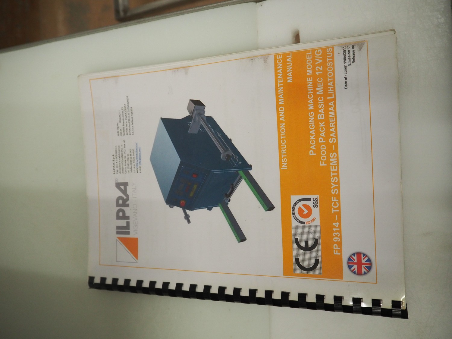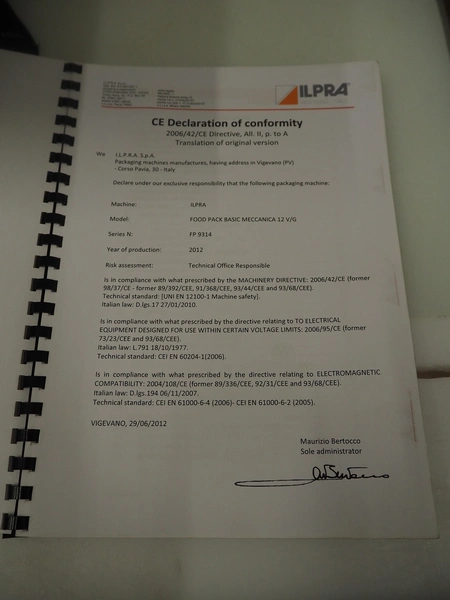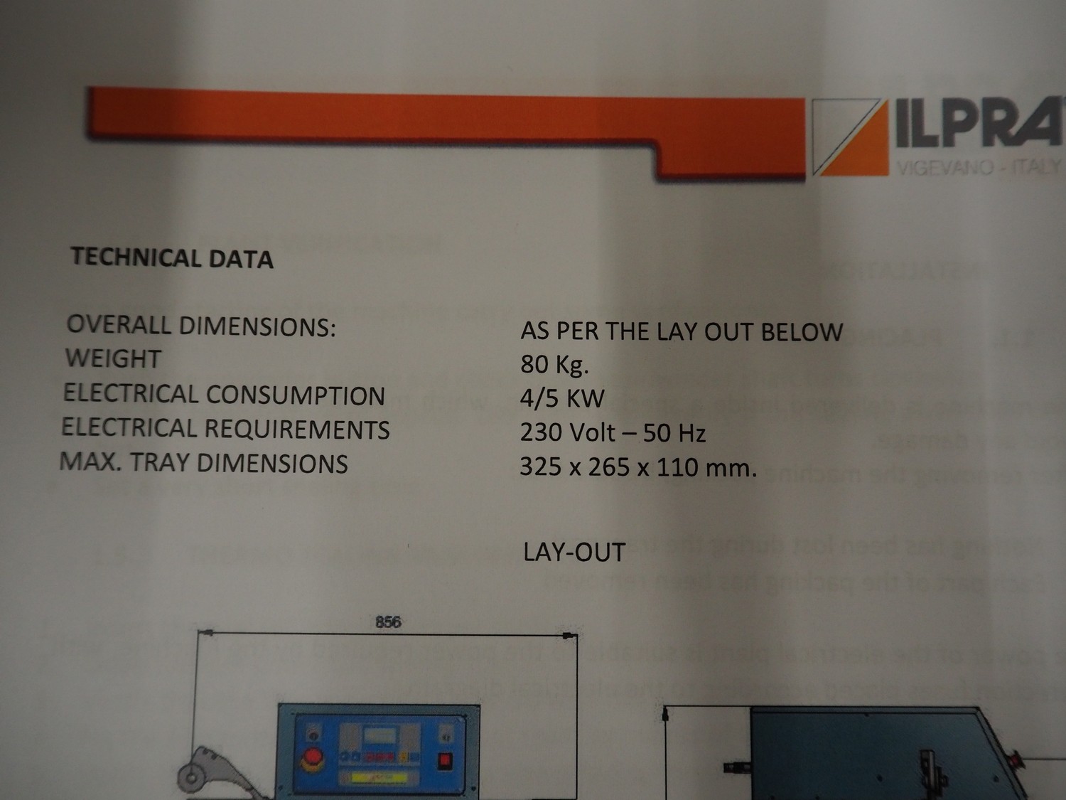 Ilpra traysealer, serie: FOODPACK, model: BASIC V/G, serial number: FP9969, year of construction: 2015, 230 V, film width: 310 mm, dimensions dye: 295 mm x 230 mm, total dimensions: 1320 mm x 870 mm x 1320 mm.