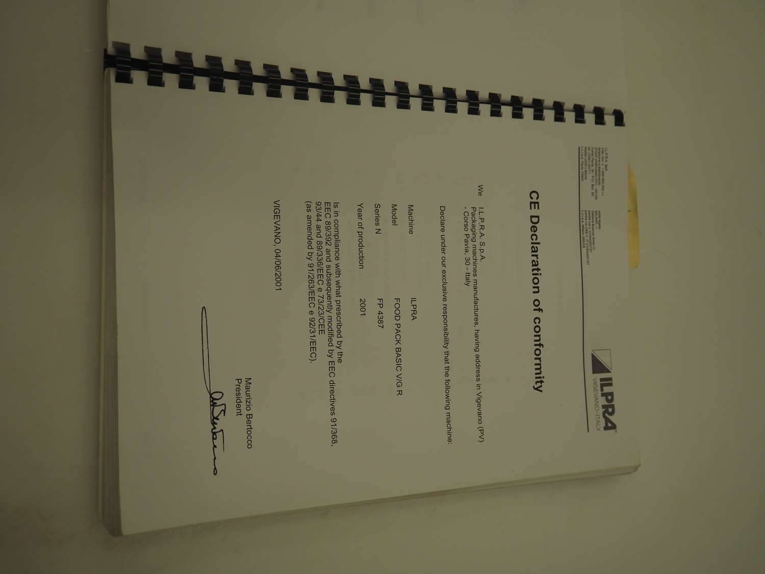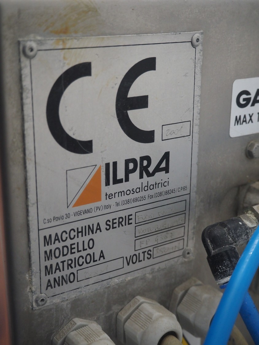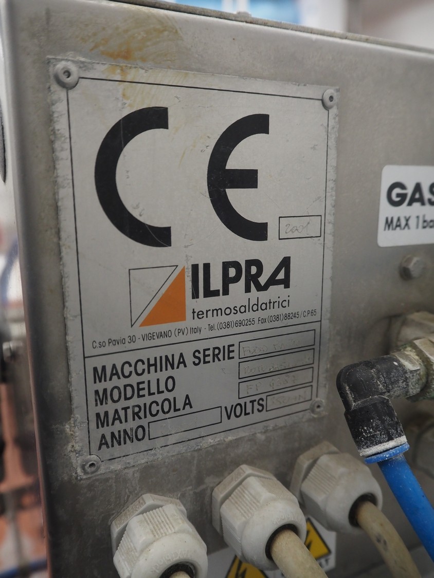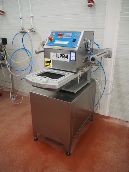 Ilpra mobile traysealer, serial machine: Foodpack, model: Rotobasic V/G, serial number: FP4387, year of construction: 2001, 230 V, dye: 220 mm x 290 mm, with Busch vacuum pump, total dimensions: 800 mm x 1100 mm x 1450 mm.