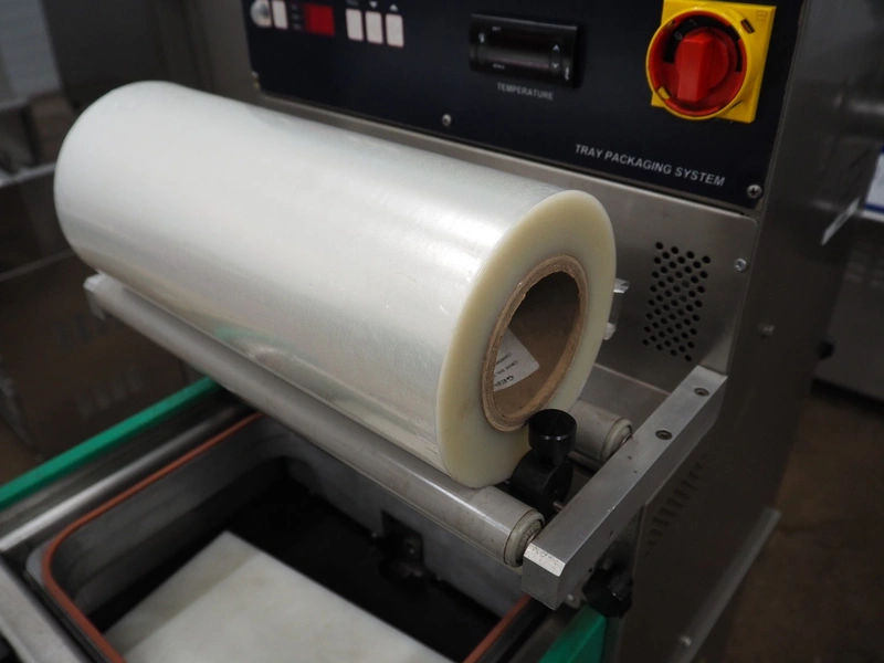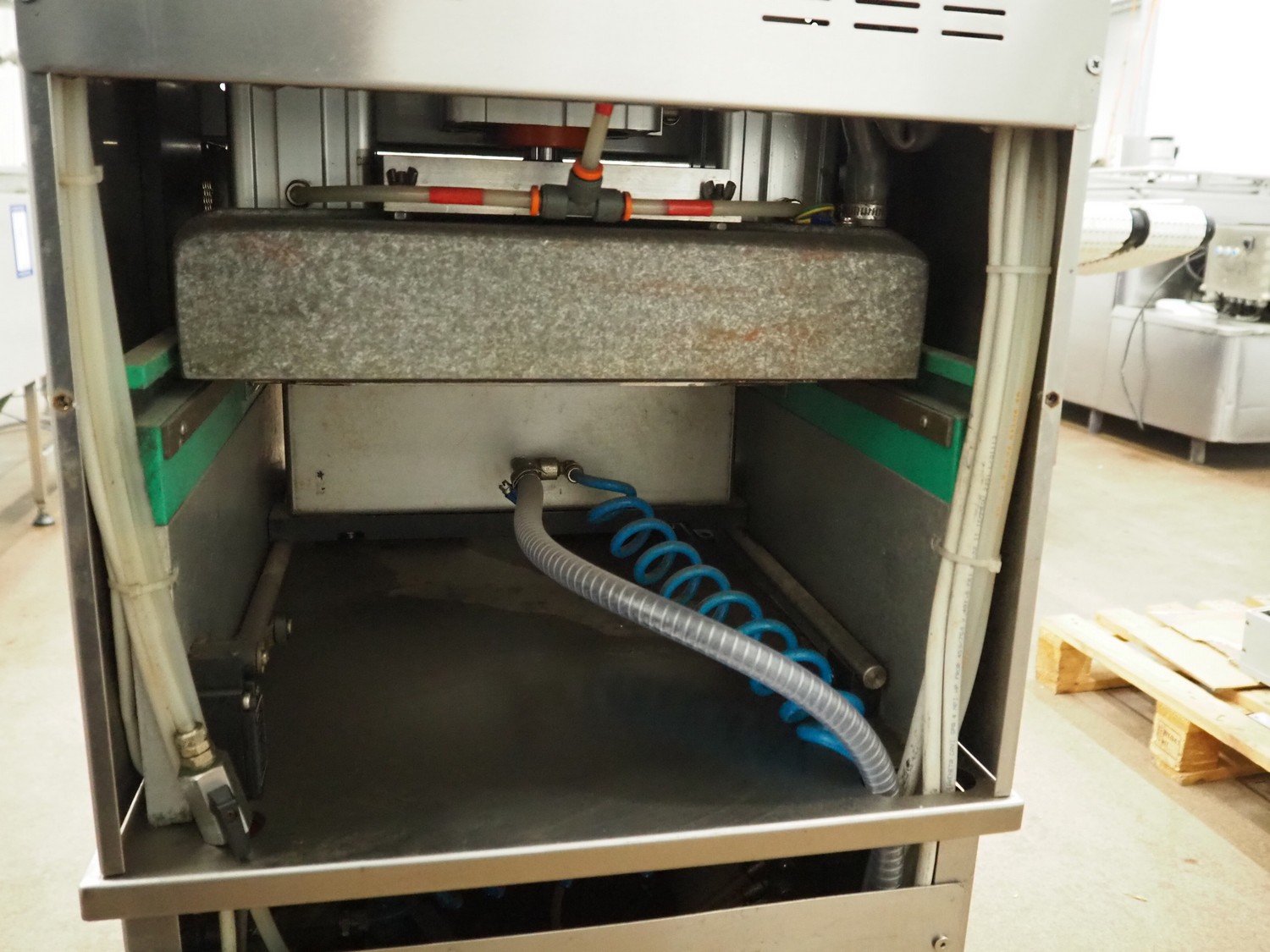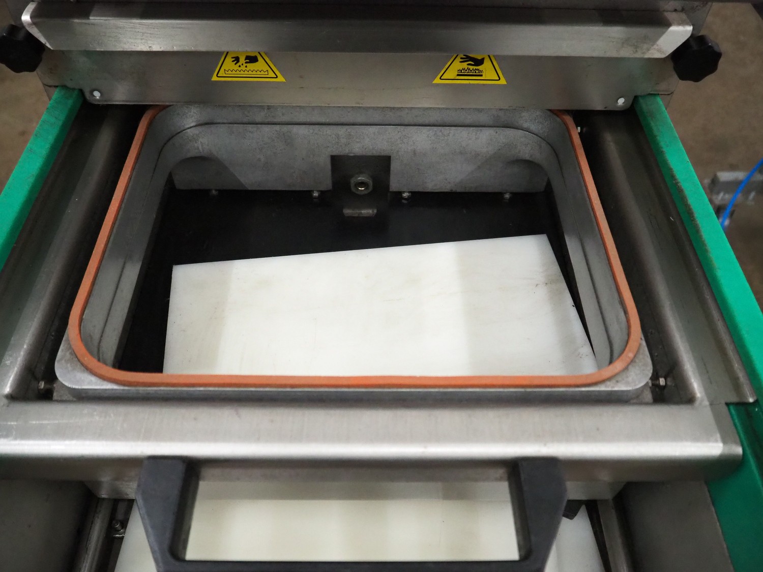 Europack mobile traysealer, film width: 340 mm, dye: 300 mm x 250 mm, total dimensions: 720 mm x 460 mm x 1300 mm.