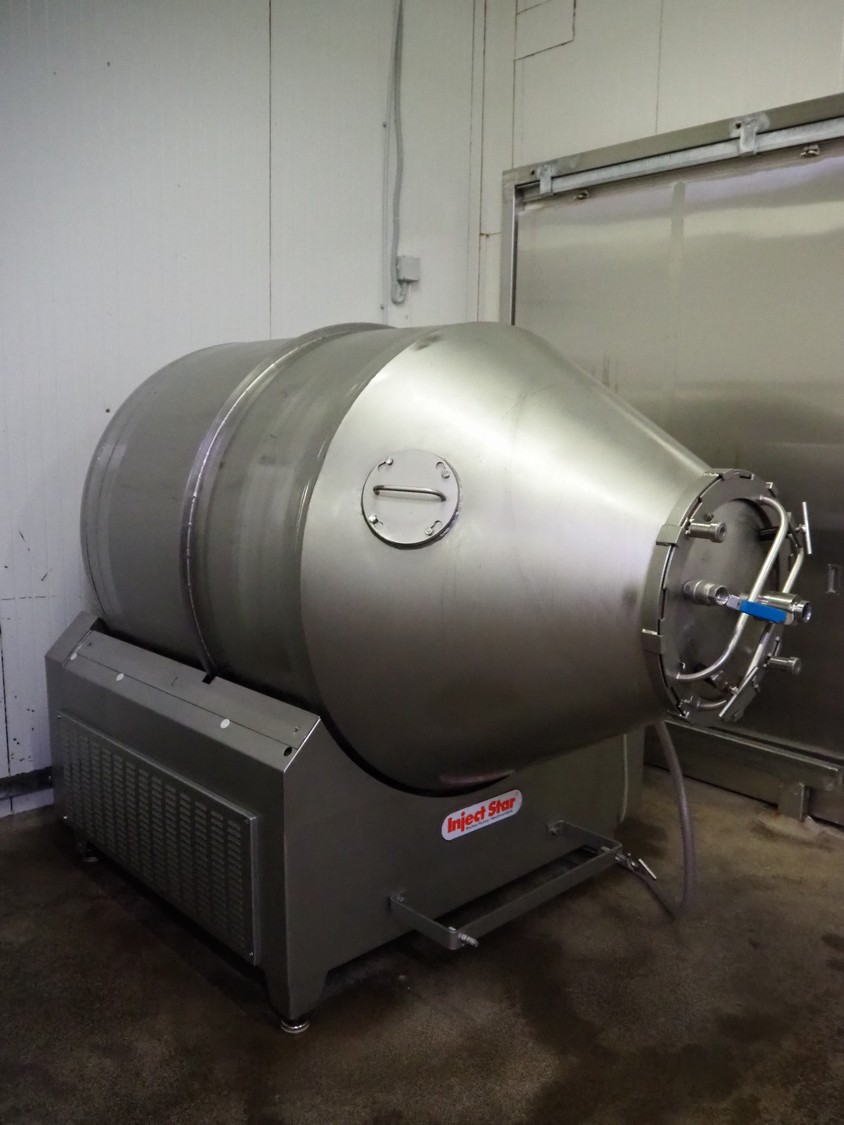 Inject Star vacuum tumbler, volume: 2200 litre, Busch vacuum pump, dimensions: 2400 mm x 1700 mm x 1860 mm.