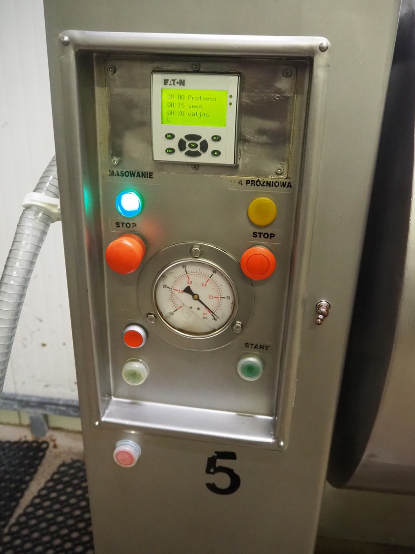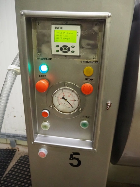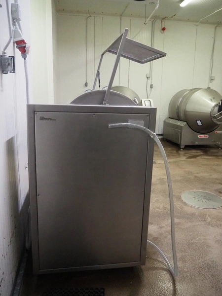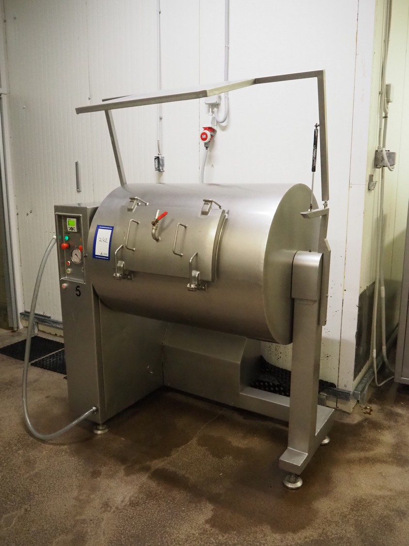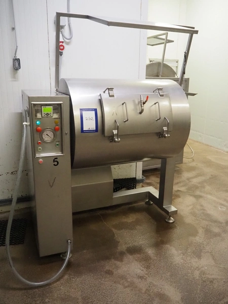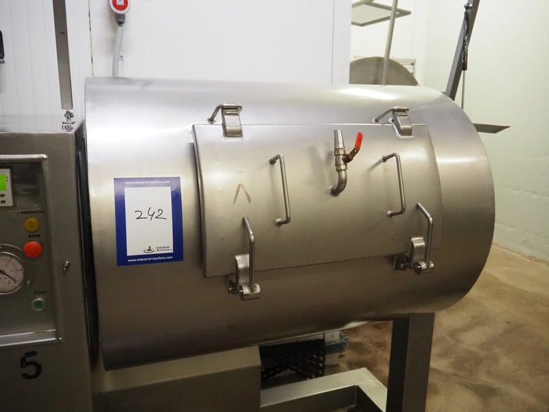 Karpowicz vacuum tumbler, type: MK-600, number: 1189, year of construction: 26-09-97, volume: 600 litre, dimensions: 1650 mm x 1120 mm x 2150 mm.