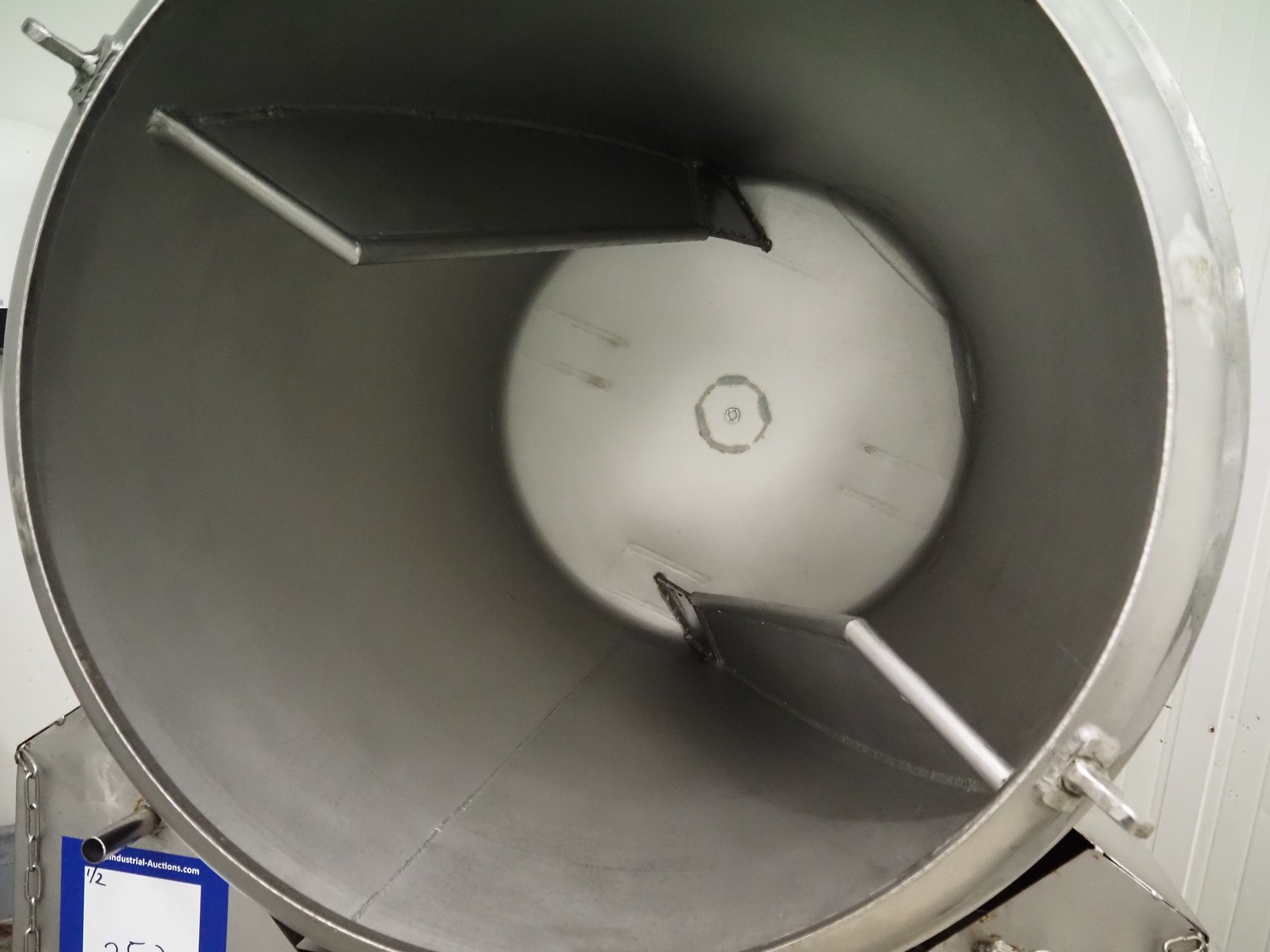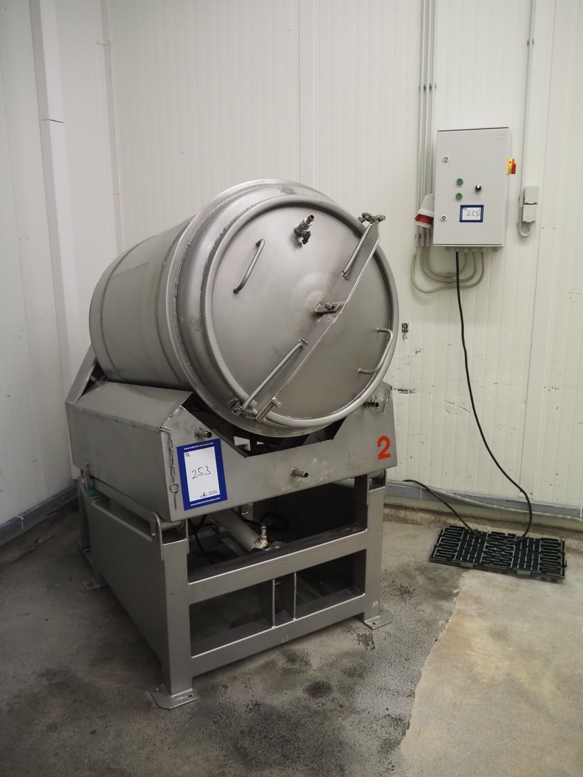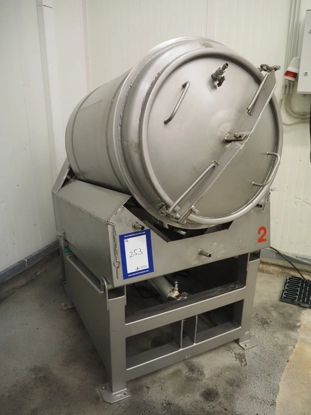 S/s tumbler, dimensions drum: Ø 730 mm x 1050 mm, total dimensions: 1380 mm x 900 mm x 1700 mm. Including switch cabinet, dimensions switch cabinet: 300 mm x 210 mm x 500 mm.