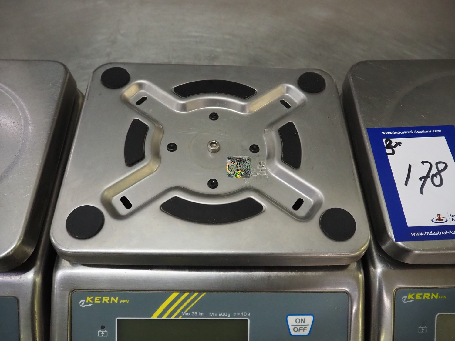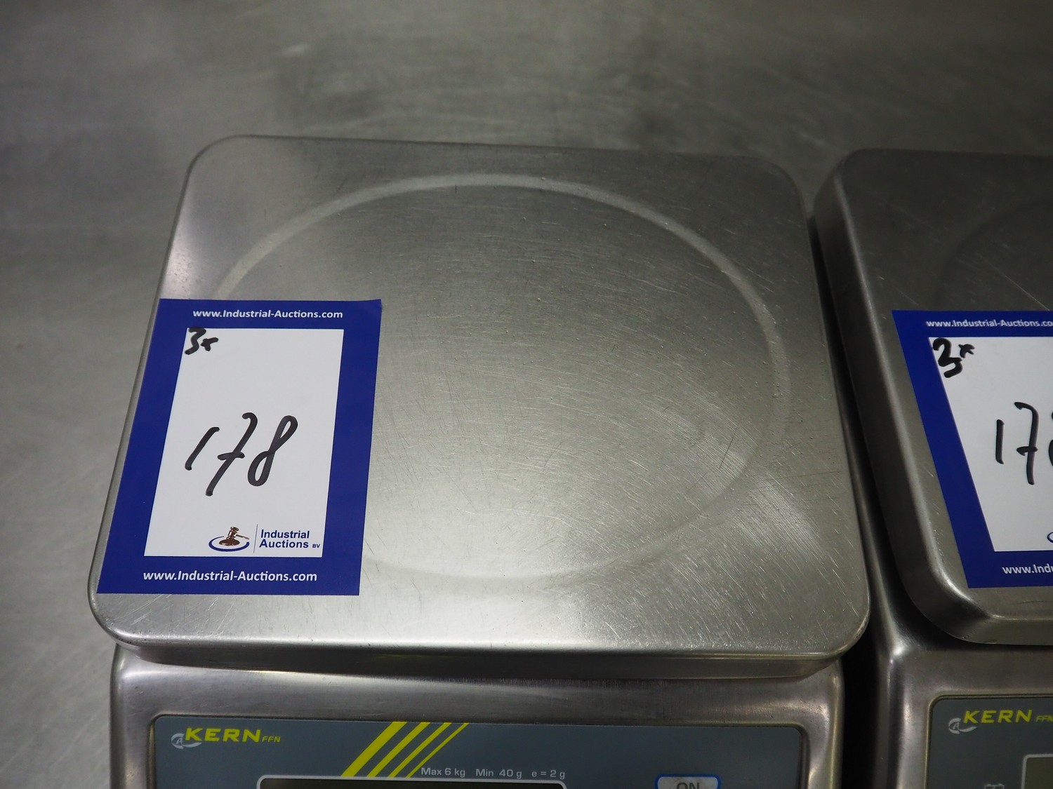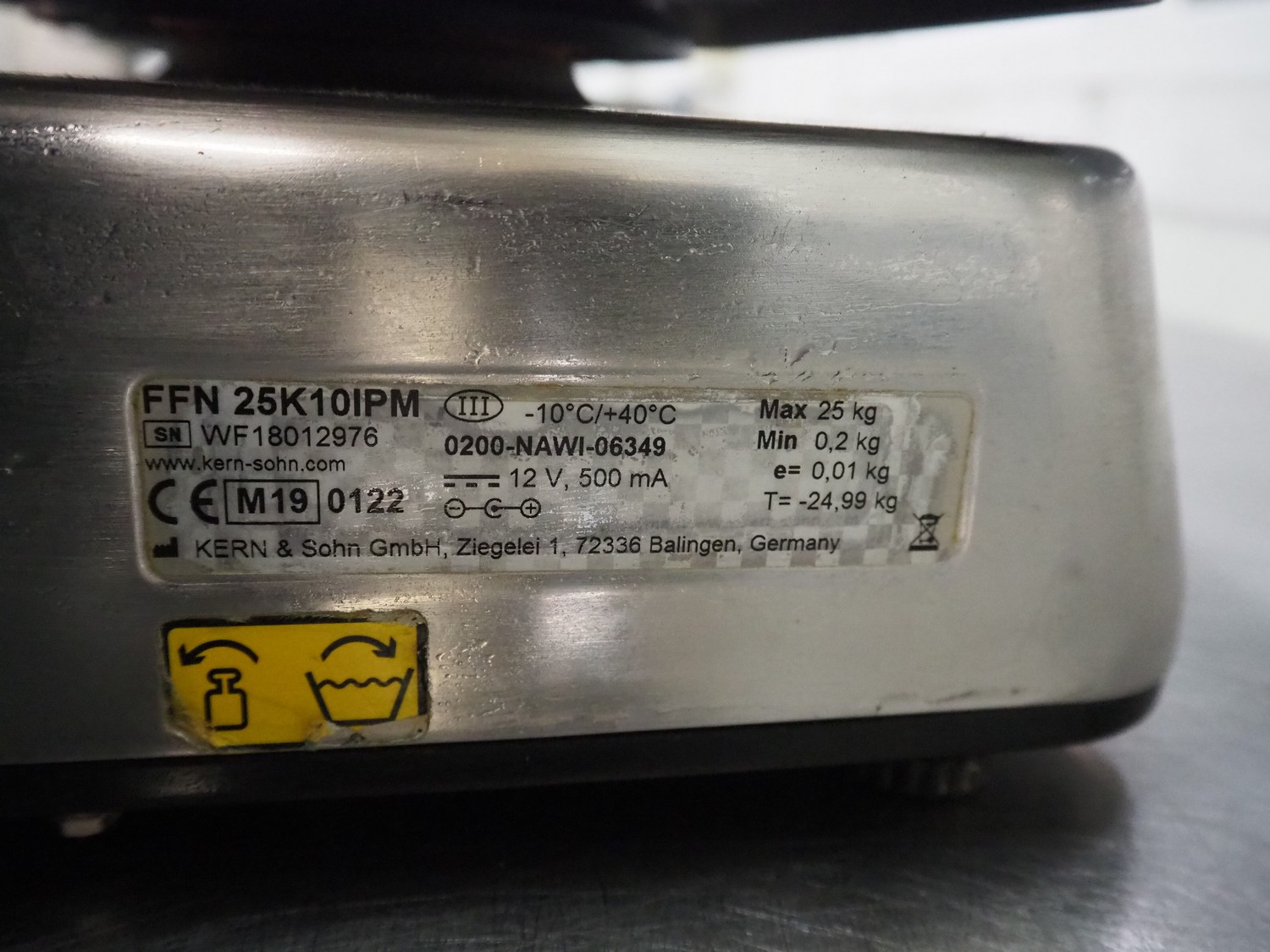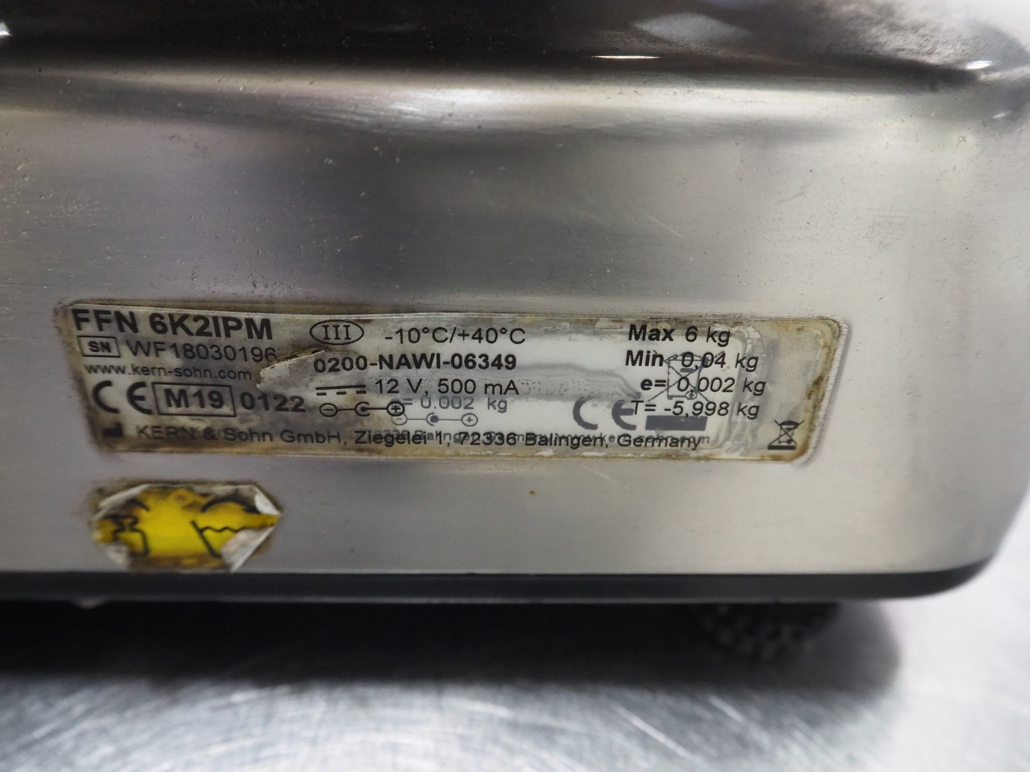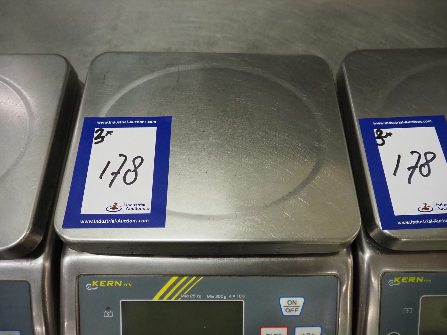 3 Kern & Sohn GmbH weighing scales, model: FFN 3K1IPM, serial number: WF18013017 / WF18012976 / WF18030196, 12 V, 500 mA, maximum weight: 3 kg, minimum weight: 0.02 kg, e = 0.001 kg, T = -2.999 kg, dimensions scale: 230 mm x 190 mm, total dimensions: (3x) 300 mm x 240 mm x 130 mm.