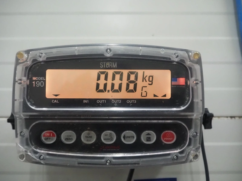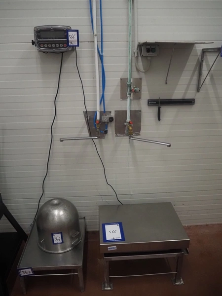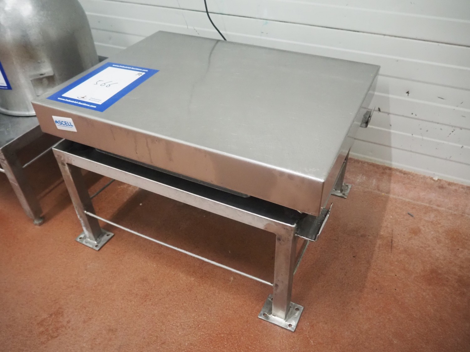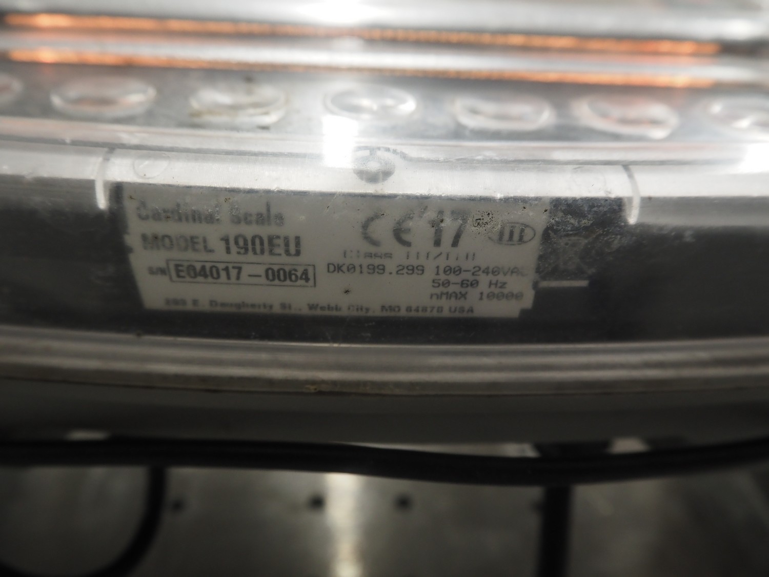 Ascell s/s weighing scale, dimensions: 600 mm x 450 mm x 400 mm, including Cardinal Scale indicator, model: 190EU, dimensions: 250 mm x 160 mm x 130 mm.