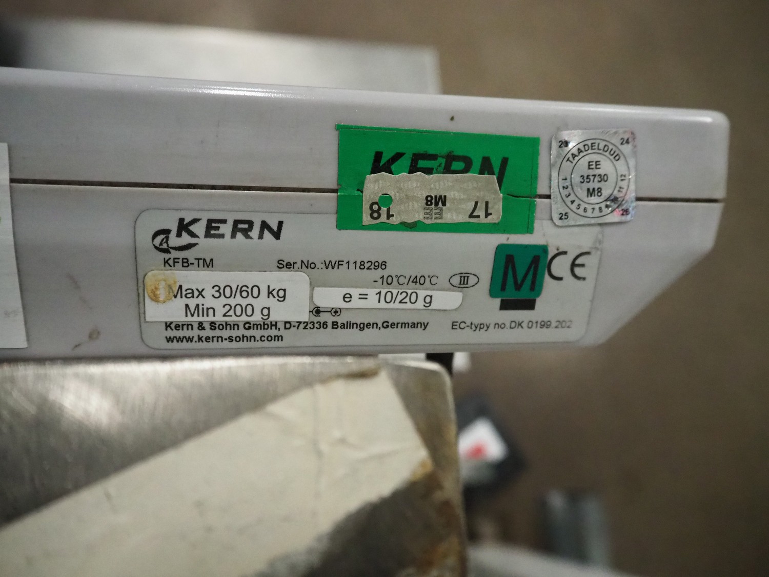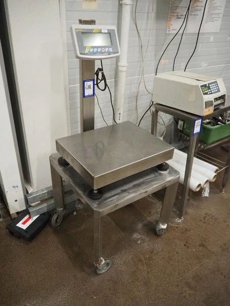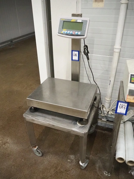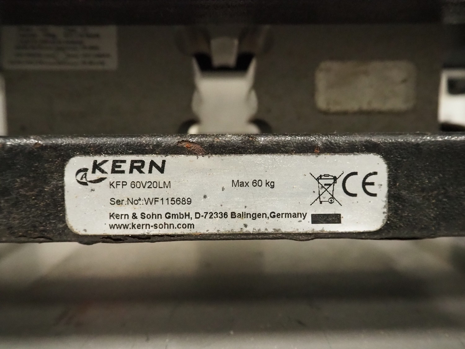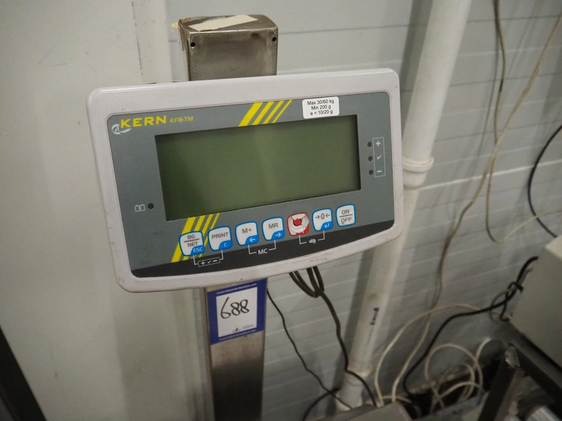 Kern-Sohn mobile weighing scale, model: KFP 60V20LM, serial number: WF115689, max: 30/60 kg, min: 200 gram, e= 10/20 gram, dimensions scale: 500 mm x 400 mm, total dimensions: 600 mm x 550 mm x 1240 mm.