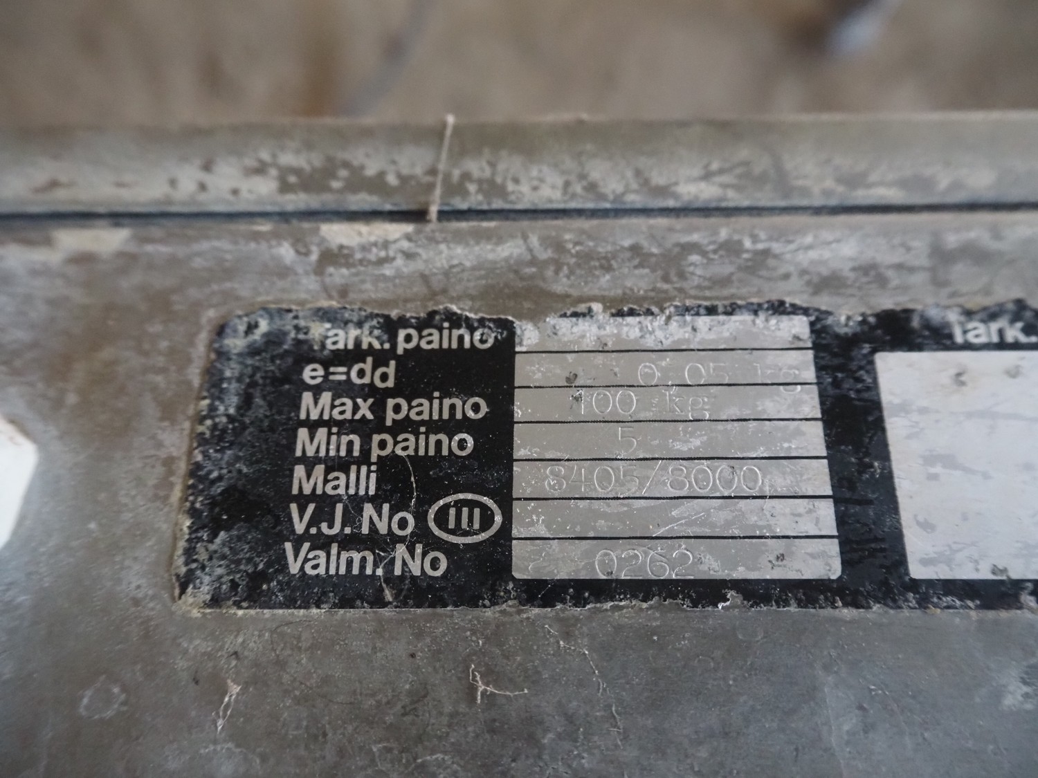 Finn Scales OY s/s weighing scale, max: 100 kg, min: 5 gram, e= 0.05 gram, dimensions: 540 mm x 540 mm x 660 mm.