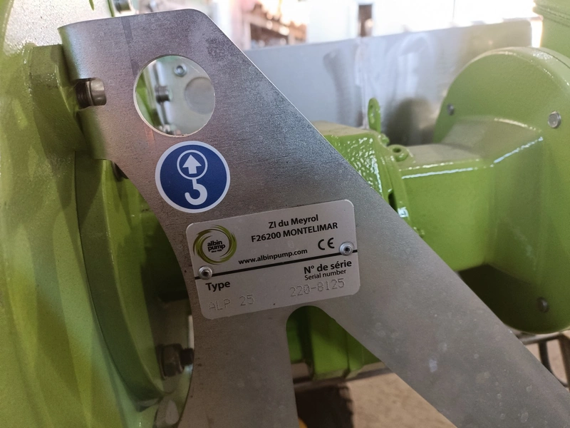Albin Pump hose pump, type: ALP 25, serial number: 220-8125, 400 V, 0.55 kW, flow rate: 0.7 - 2.8 m³ per hour, dimensions: 1000 mm x 600 mm x 600 mm. Never used.