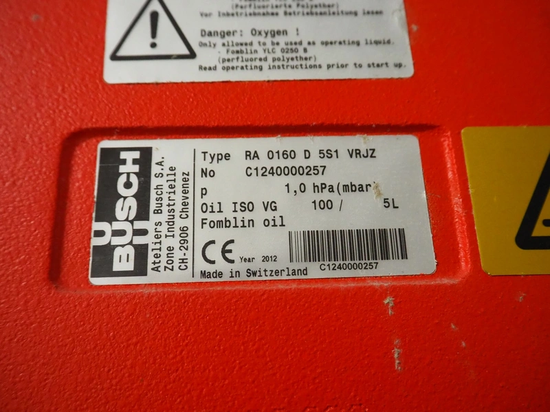 Busch vacuum pump, type: RA 0160 D 5S1 VRJZ, serial number: C1240000257, year of construction: 2012, capacity: 160 m³/h, dimensions: 1200 mm x 700 mm x 700 mm.
