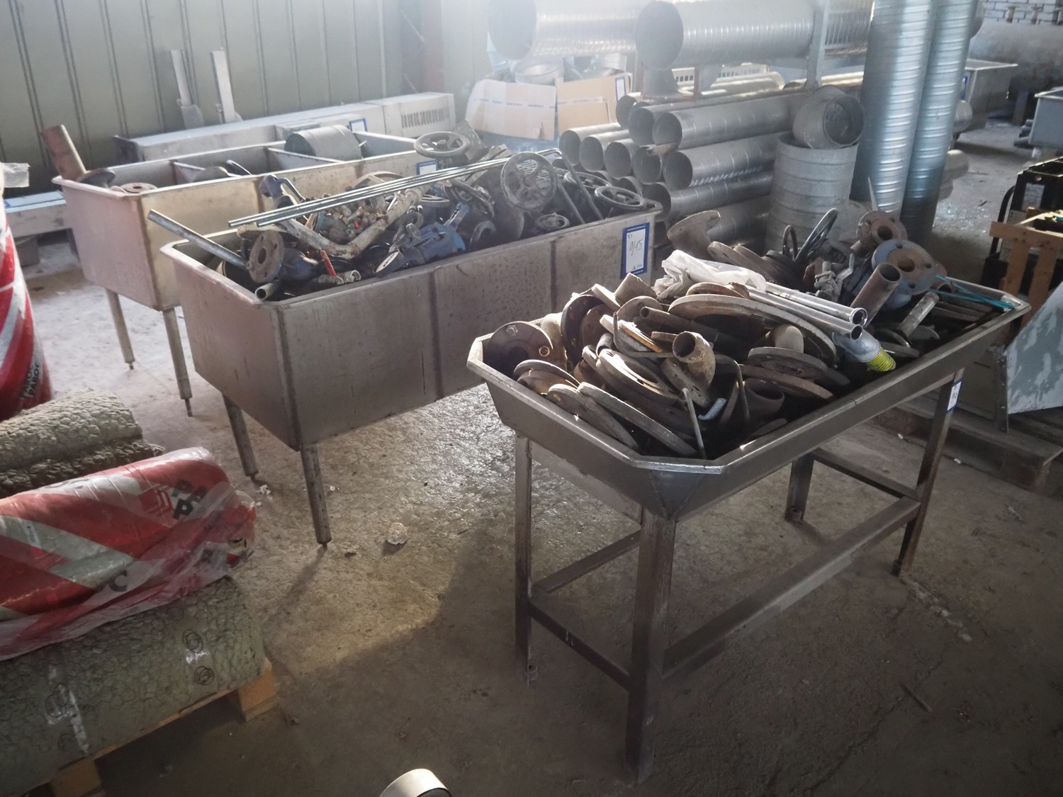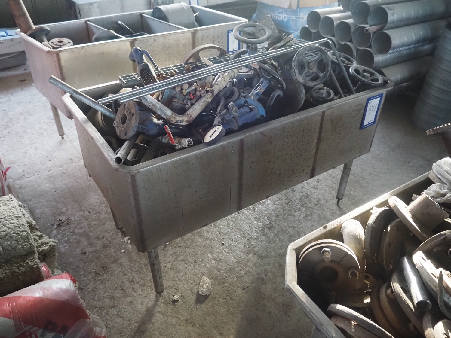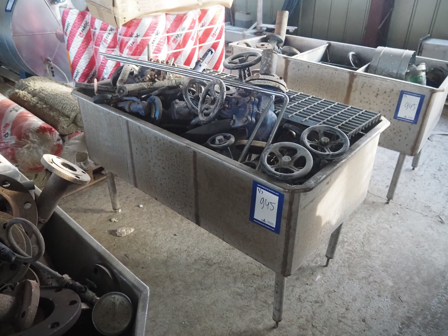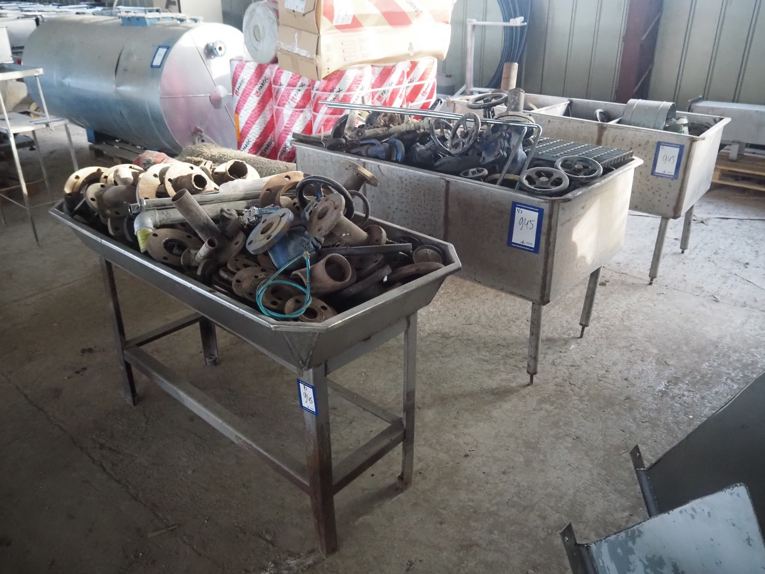 3 s/s tubs with various valves, dimensions: (3x) 1600 mm x 900 mm x 950 mm.