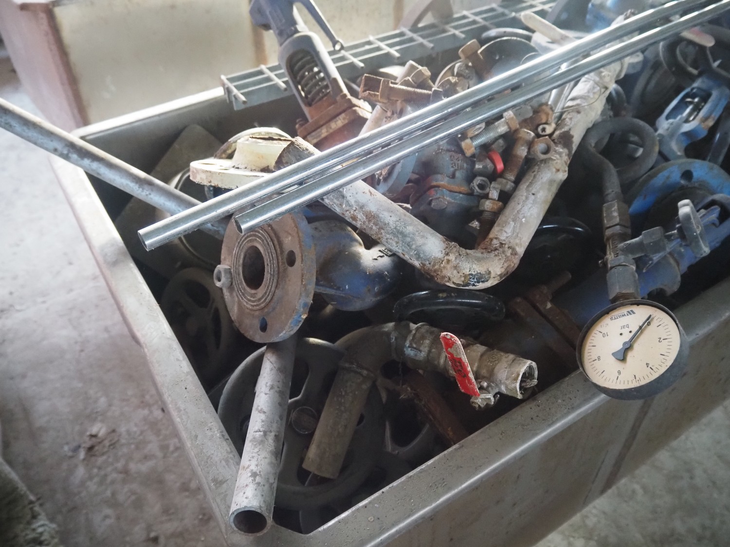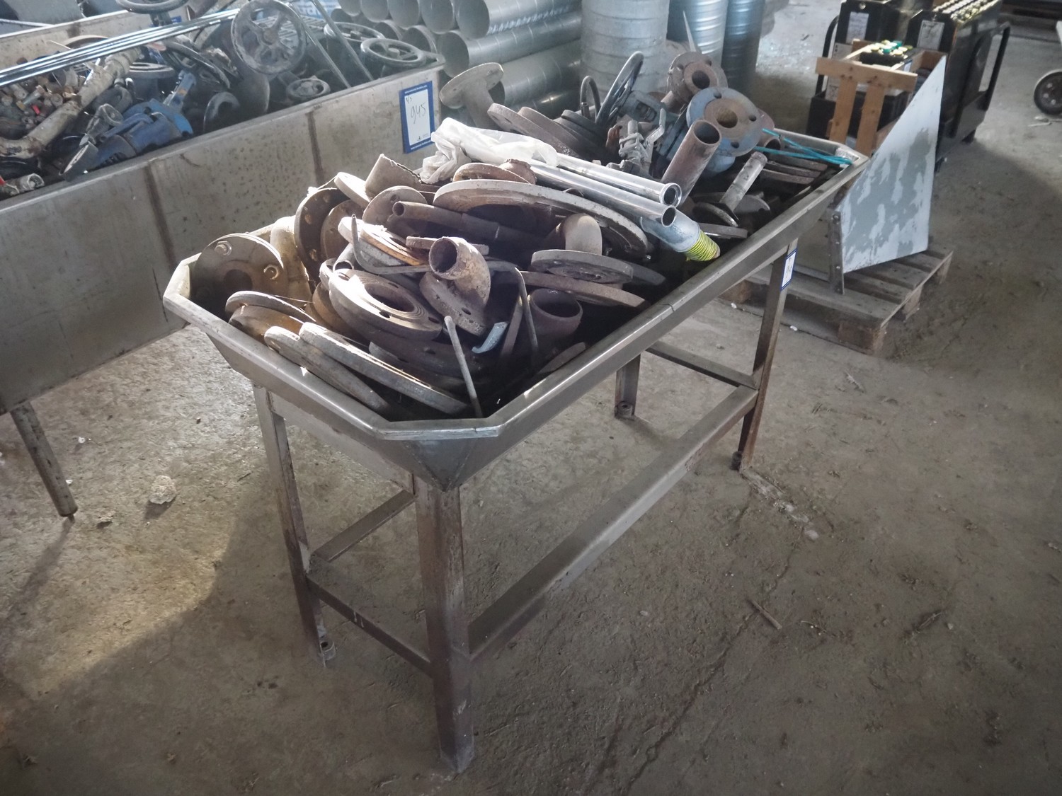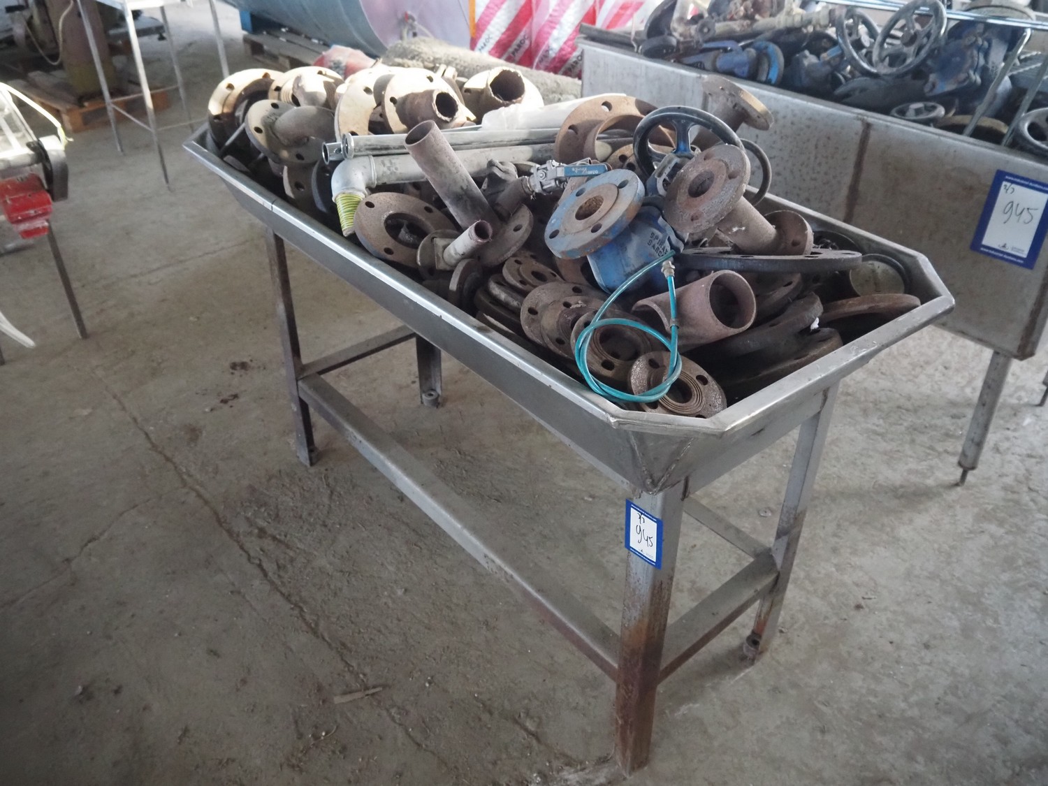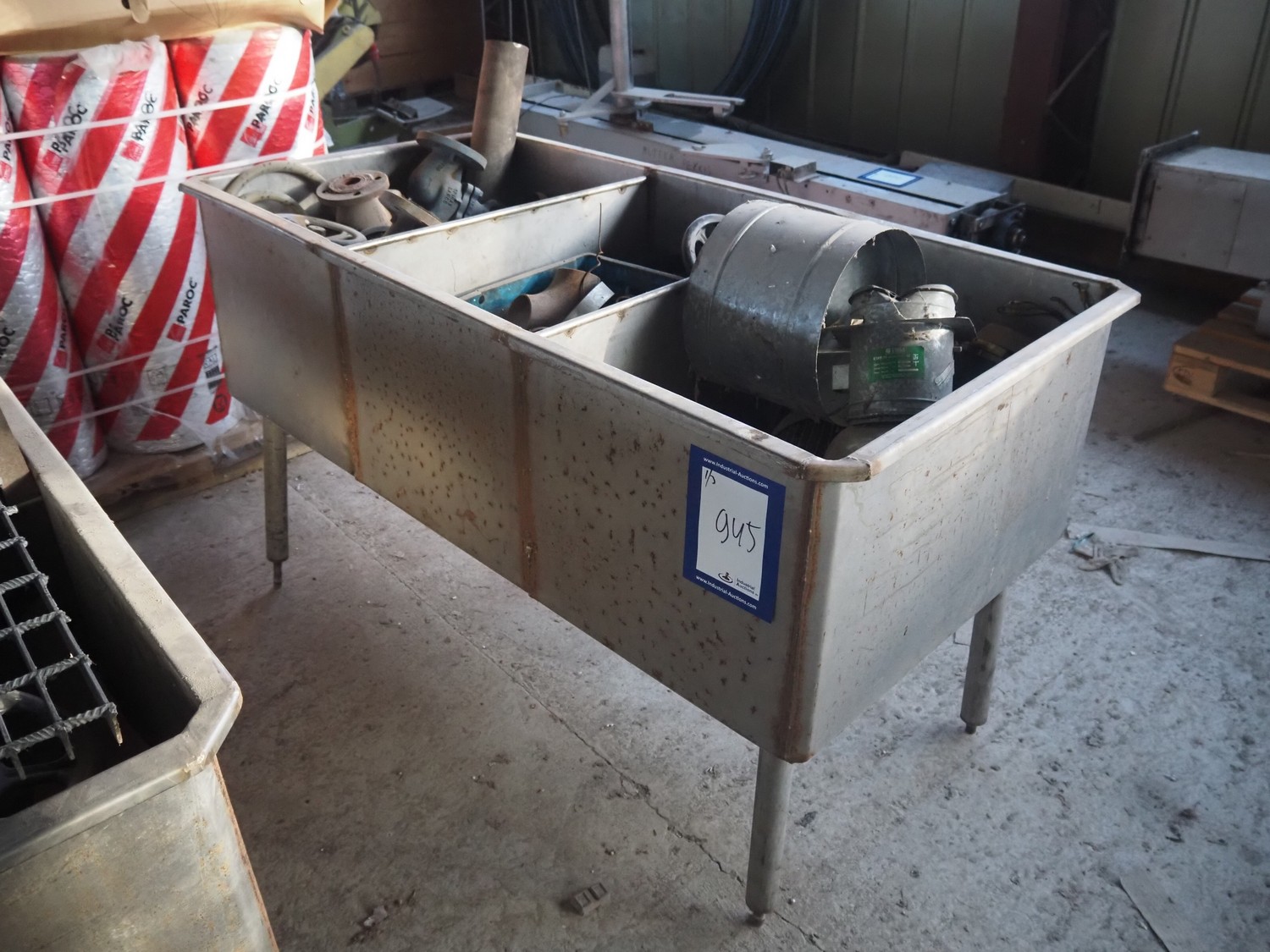 3 s/s tubs with various valves, dimensions: (3x) 1600 mm x 900 mm x 950 mm.
