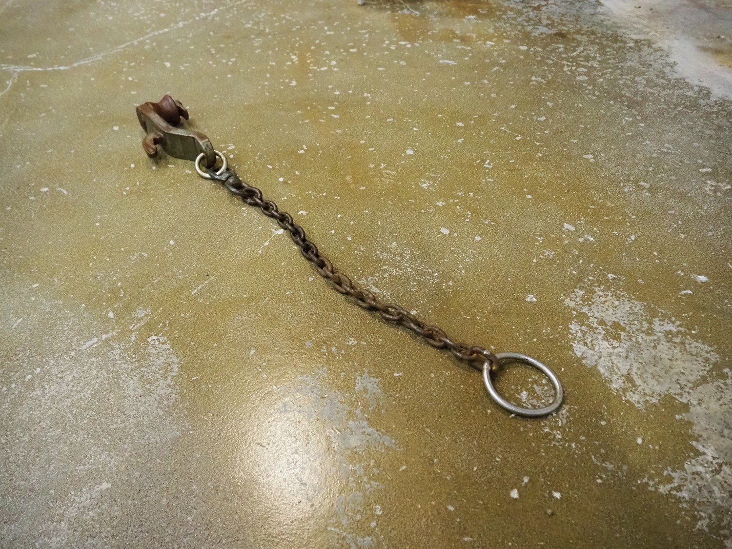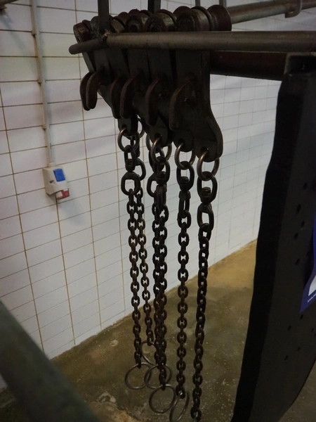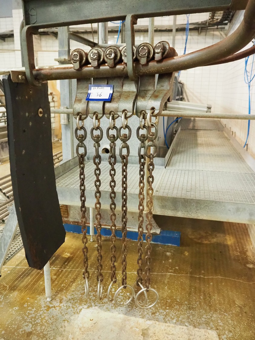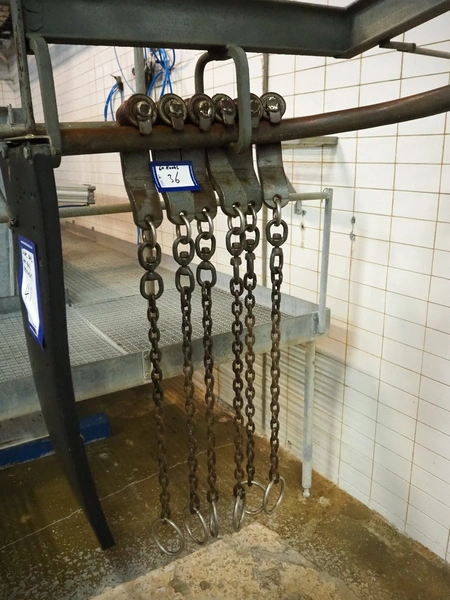 6 steel bleeding shackles for cattle, dimensions: (6x) 100 mm x 60 mm x 1100 mm.