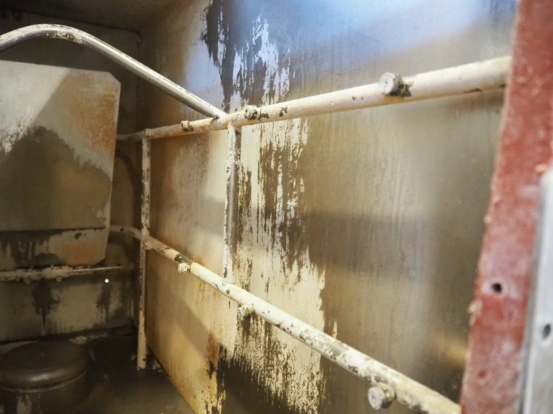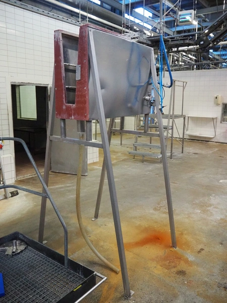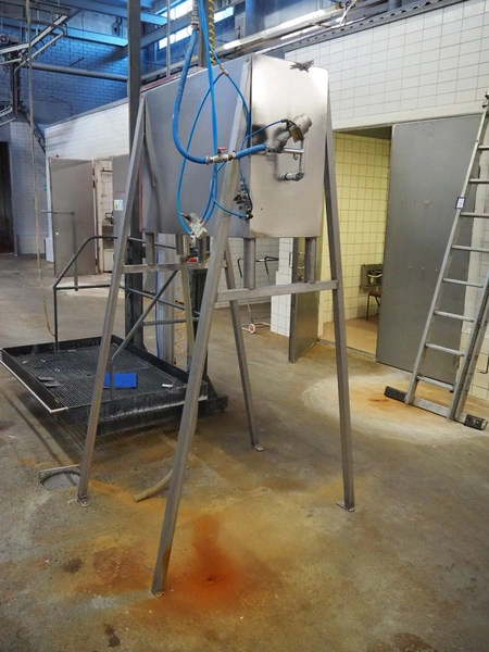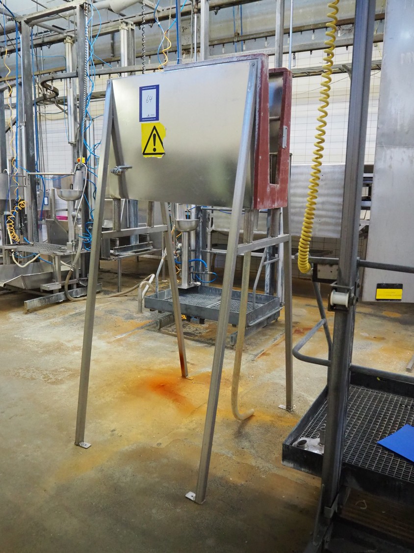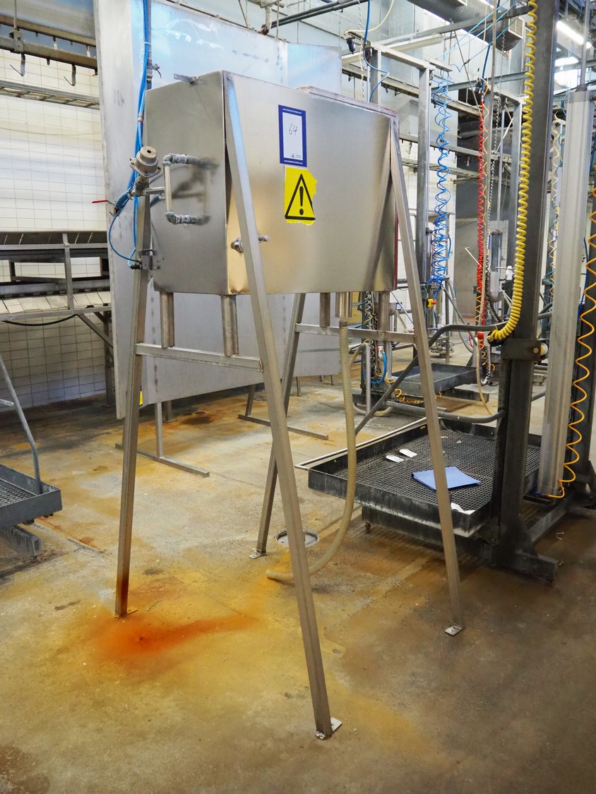 Sterilizer for splitting saw, s/s frame, clearance: 500 mm x 240 mm x 620 mm, total dimensions: 1240 mm x 1200 mm x 2220 mm.