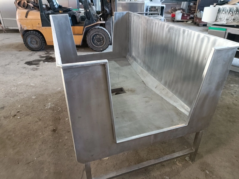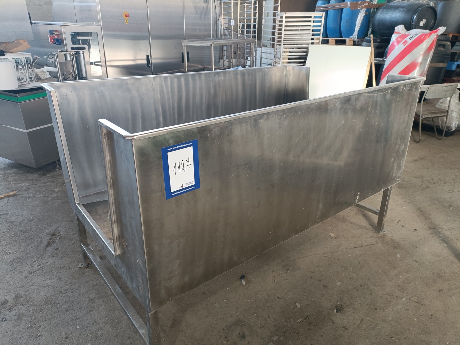 S/s blood gutter, dimensions: 2000 mm x 1200 mm x 1200 mm. Never used.