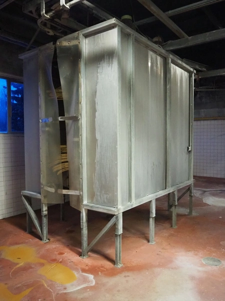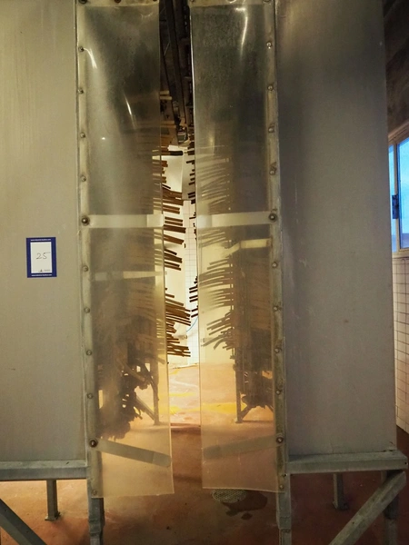 Nakkilan Konepaja OY after whip washer, 4 rolls, clearance: 600 mm x 2600 mm, total dimensions: 3100 mm x 2100 mm x 3200 mm.