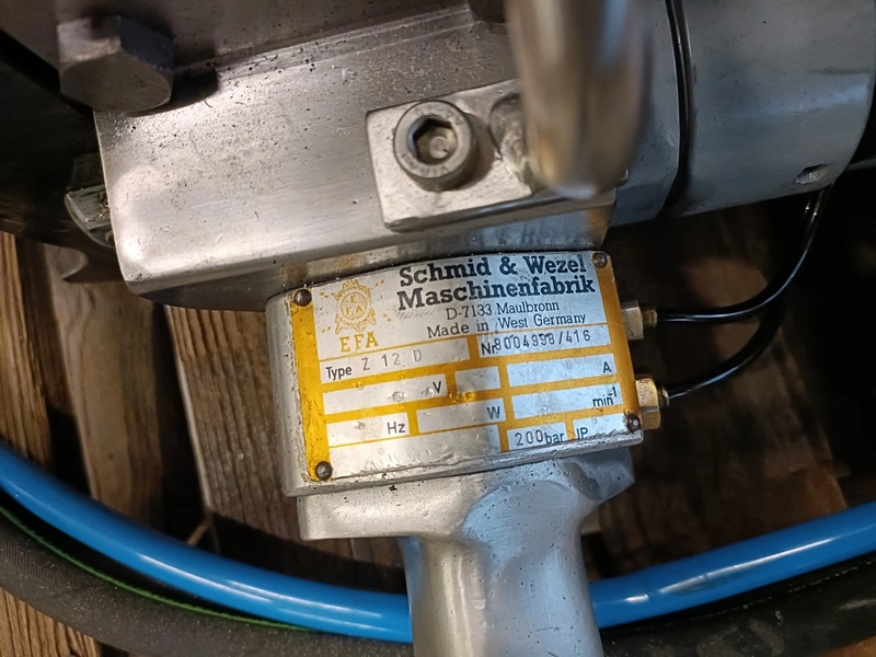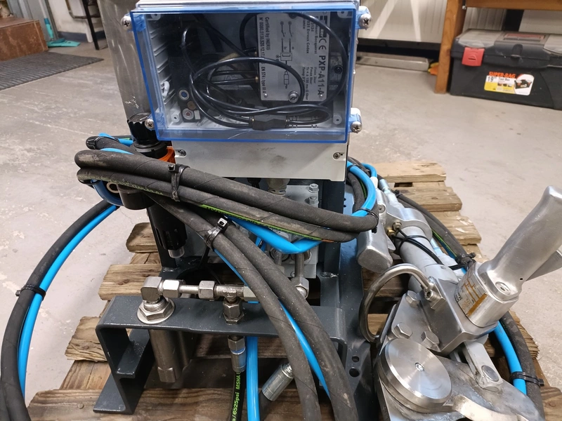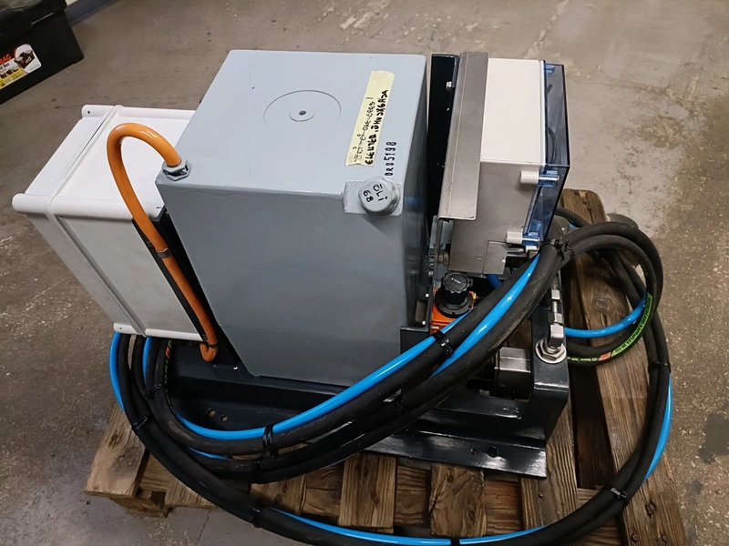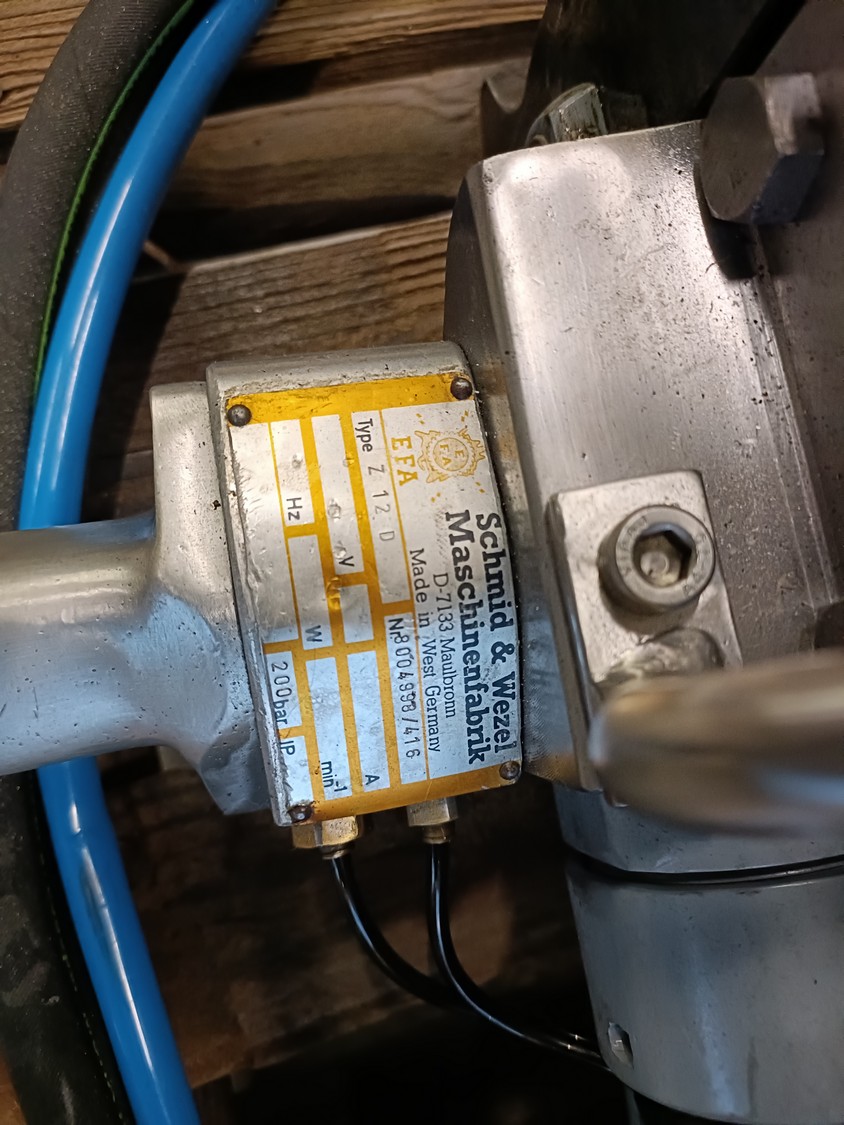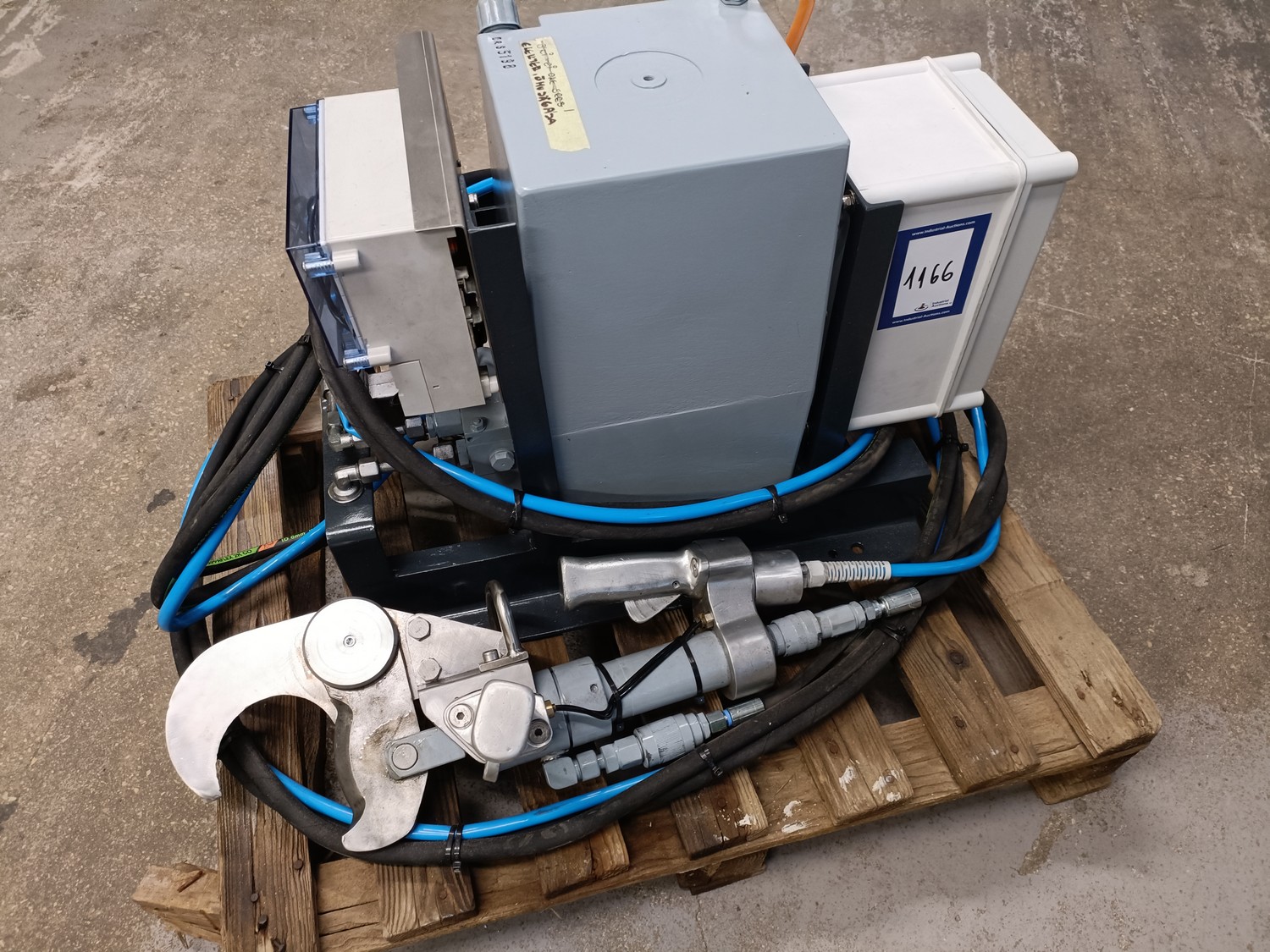 EFA Schmid & Wezel leg cutter for cattle, type: Z 12 D, number: 8004998/416, 200 bar, pneumatic, cutting width: 85 mm, total dimensions: 600 mm x 250 mm, dimensions hydraulic unit: 650 mm x 350 mm x 460 mm. Refurbished.