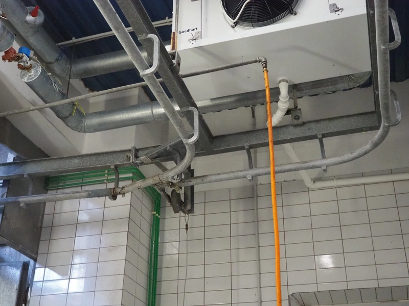 Nakkilan Konepaja OY overhead tube rail, diameter tube: 50 mm, total length: approximately 17 meter.