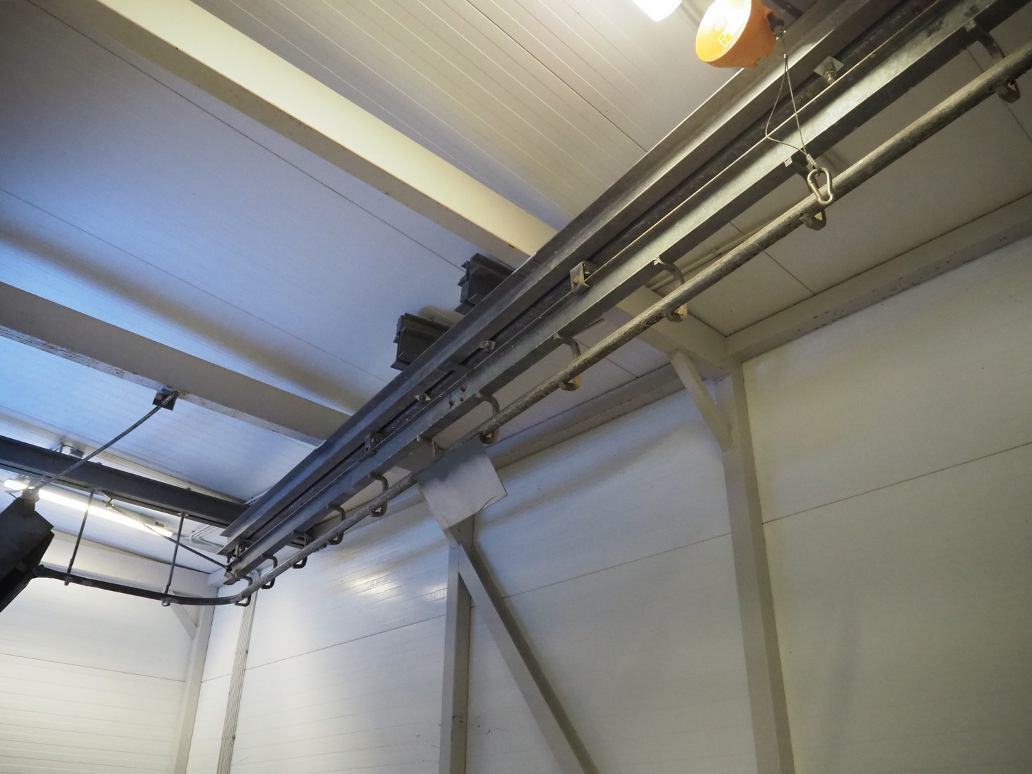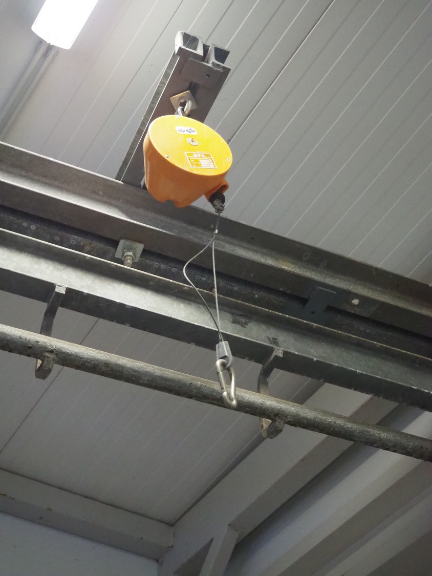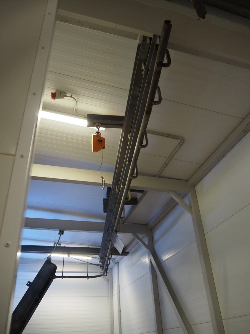 Tube rail with de-elevator, diameter tube rail: 50 mm, total length: approximately: 8 meter, dimensions de-elevator: 2500 mm x 450 mm x 500 mm. Including EFA Schmidt & Wezel GmbH & Co. KG Maschinenfabrik balancer.
