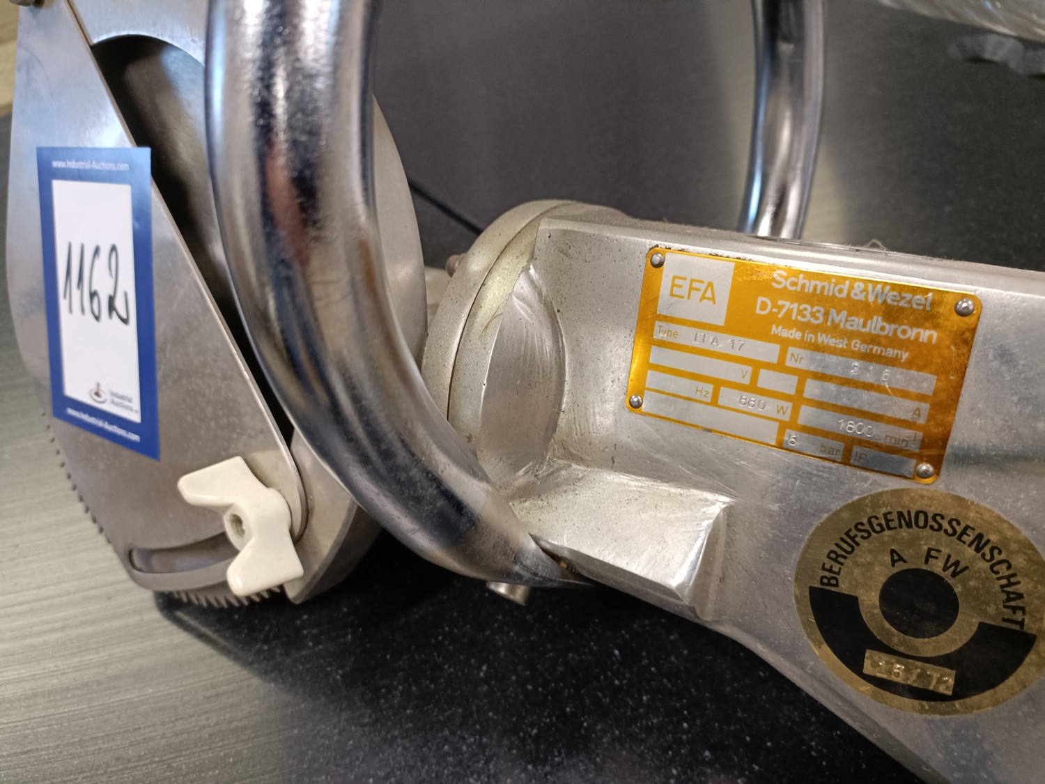 EFA Schmid & Wezel circular saw, type: EFA 17, number: 316, 880 W, 6 bar, diameter blade: 210 mm, dimensions: 500 mm x 300 mm x 300 mm.