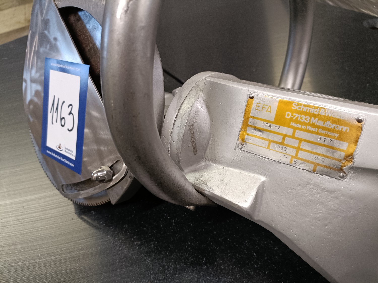 EFA Schmid & Wezel circular saw, type: EFA 17, number: 327, 880 W, 6 bar, diameter blade: 210 mm, dimensions: 500 mm x 300 mm x 300 mm.
