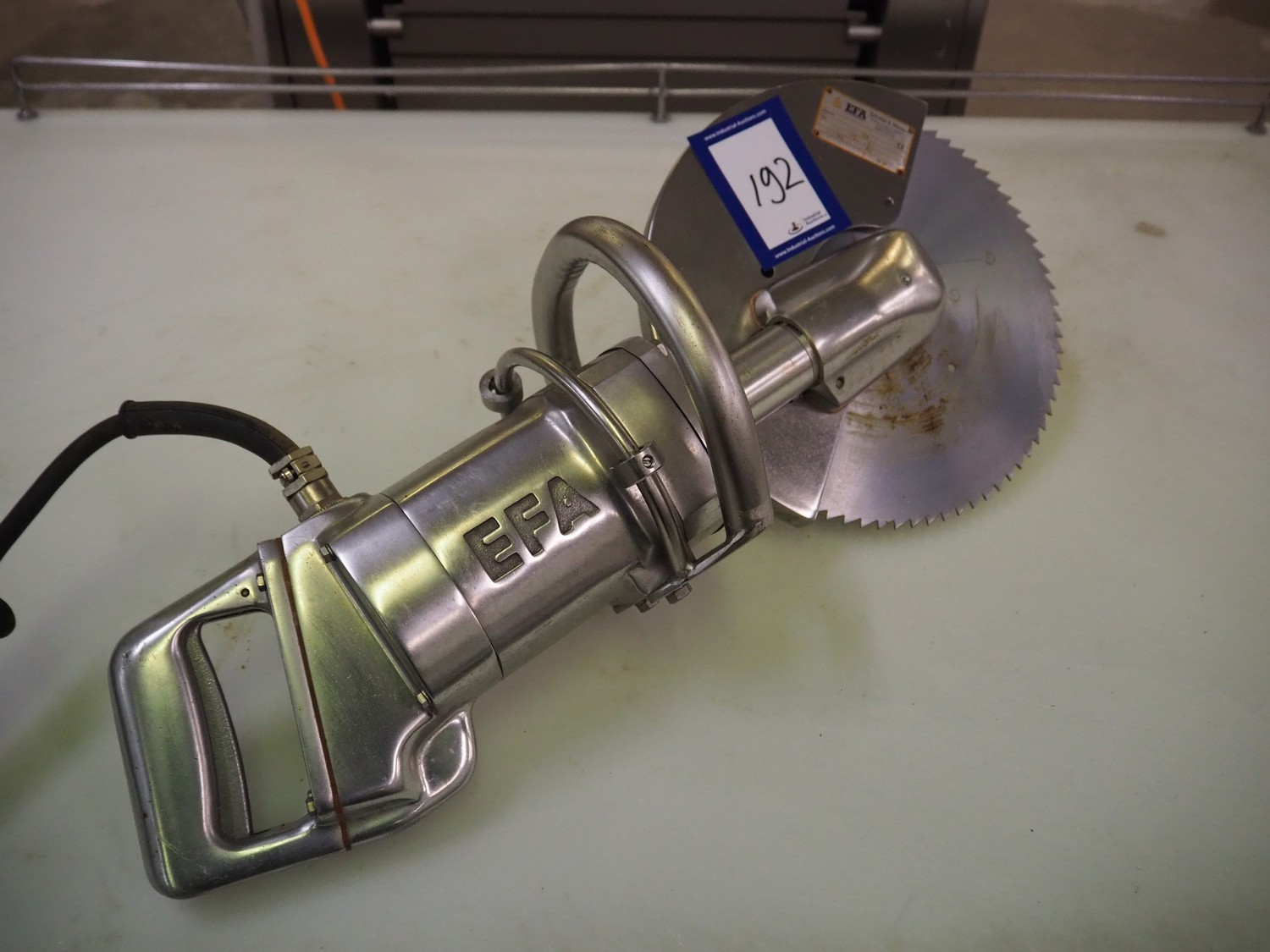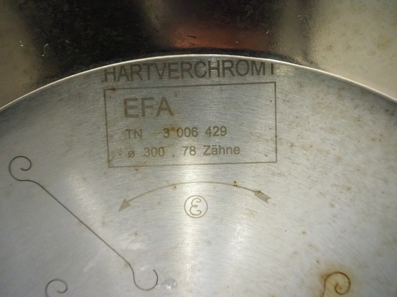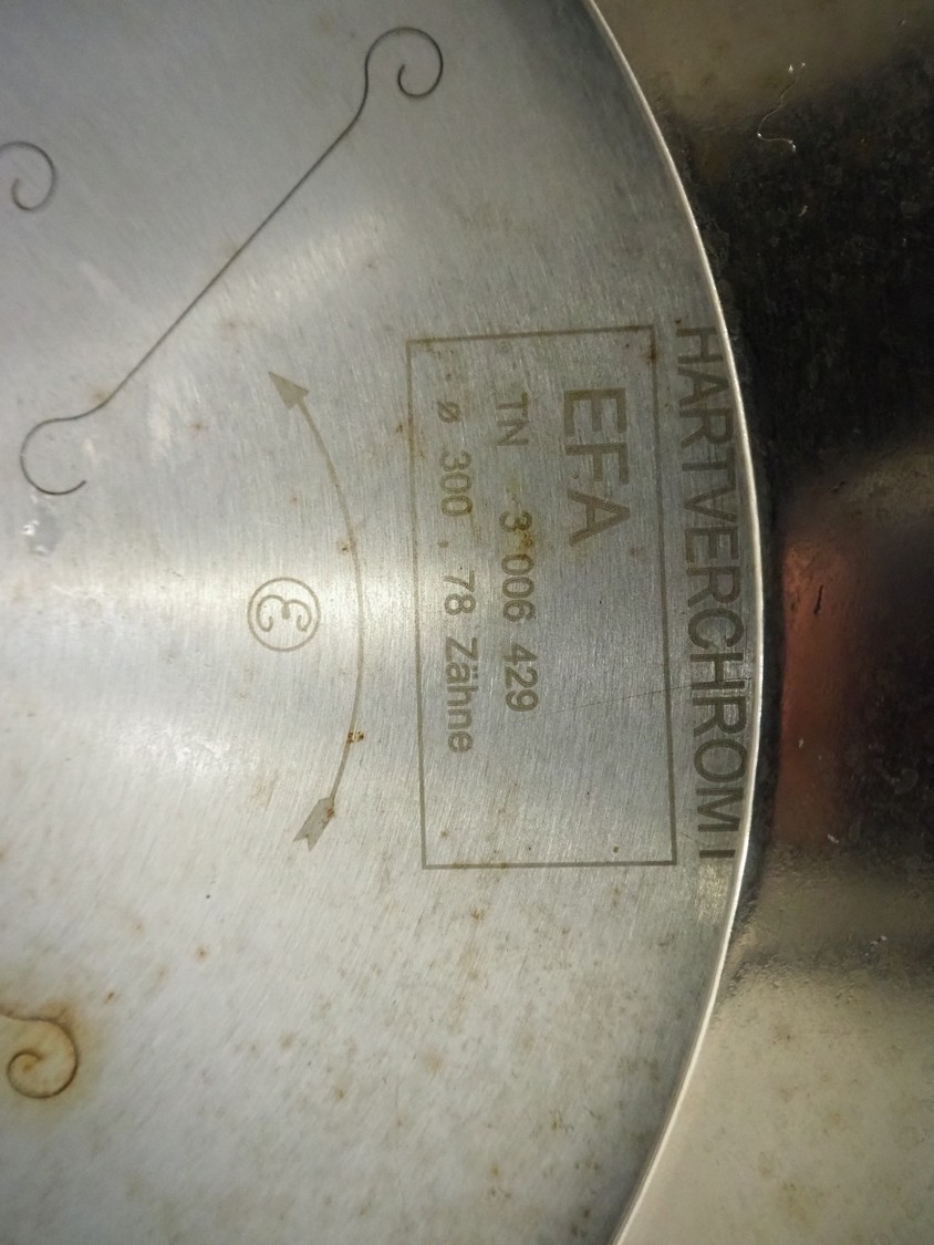 EFA Schmidt & Wezel GmbH & Co. KG Maschinenfabrik circular saw, type: EFA 85, number: 454, 230/400 V, 3 Ph, 50 Hz, 5.5/3.2 A, 1500 W, diameter knife: 300 mm, total dimensions: 690 mm x 250 mm x 310 mm.