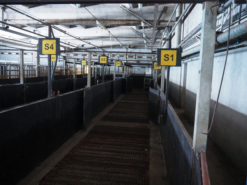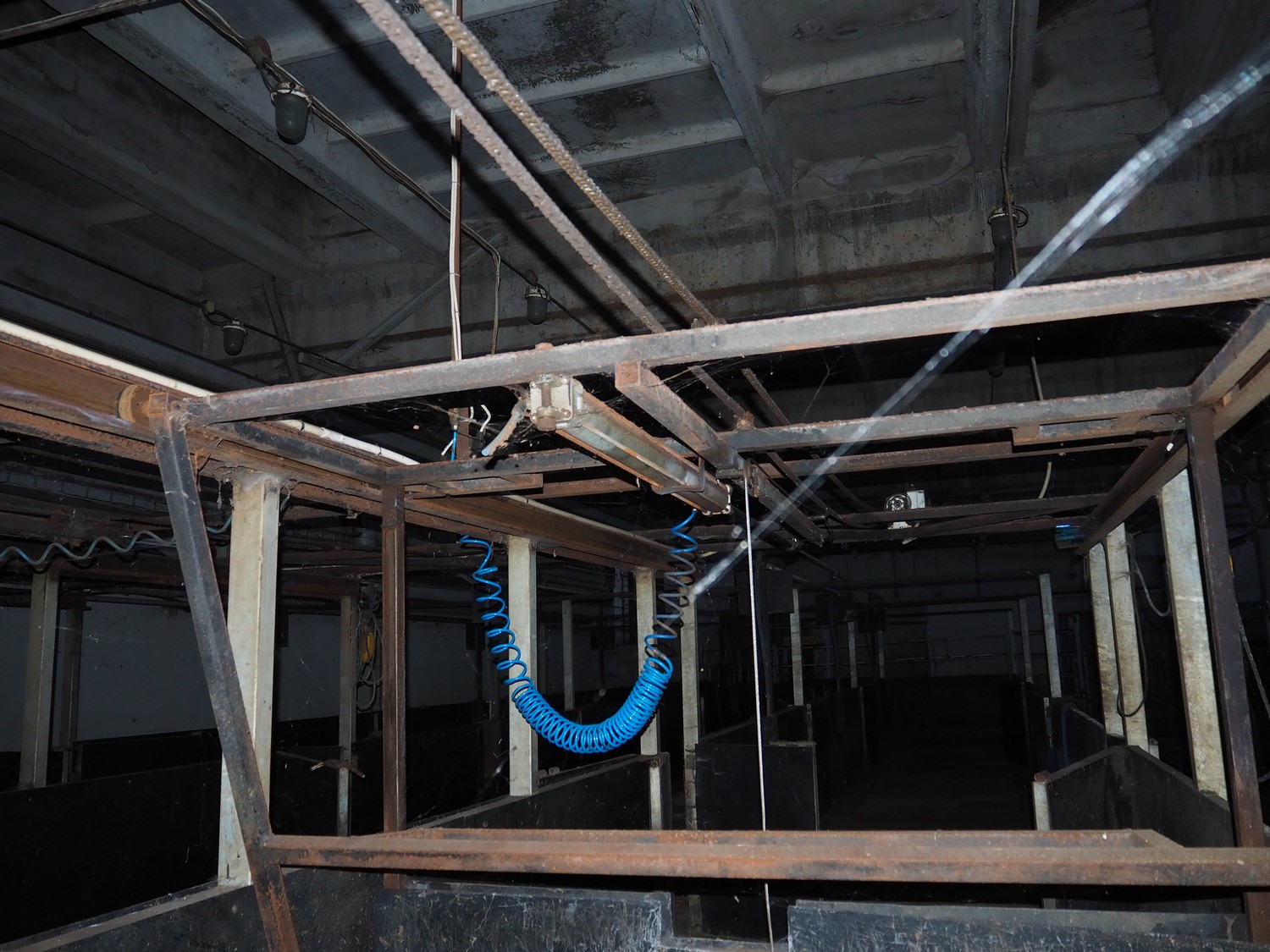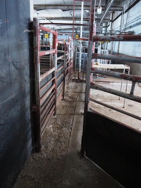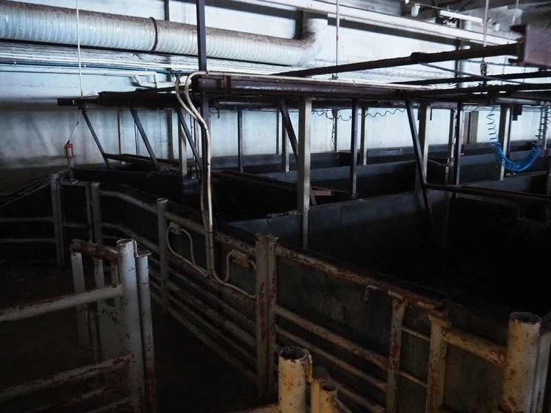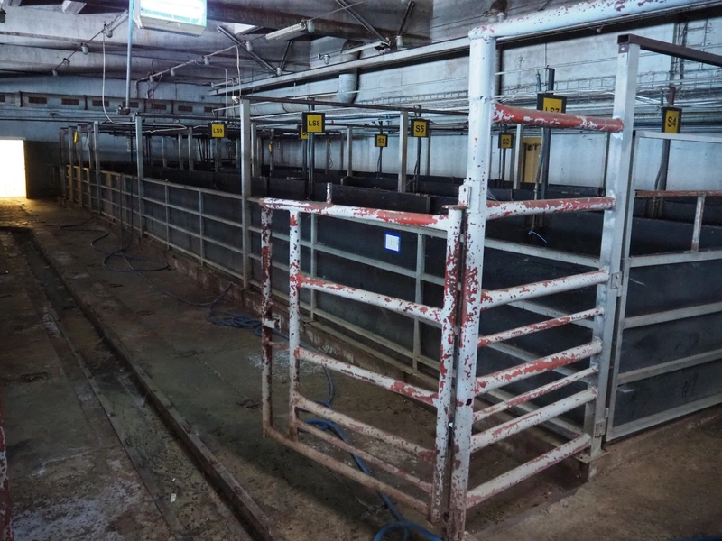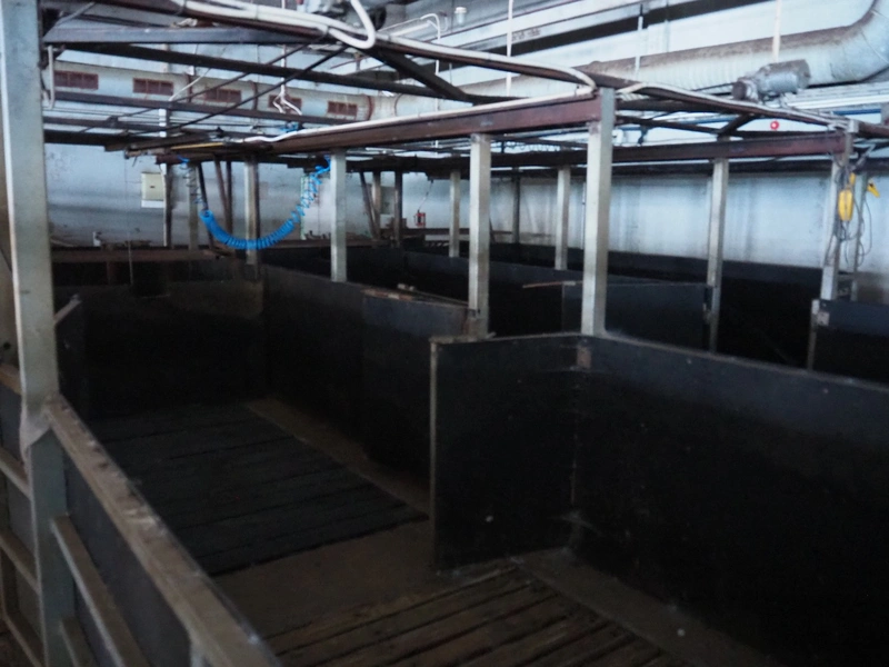 Nakkilan Konepaja OY automatic driveways for pigs, steel construction, consisting of 3 rows, total dimensions stables: 20000 mm x 7000 mm.