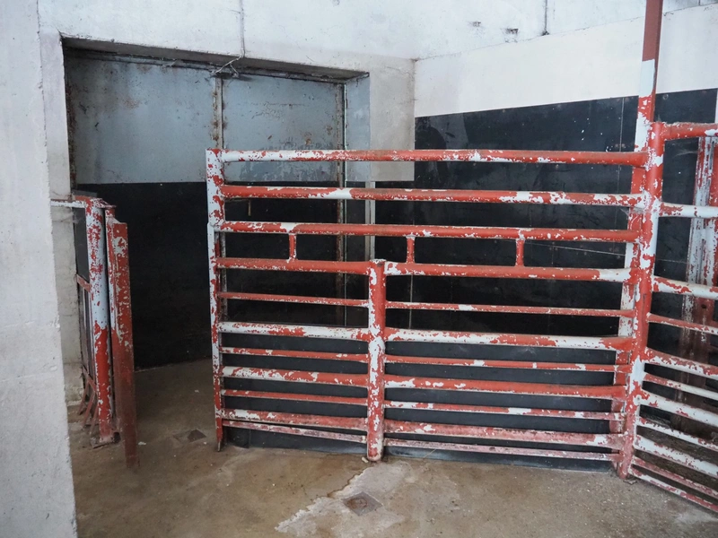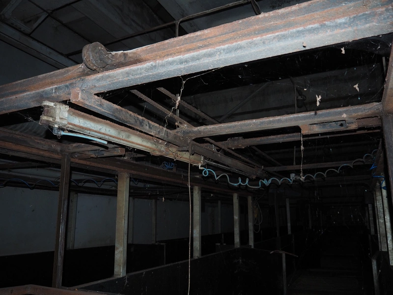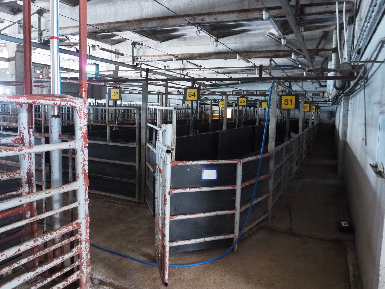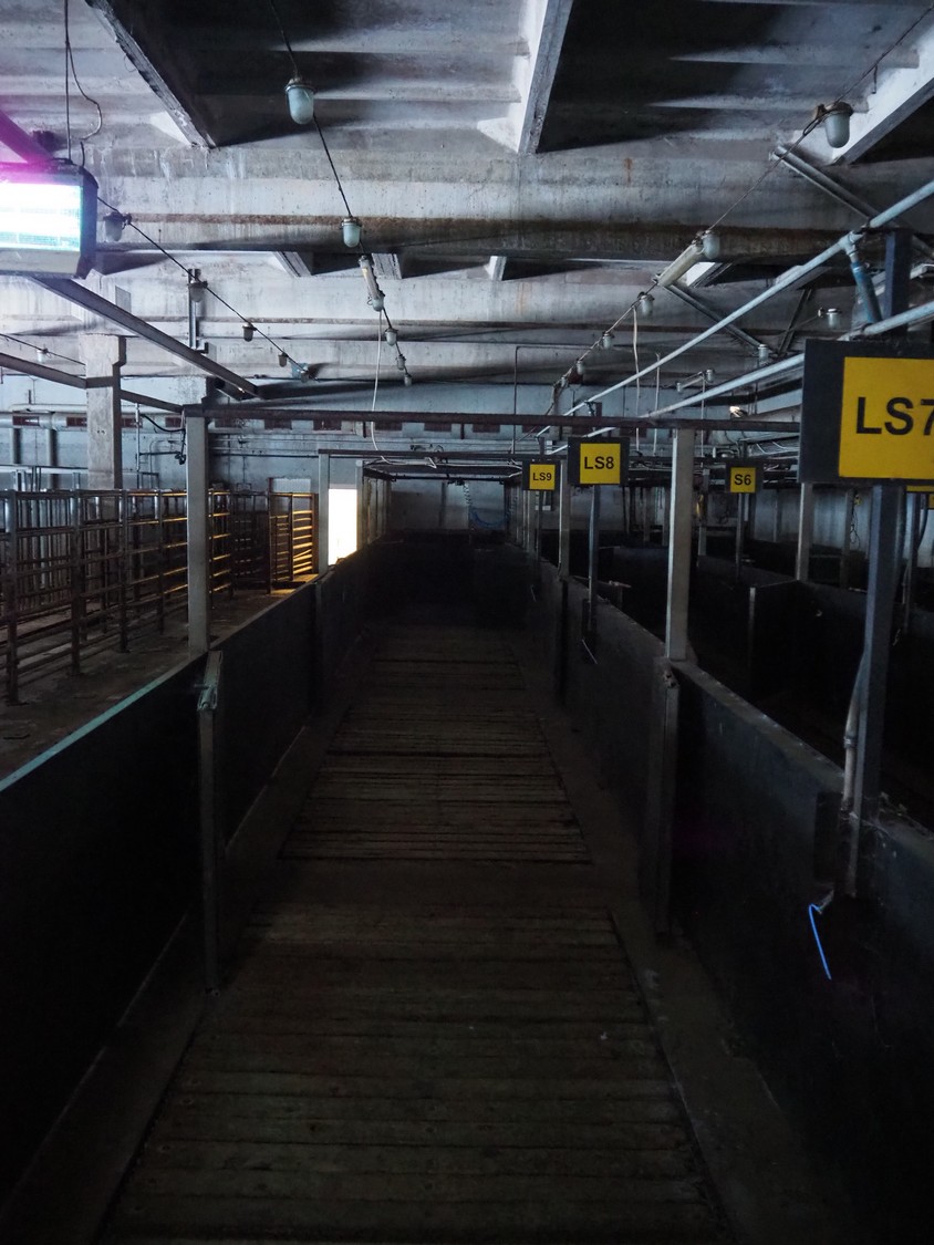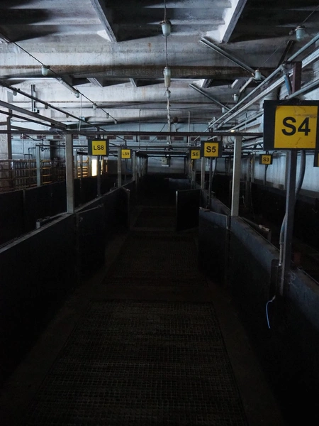 Nakkilan Konepaja OY automatic driveways for pigs, steel construction, consisting of 3 rows, total dimensions stables: 20000 mm x 7000 mm.