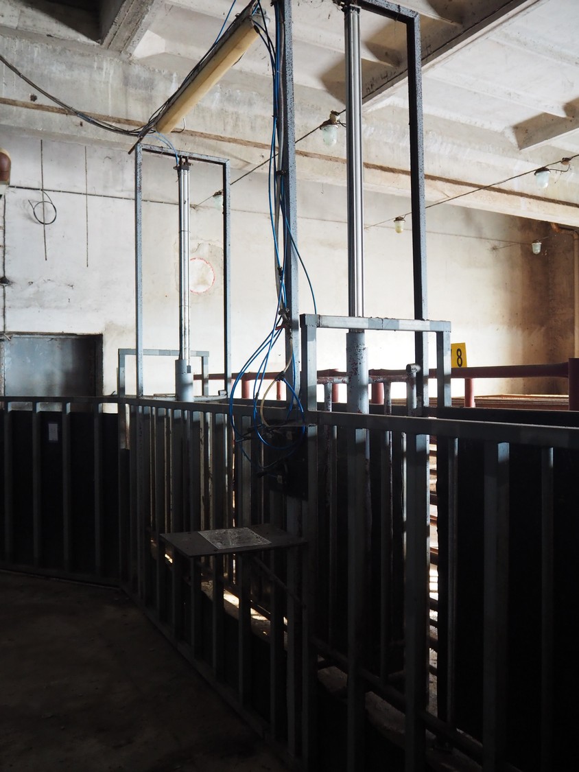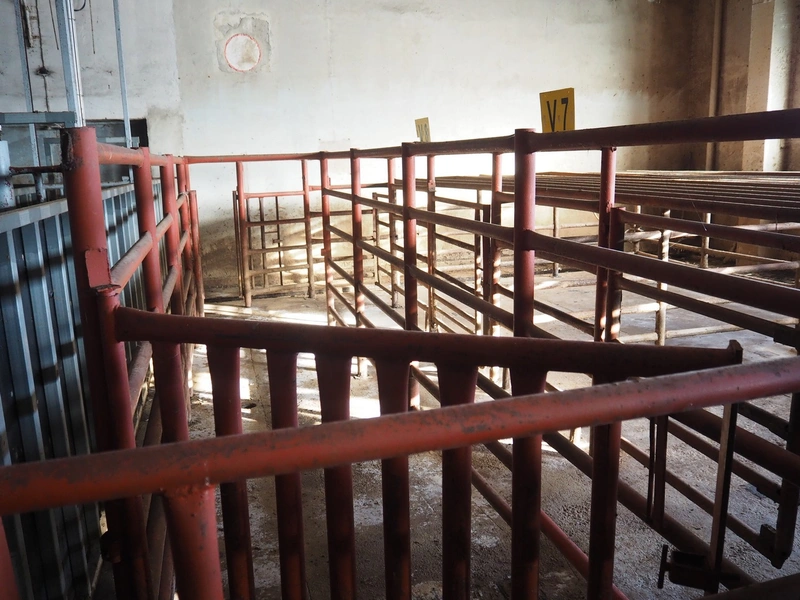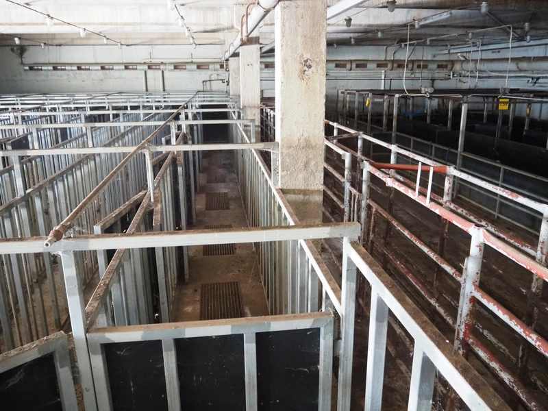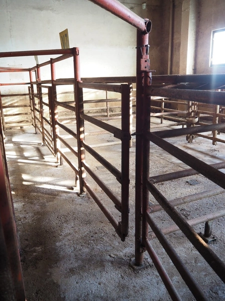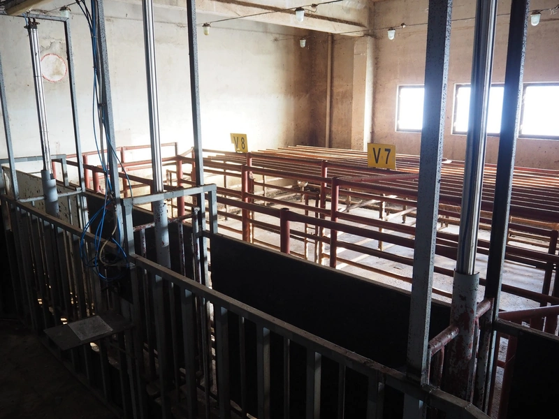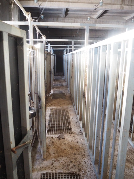 Nakkilan Konepaja OY stables for cattle, steel construction, 9 rows, total dimensions: 15000 mm x 35000 mm.