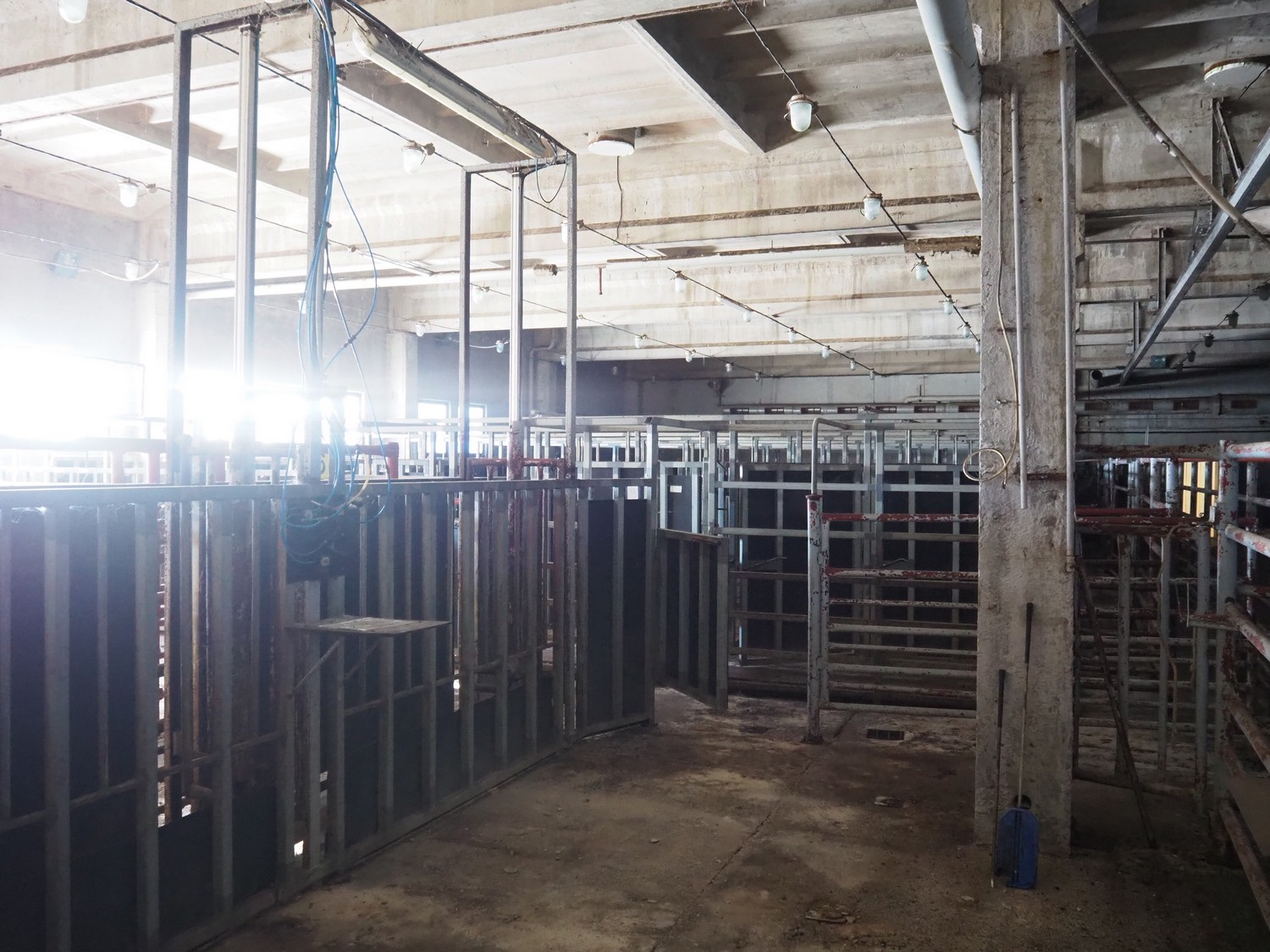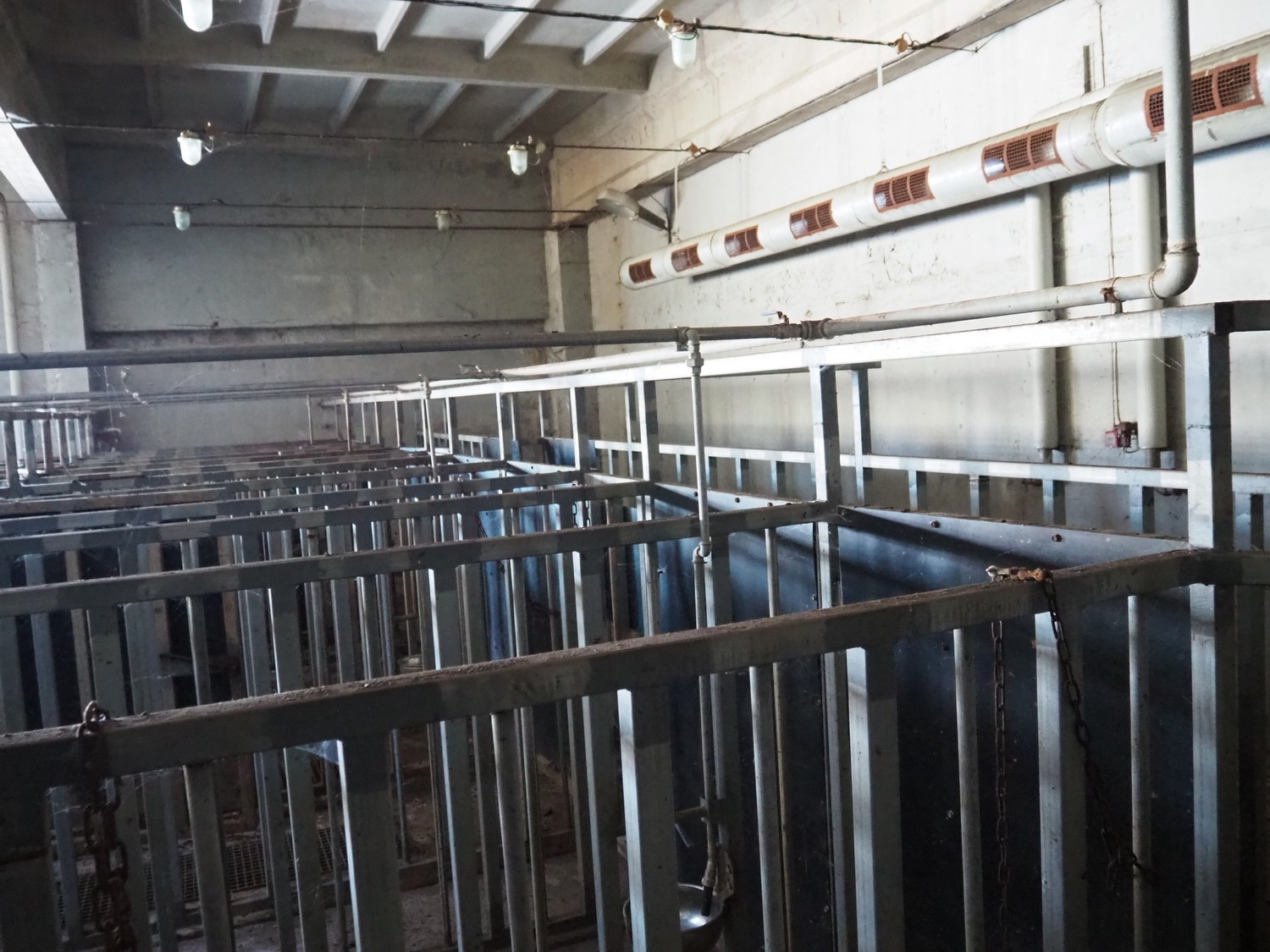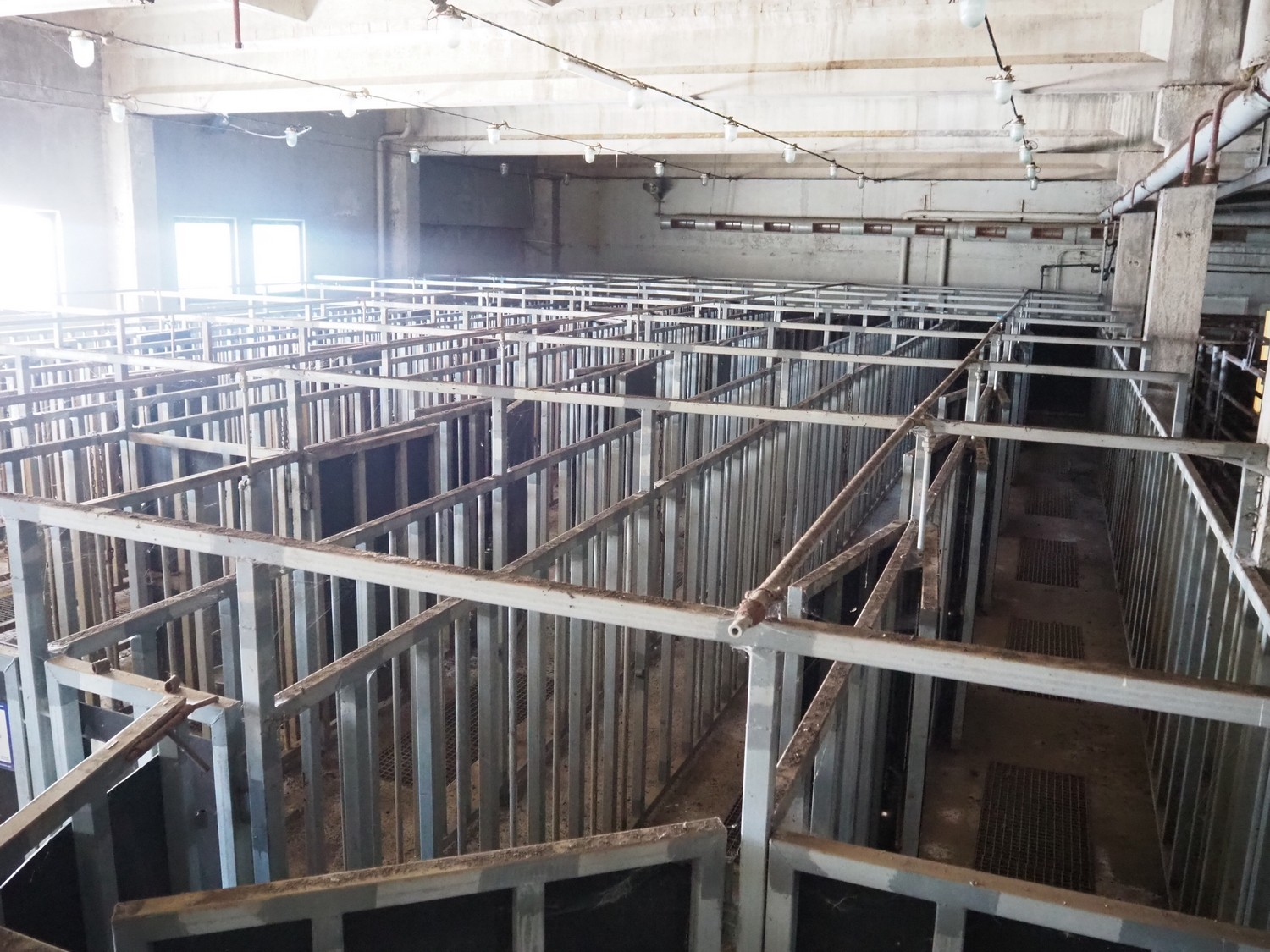 Nakkilan Konepaja OY stables for cattle, steel construction, 9 rows, total dimensions: 15000 mm x 35000 mm.