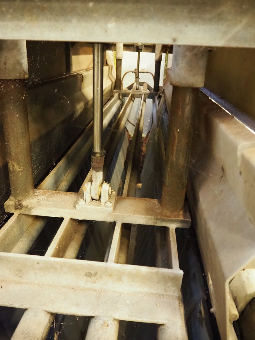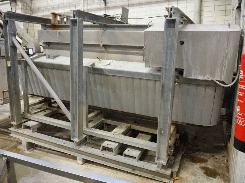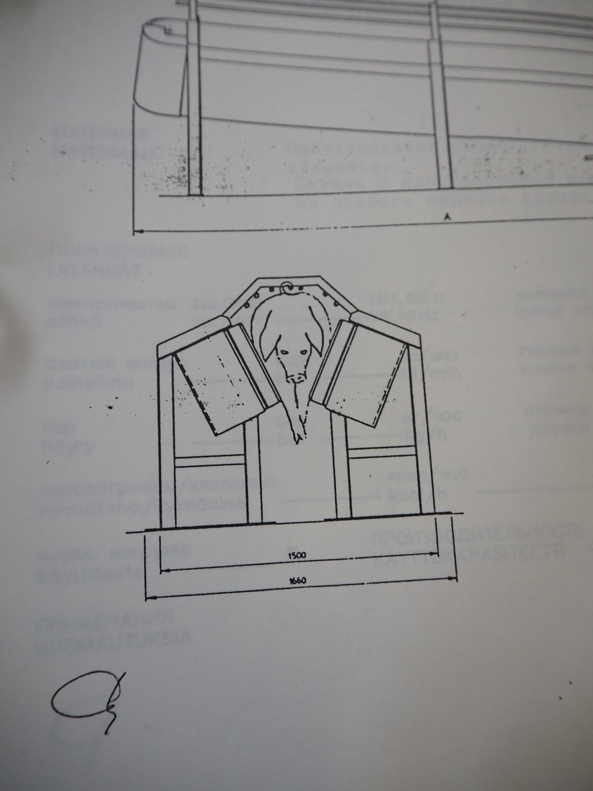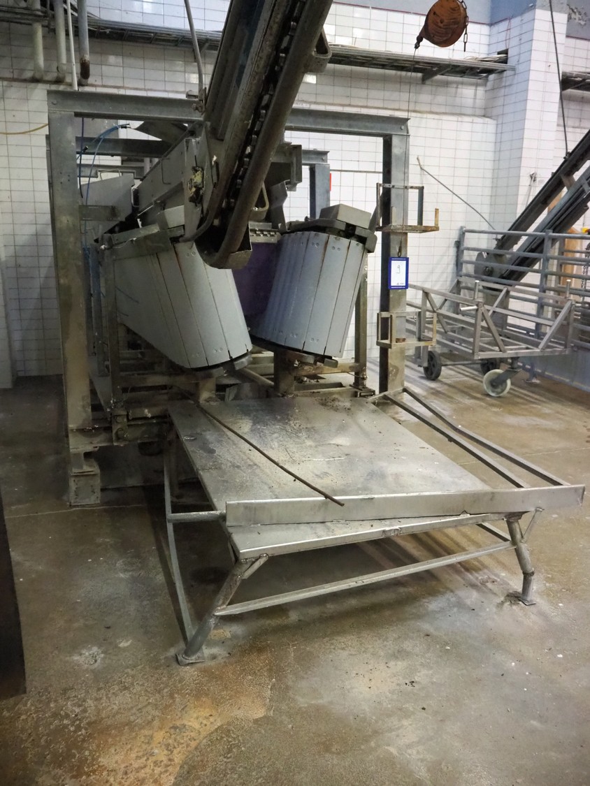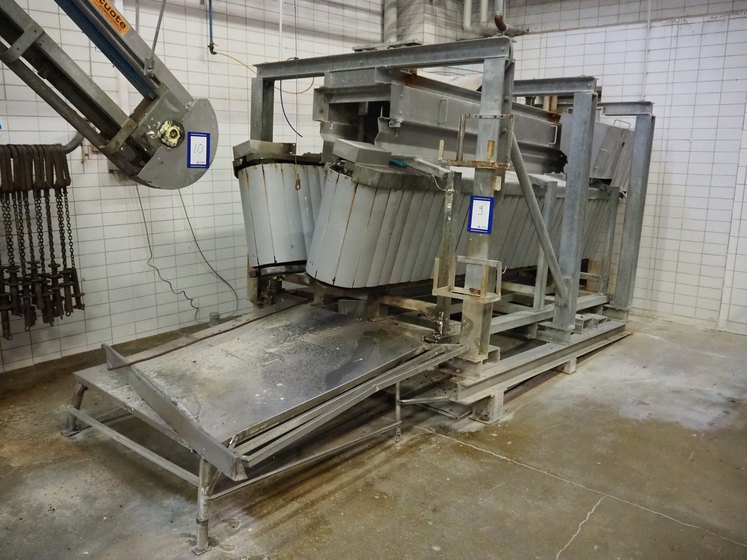Nakkilan Konepaja OY steel stunning box for pigs, clearance: 435 mm / 140 mm x 950 mm, total dimensions: 4850 mm x 2170 mm x 2300 mm.