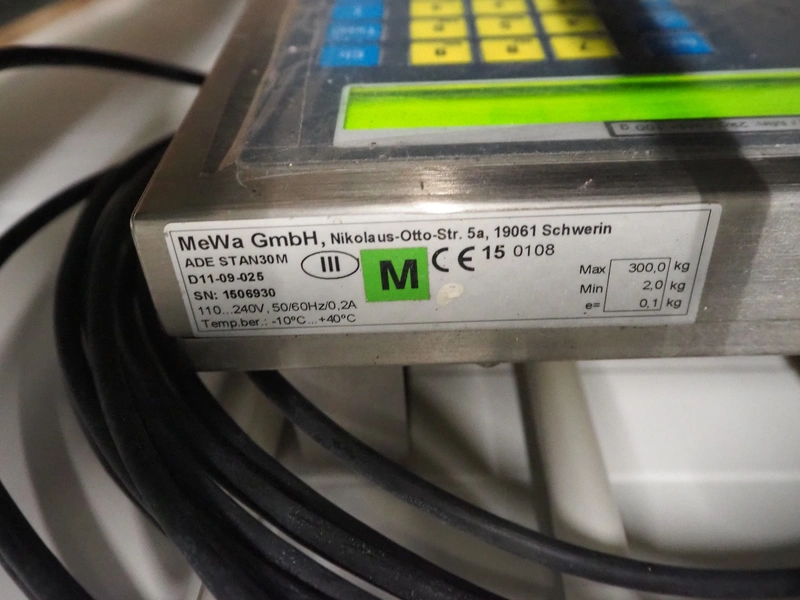 Finn-Scales OY tube rail weighing scale, diameter tube: 50 mm, length tube: 600 mm. Including MeWa indicator, model: ADE STAN30Mmaximum weight: 300 kg, minimum weight: 2 kg, e/d= 100 gram, dimensions indicator: 225 mm x 190 mm x 100 mm.