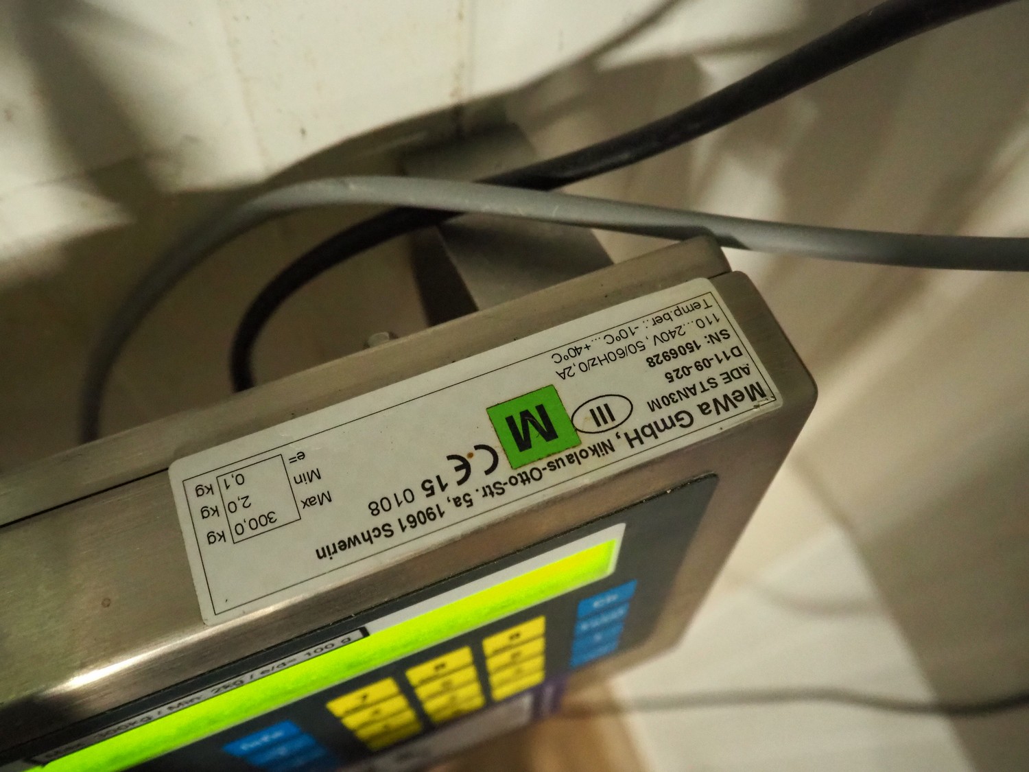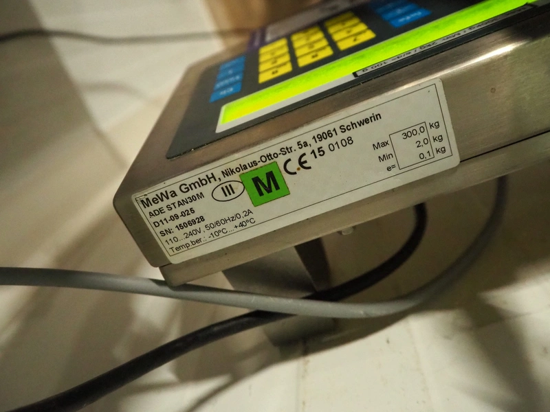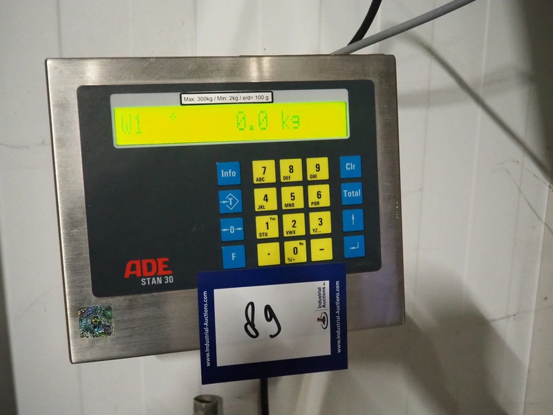 Finn-Scales OY tube rail weighing scale, diameter tube: 50 mm, length tube: 600 mm, MeWa indicator, model: ADE STAN30M, serial number: 1506928, 110-240 V, 50/60 Hz, 0.2 A, maximum weight: 300 kg, minimum weight: 2 kg, e/d= 100 gram, dimensions indicator: 225 mm x 190 mm x 100 mm and s/s control panel, dimensions control panel: 410 mm x 240 mm x 340 mm.