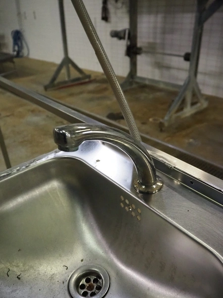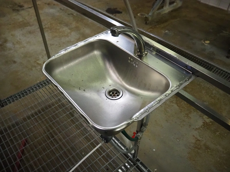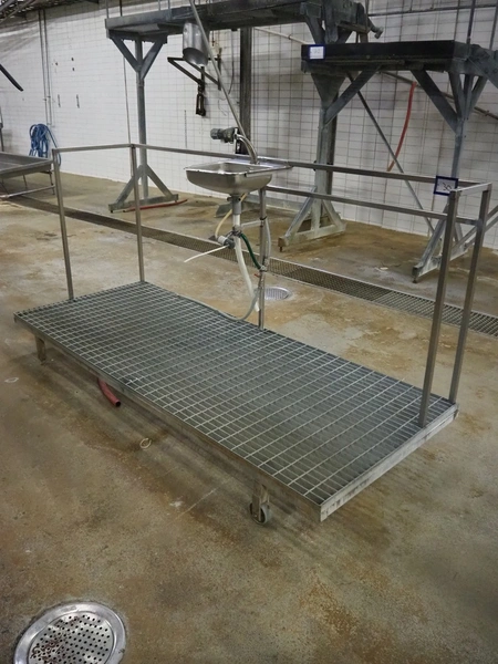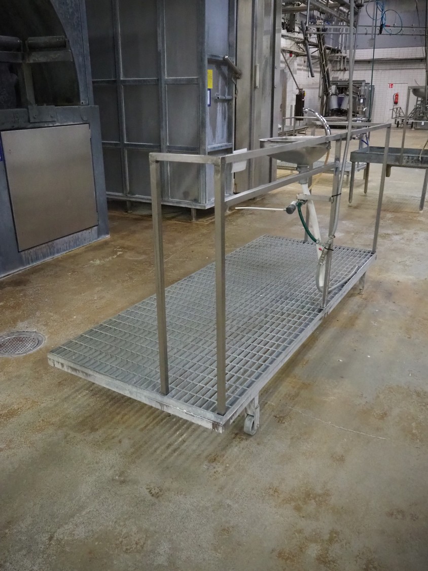 S/s platform with s/s sink, knee control, working height: 270 mm, total dimensions: 2500 mm x 1000 mm x 1380 mm.