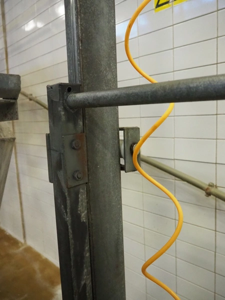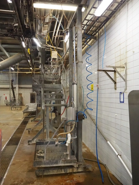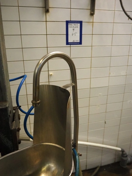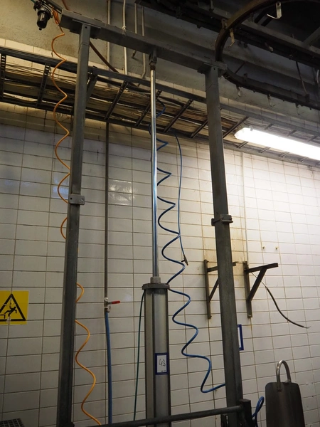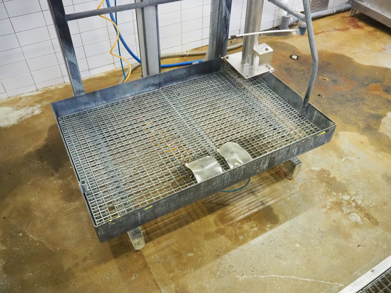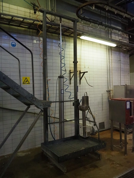 Steel working platform with s/s sink, knee control, height adjustable, dimensions platform: 1220 mm x 820 mm, total dimensions: 1220 mm x 1200 mm x 3500 mm.