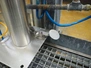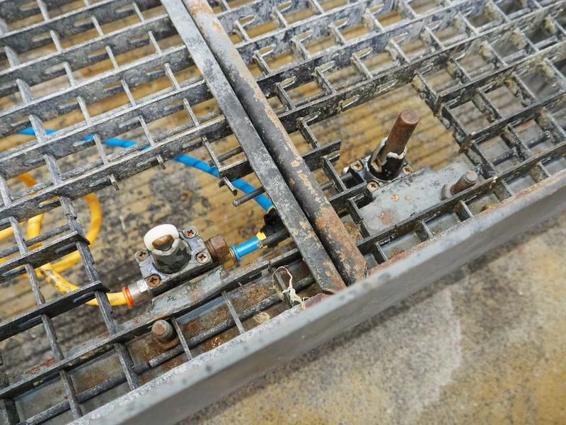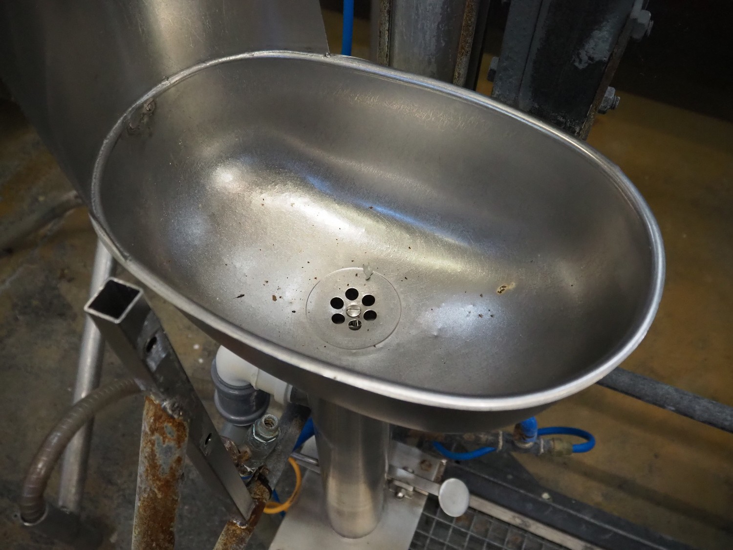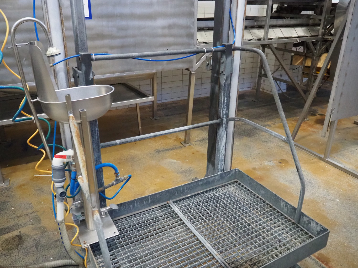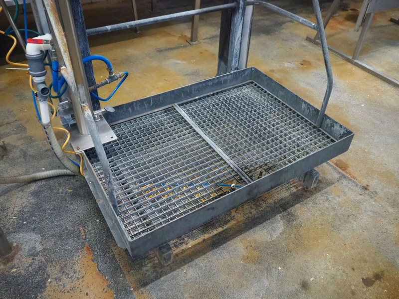 Steel working platform with s/s sink, foot control, height adjustable, dimensions platform: 1220 mm x 820 mm, total dimensions: 1350 mm x 1200 mm x 3600 mm.