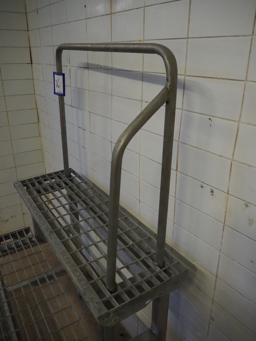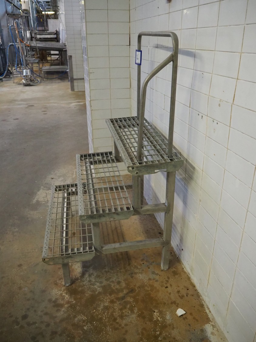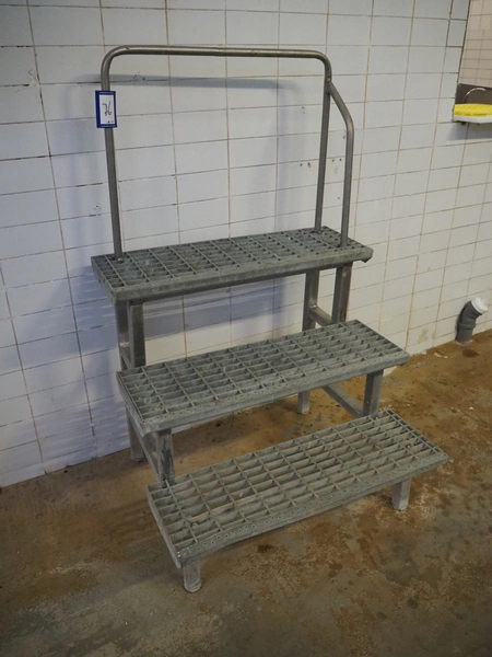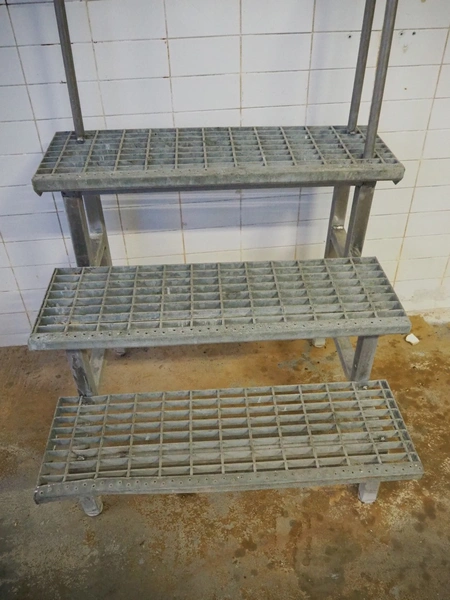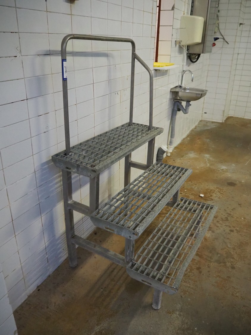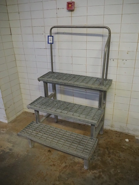 Galvanized steel stairs, 3 steps, working height: 830 mm, total dimensions: 900 mm x 820 mm x 1440 mm.
