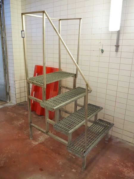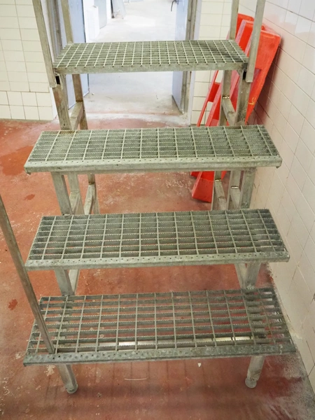 Galvanized steel stairs, 4 steps, working height: 1200 mm, total dimensions: 1200 mm x 1000 mm x 2130 mm.