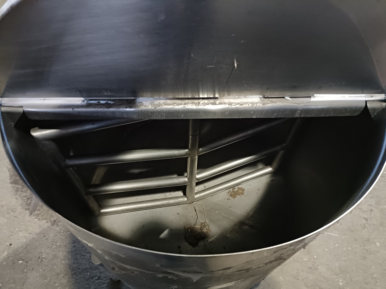 S/s mixing tank, inside dimensions: Ø 780 mm x 850 mm, total dimensions: Ø 800 mm x 1300 mm.