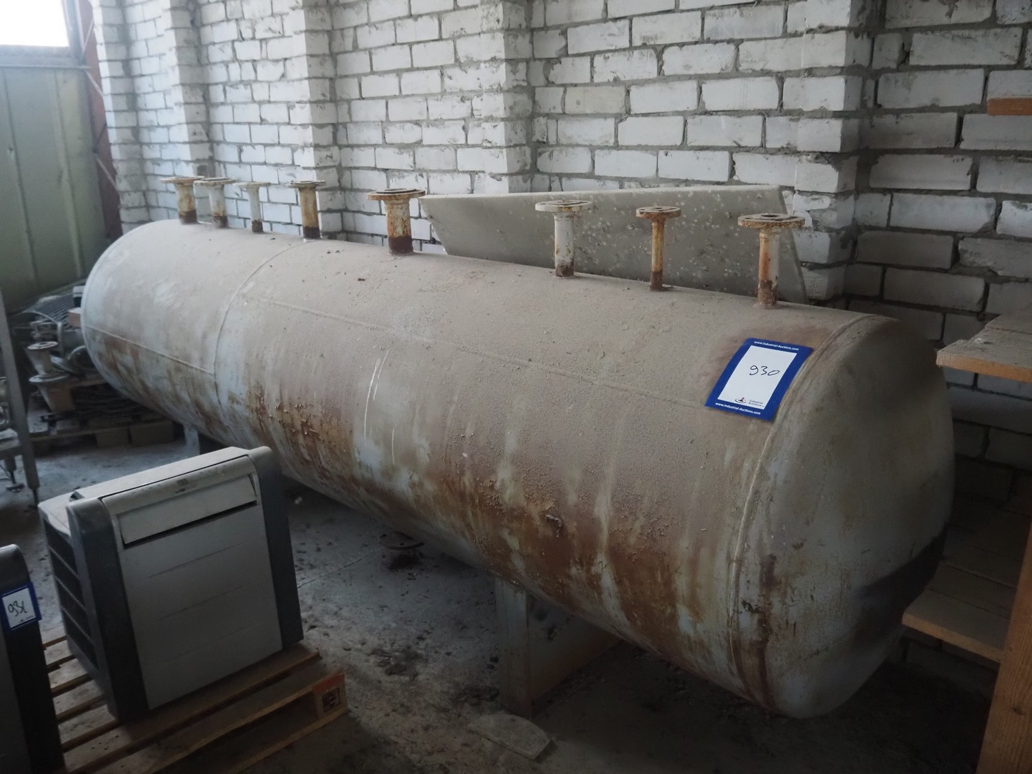 Steel tank, dimensions: 3400 mm x 800 mm x 1400 mm.