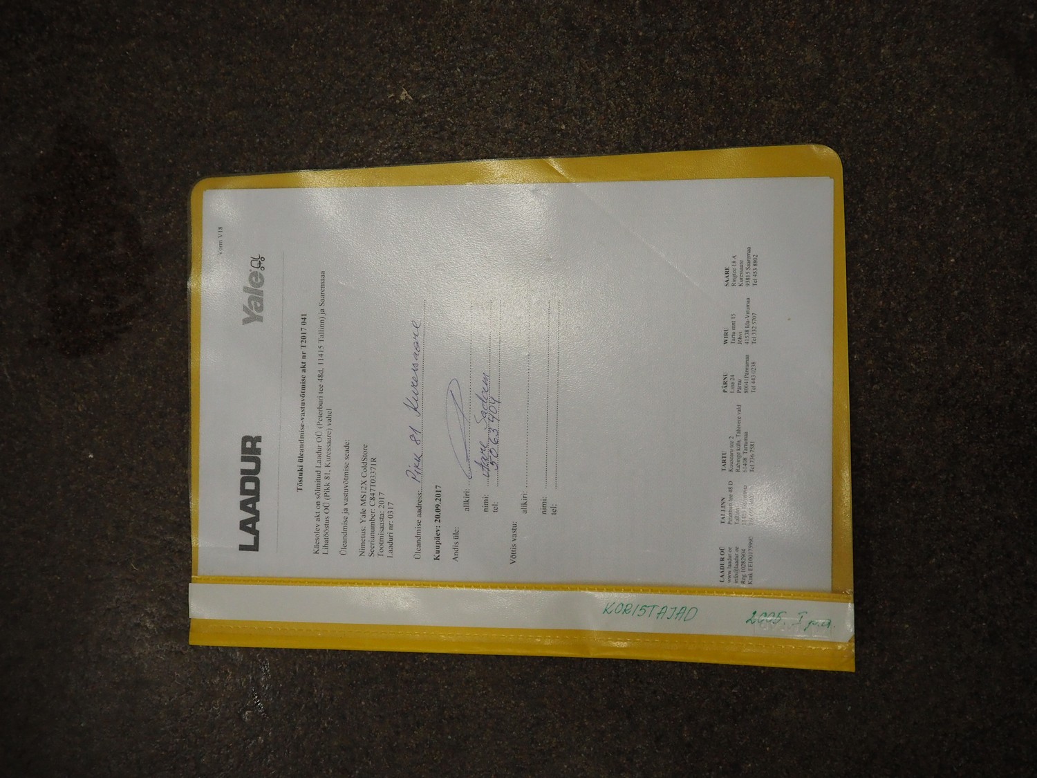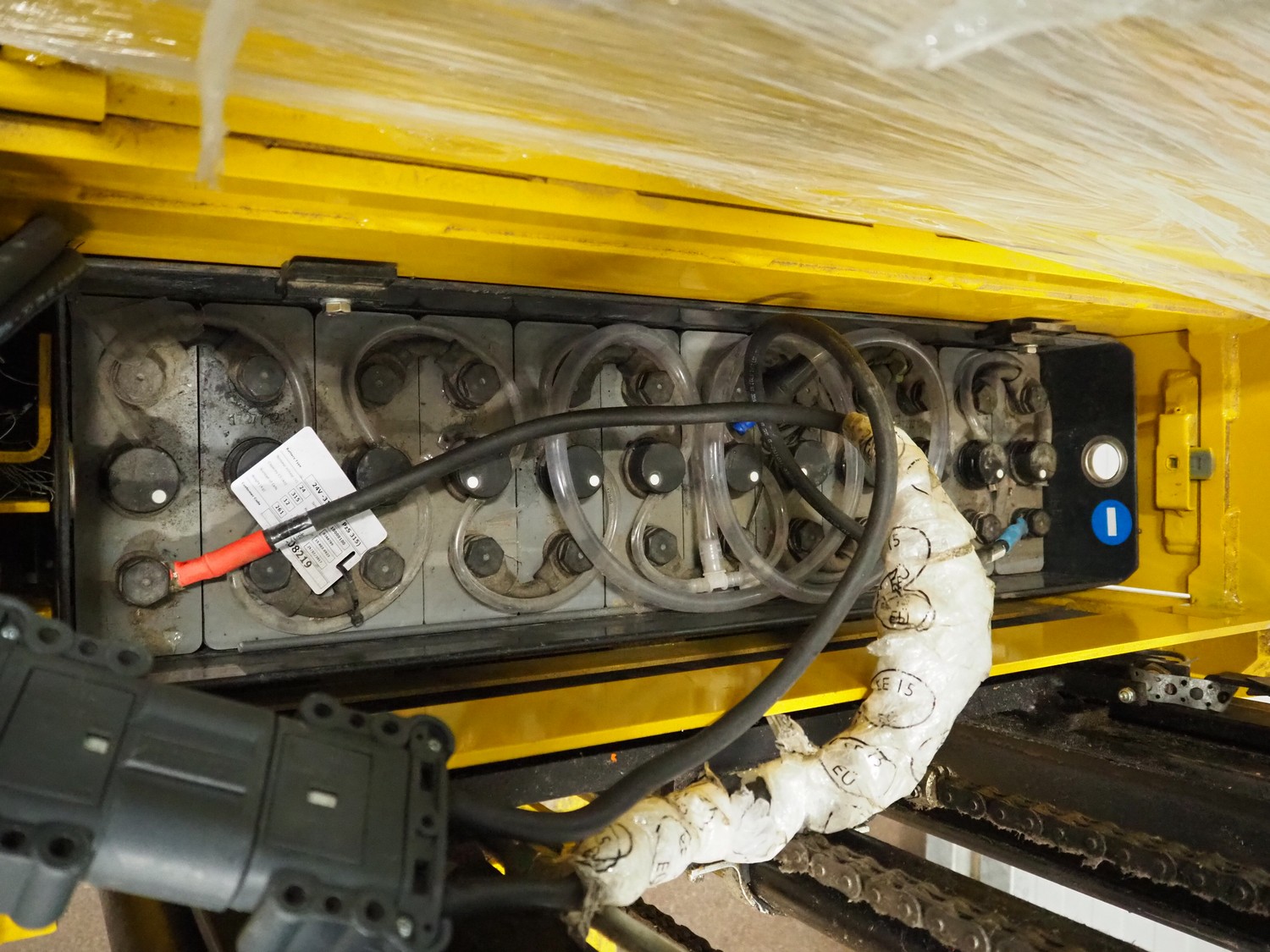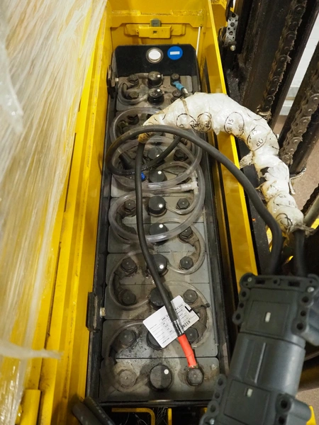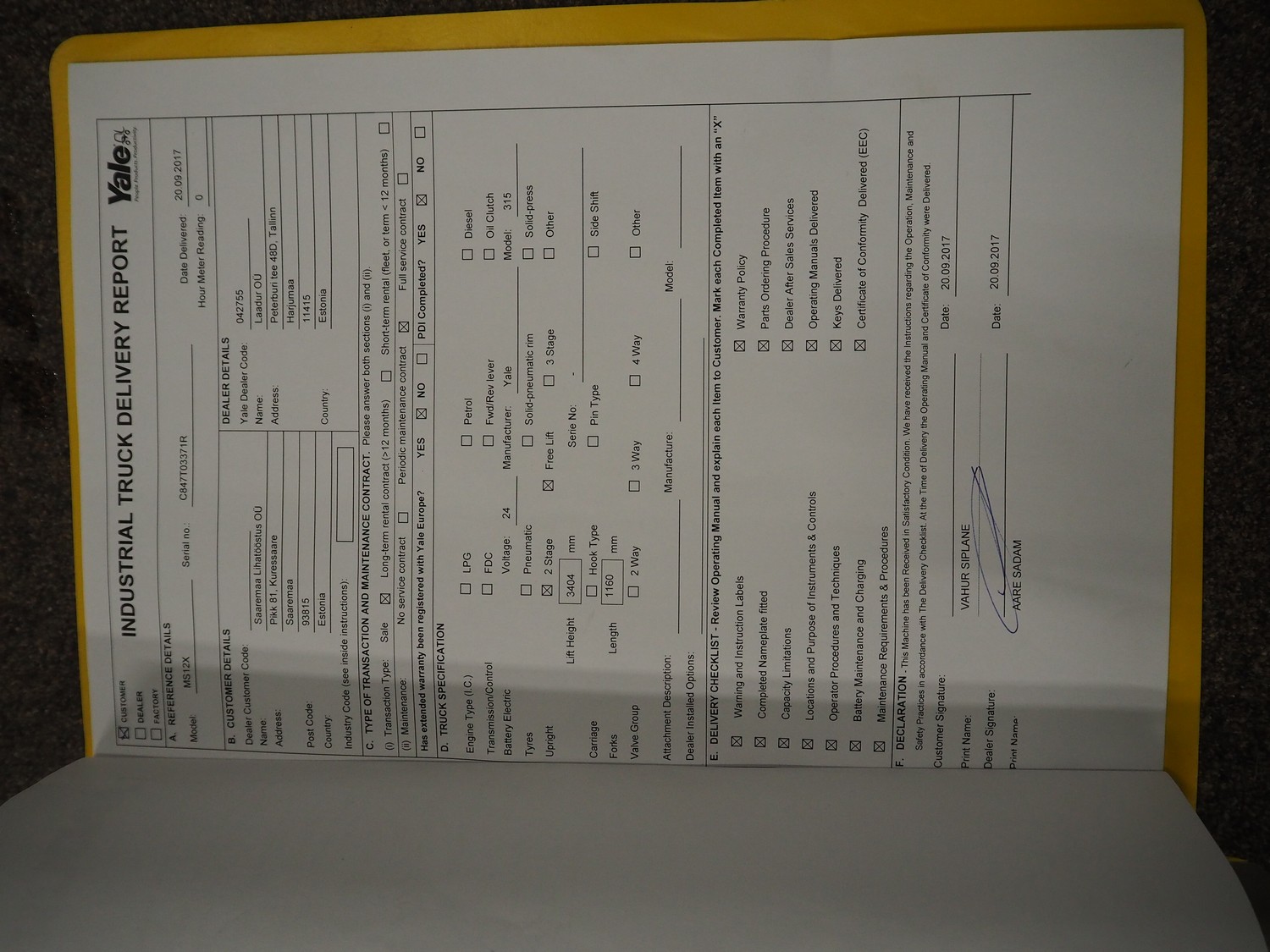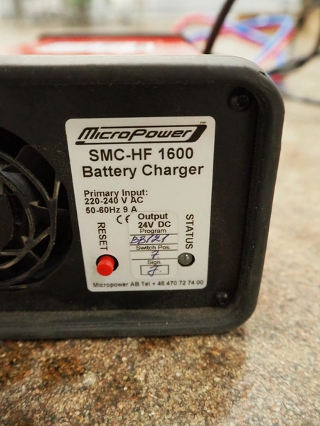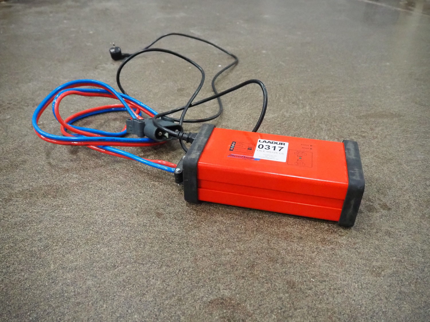Yale Europe electrical pallet lifter, model: MS12X, serial number: C847T03371R, year of construction: 2017, nominal capacity: 1200 kg, weight without battery: 1180 kg, battery weight: 254/306 kg, nominal power: 4.00 kW, battery voltage: 24 V, working hours: 2633 h, fork length: 1150 mm, maximum lifting height: 3400 mm, total dimensions: 2550 mm x 900 mm x 2250 mm. Including Micropower AB battery charger.