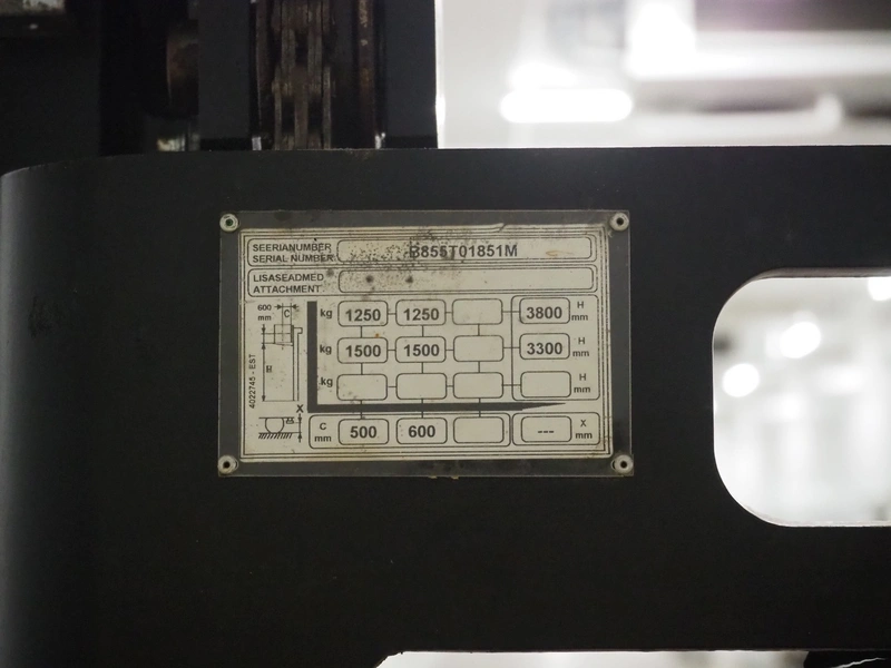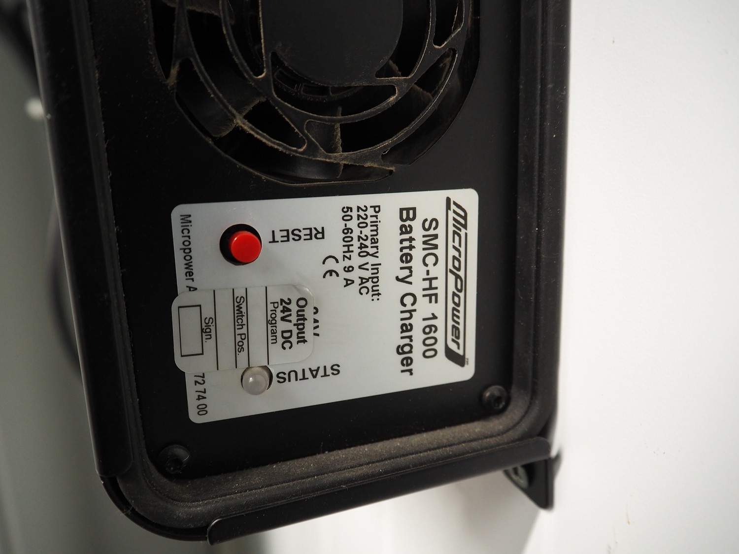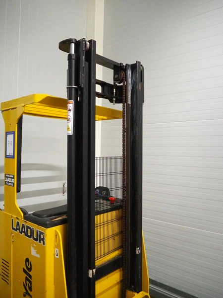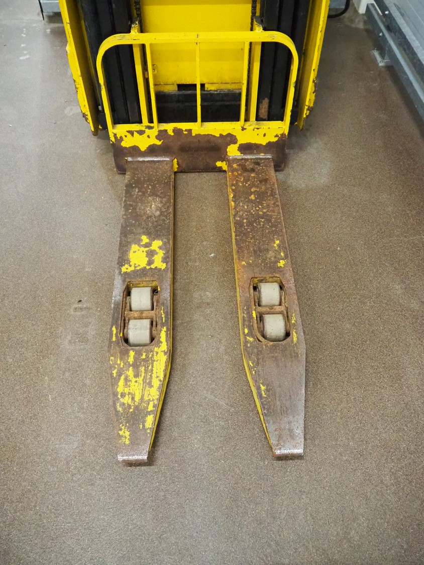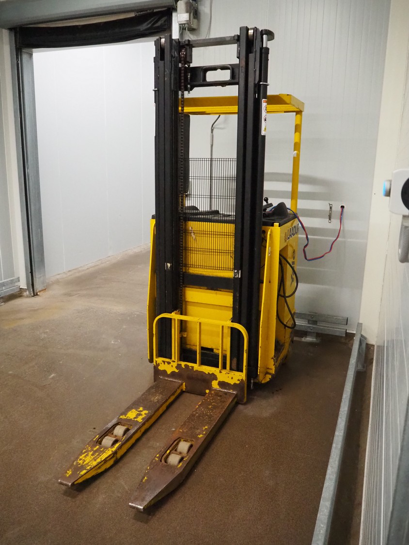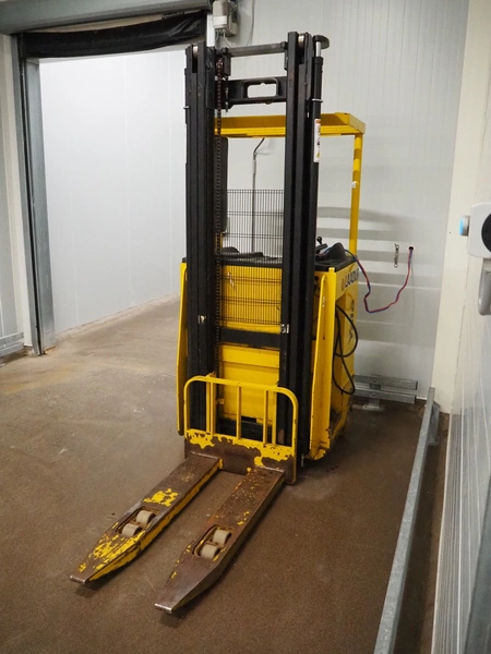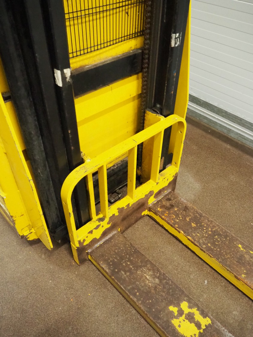 Yale Europe electrical pallet lifter, model: MS15S, serial number: B855T01851M, year of construction: 2014, nominal capacity: 1500 kg, weight without battery: 1259 kg, battery weight: 353/397 kg, nominal power: 2.6 kW, battery voltage: 24 V, fork length: 1160 mm, maximum lifting height: 3800 mm, total dimensions: 2300 mm x 950 mm x 2350 mm. Including Micropower AB battery charger. Technical condition unknown.