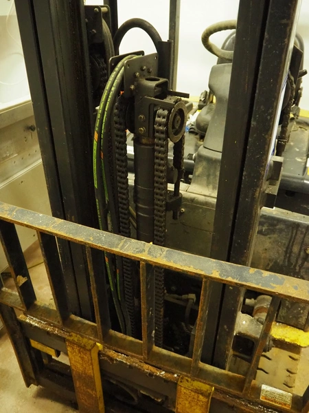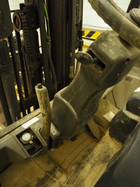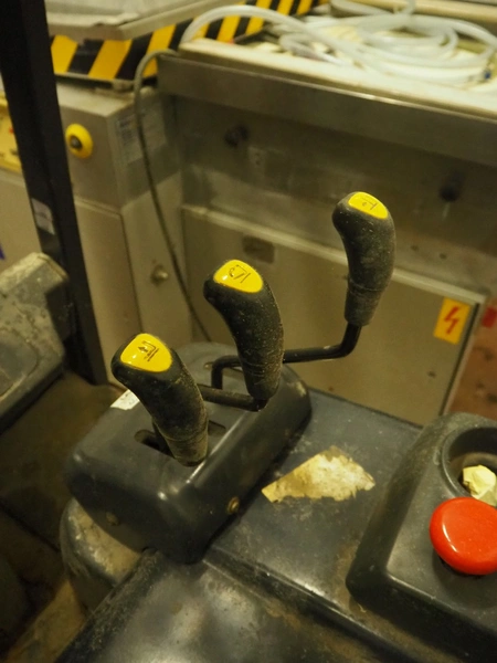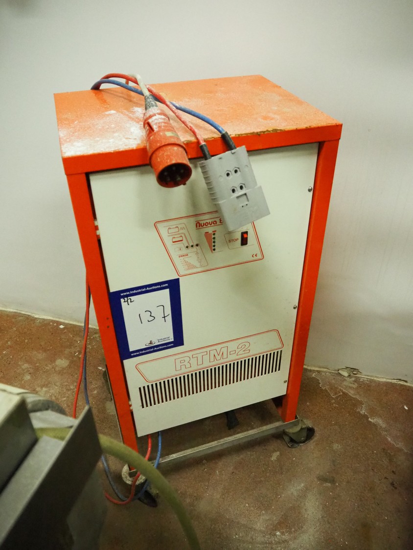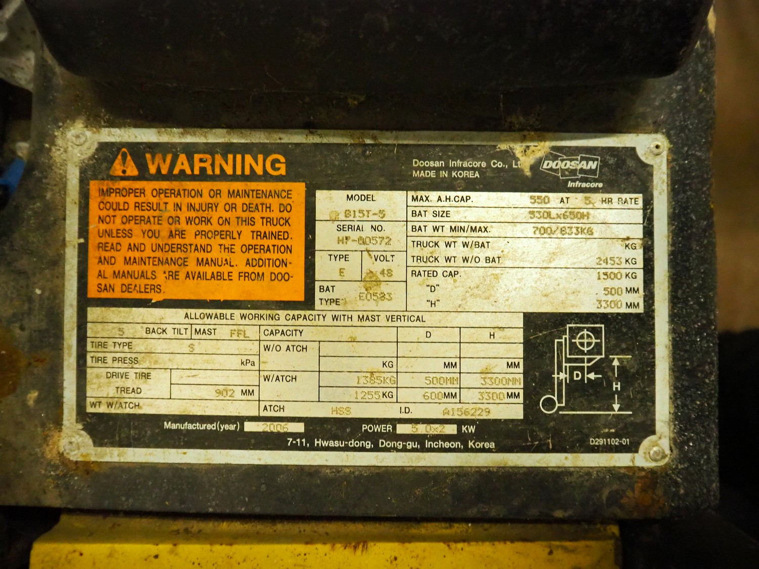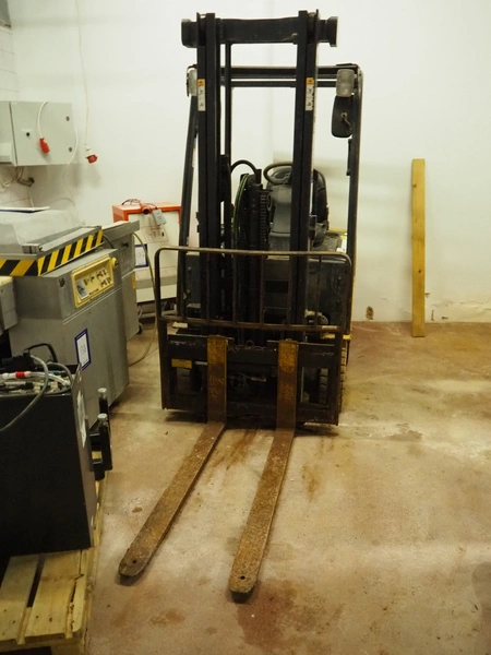 Daewoo electrical forklift, capacity: 1500 kg, fork length: 1200, total dimensions: 3200 mm x 1100 mm x 2120 mm. Including Nuova Elettra battery charger, model: RTM 2, number: 26010911, dimensions battery charger: 500 mm x 400 mm x 1040 mm. Technical condition unknown.