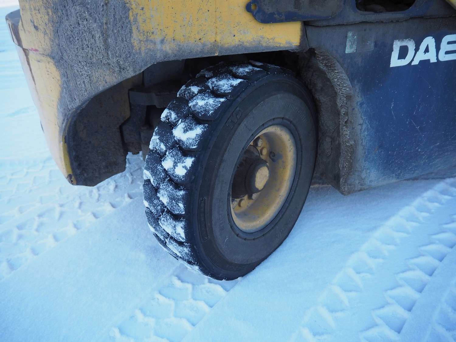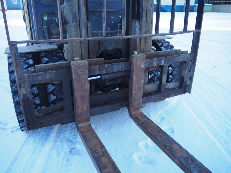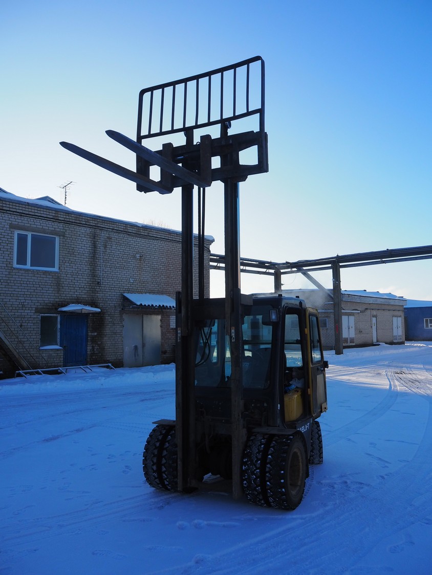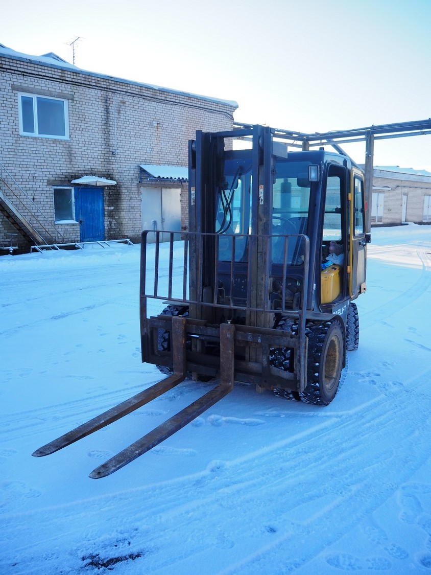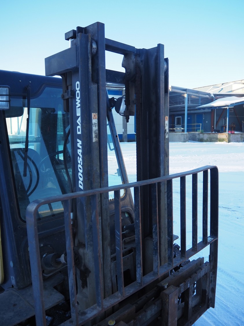 Doosan forklift truck, model: D25S-3, serial number: FH-01335, year of construction: 2006, rated capacity: 2500 kg, maximum lifting height: 3300 mm, fork length: 1500 mm, fuel: diesel, total dimensions: 4200 mm x 1600 mm x 2300 mm. Technical condition unknown.