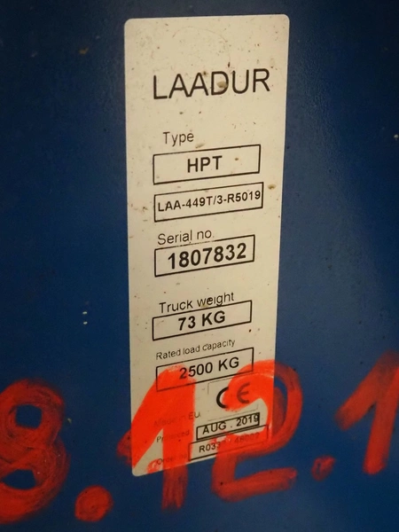 Laadur steel pallet lifter, capacity: 2500 kg, fork length: 1130 mm, total dimensions: 1460 mm x 520 mm x 1150 mm.
