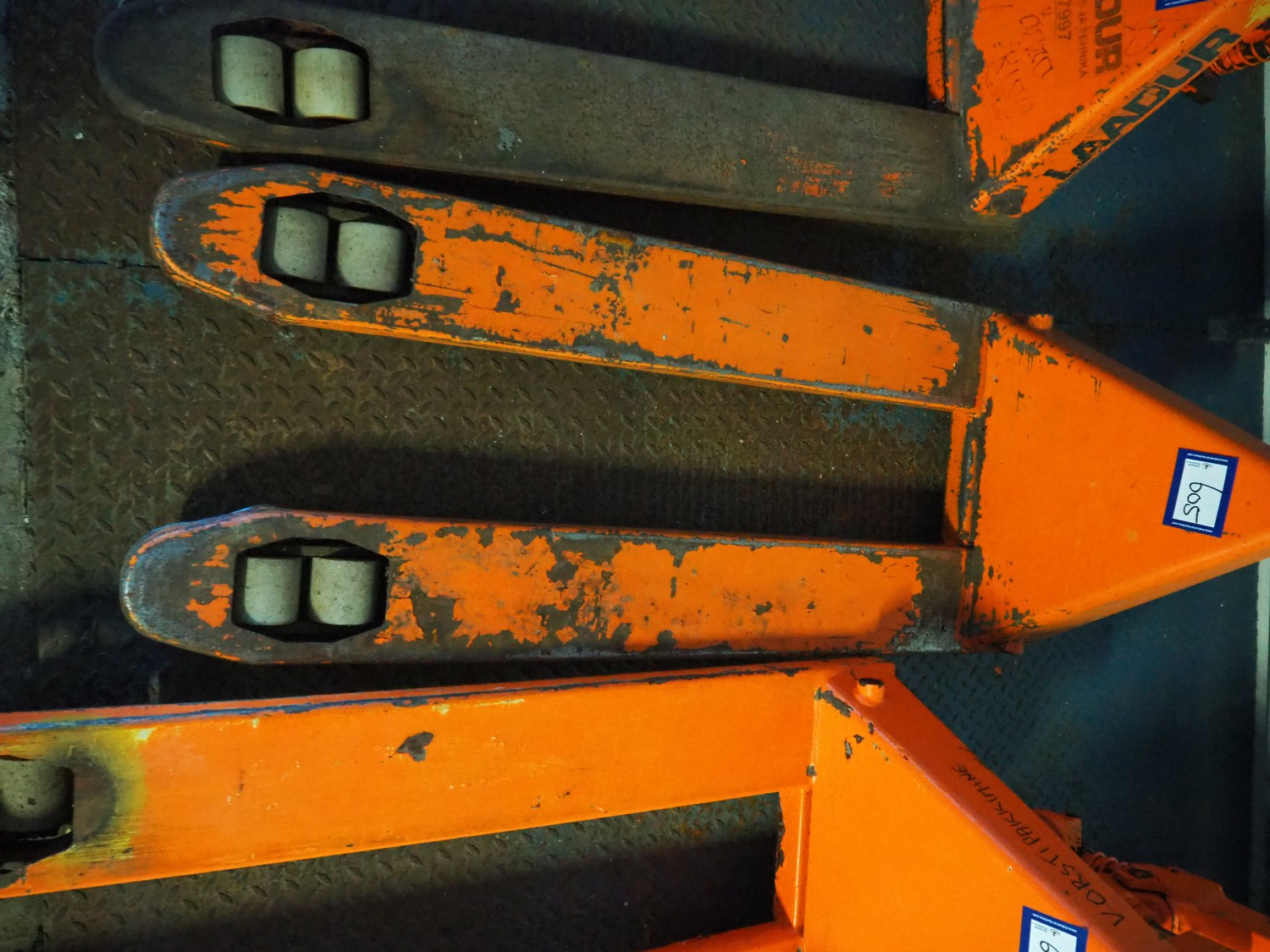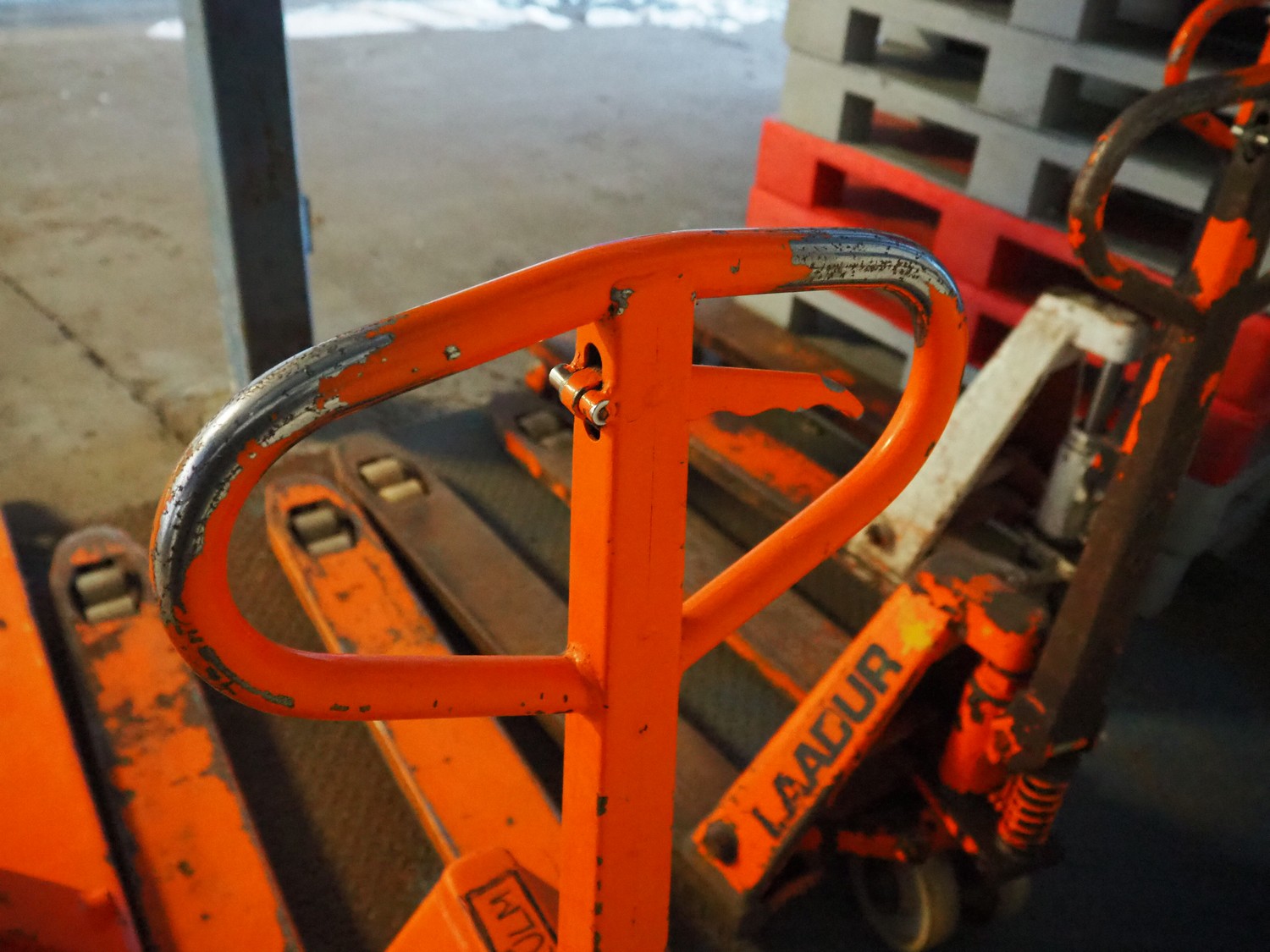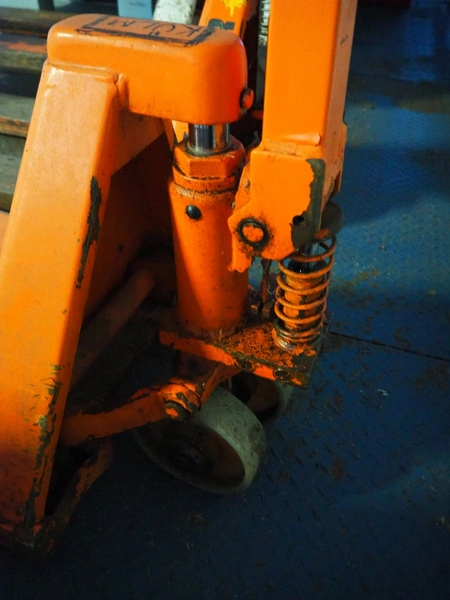 Laadur steel pallet lifter, fork length: 1130 mm, total dimensions: 1460 mm x 520 mm x 1150 mm. Defect.