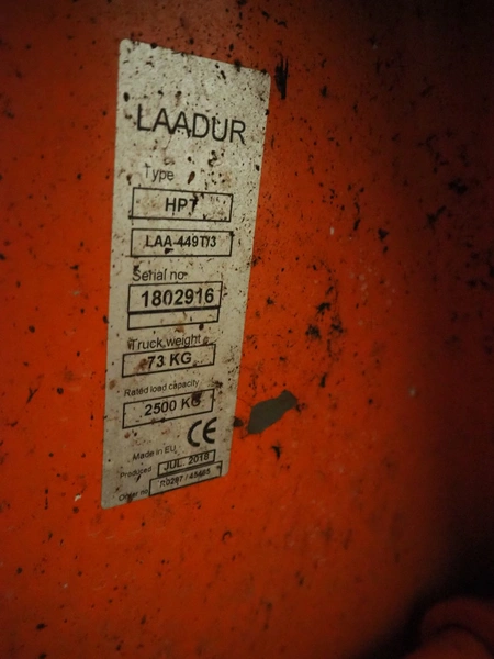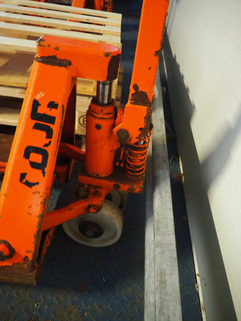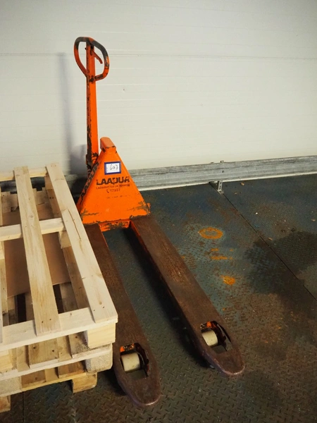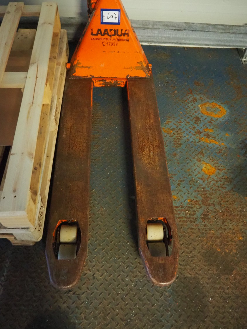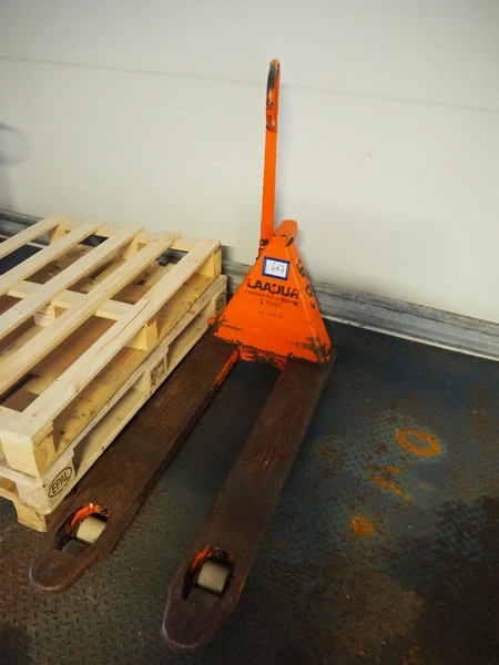 Laadur steel pallet lifter, fork length: 1130 mm, total dimensions: 1460 mm x 520 mm x 1150 mm. Defect.