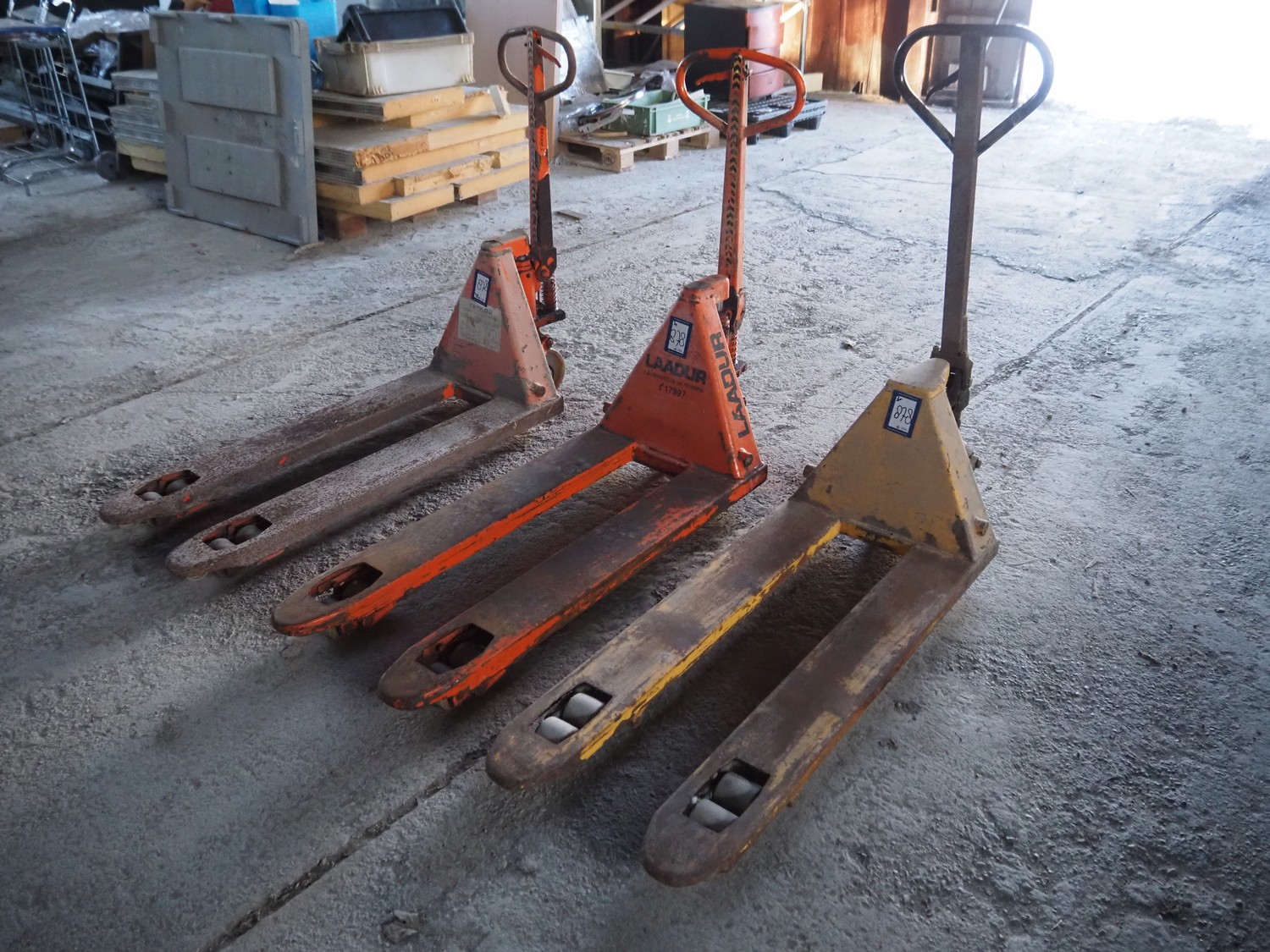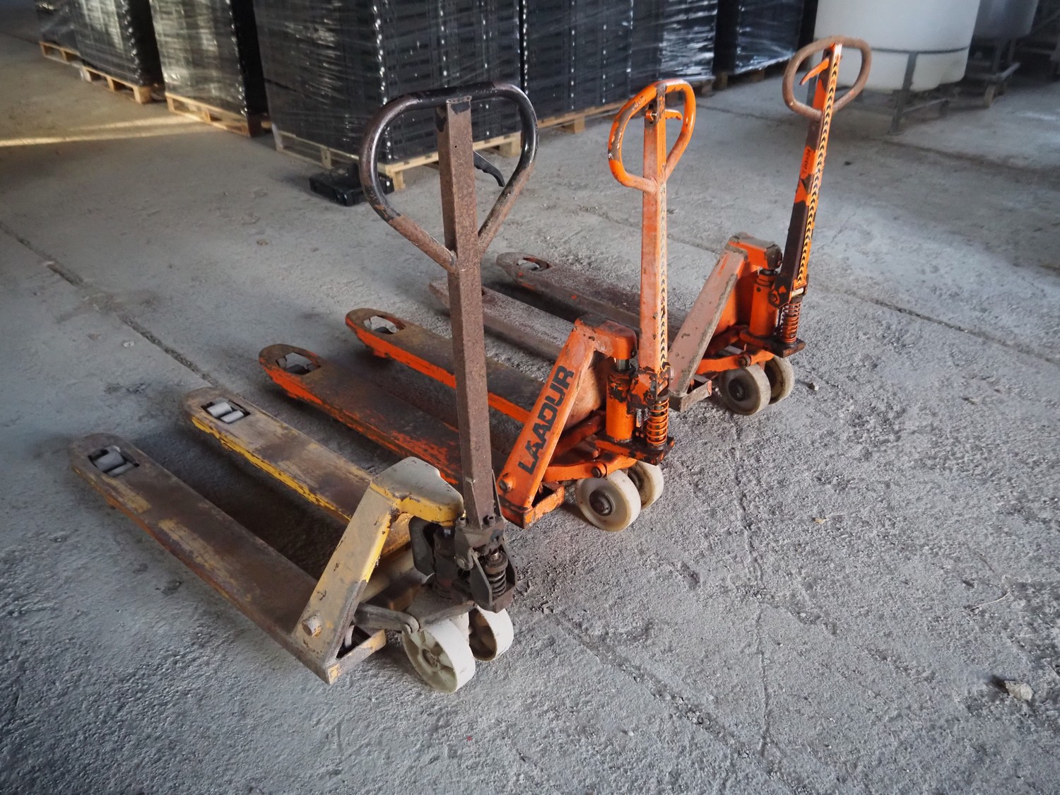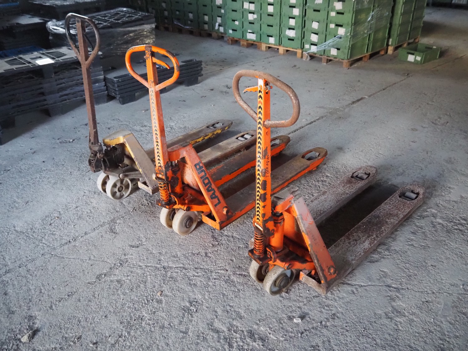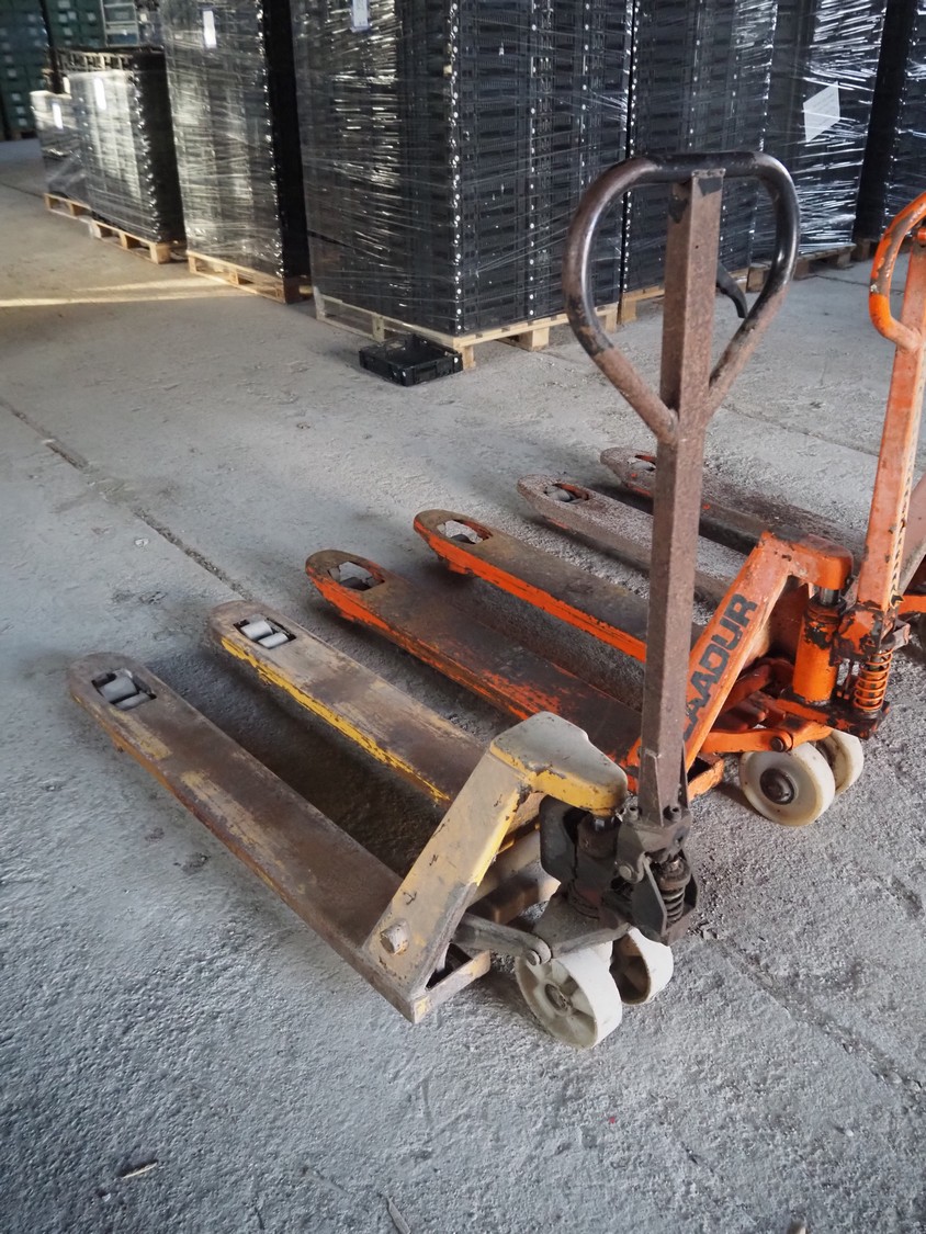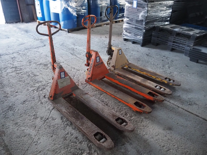 3 Laadur steel pallet lifters, fork length: 1130 mm, total dimensions: (3x) 1460 mm x 520 mm x 1150 mm.
