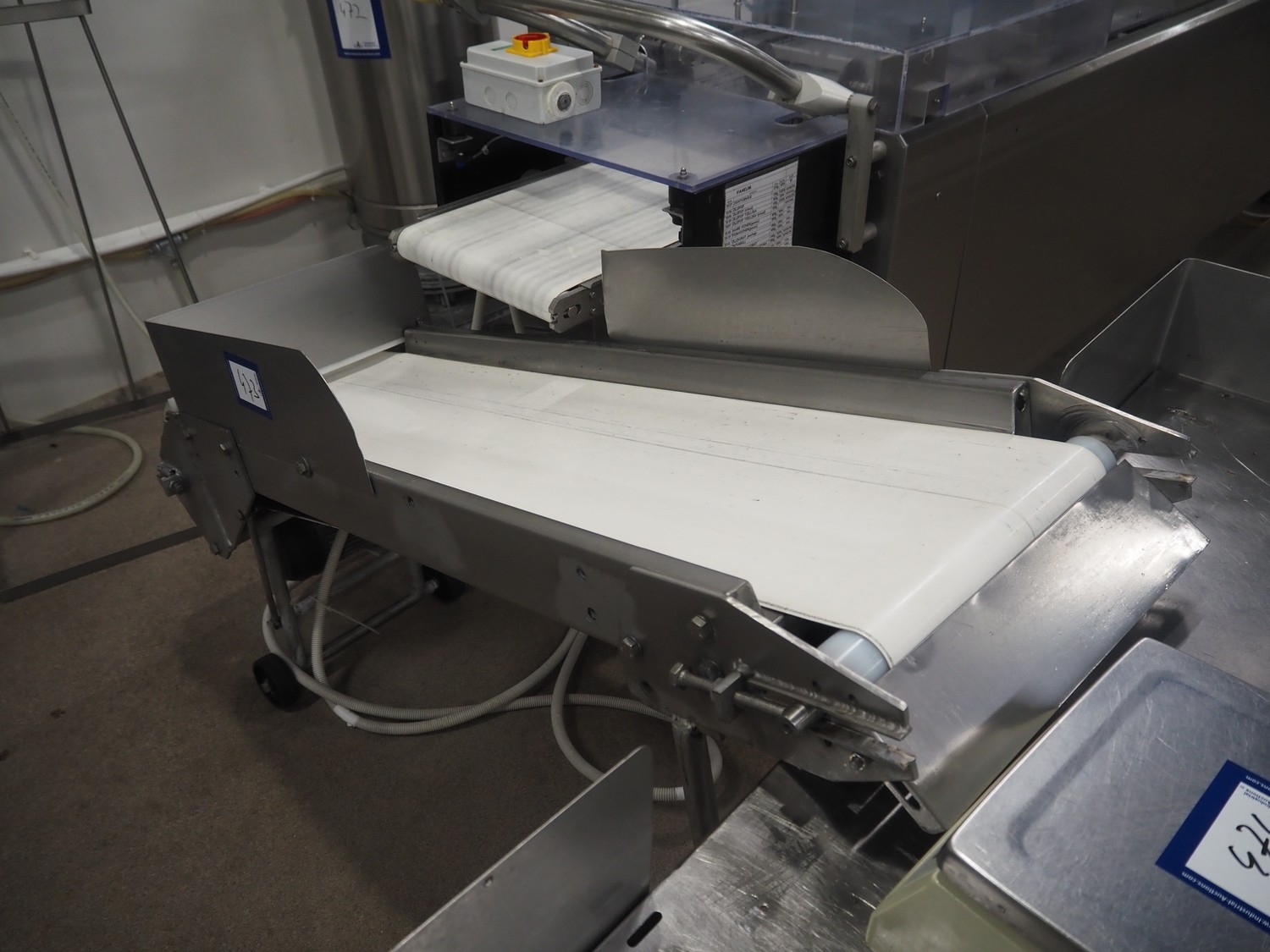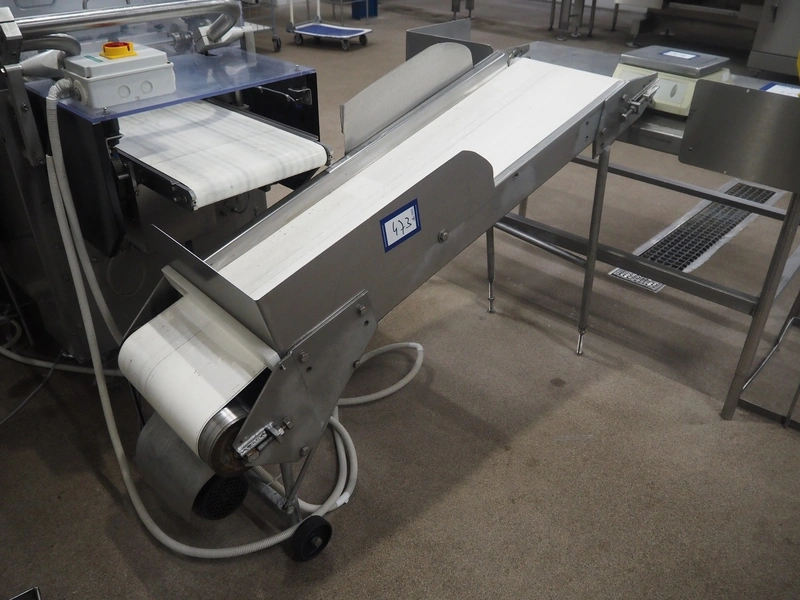 Elevating belt, s/s frame, plastic belt, belt width: 335 mm, elevating height: 880 mm, total dimensions: 1460 mm x 460 mm x 950 mm.