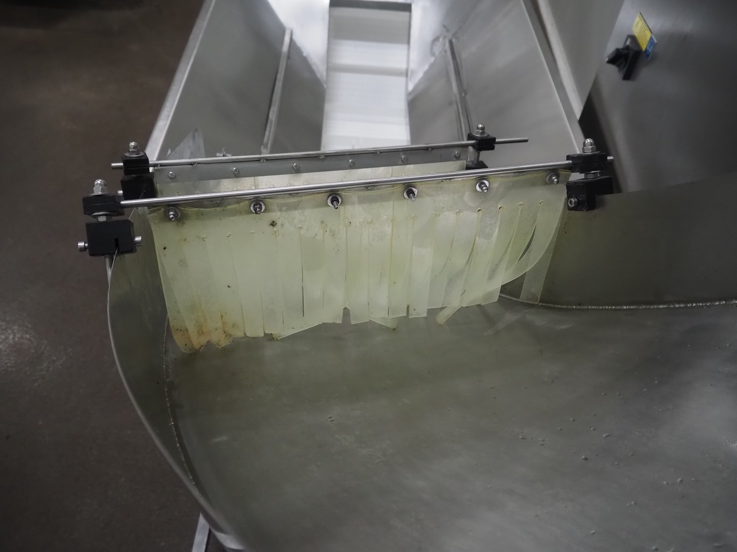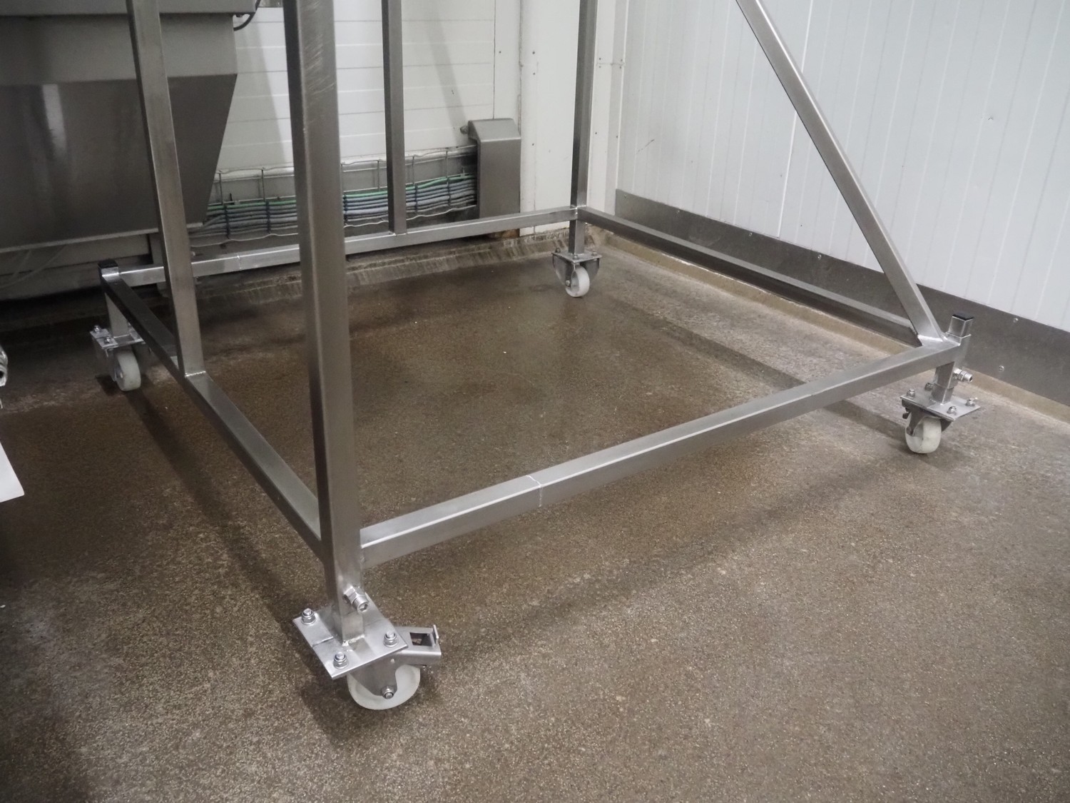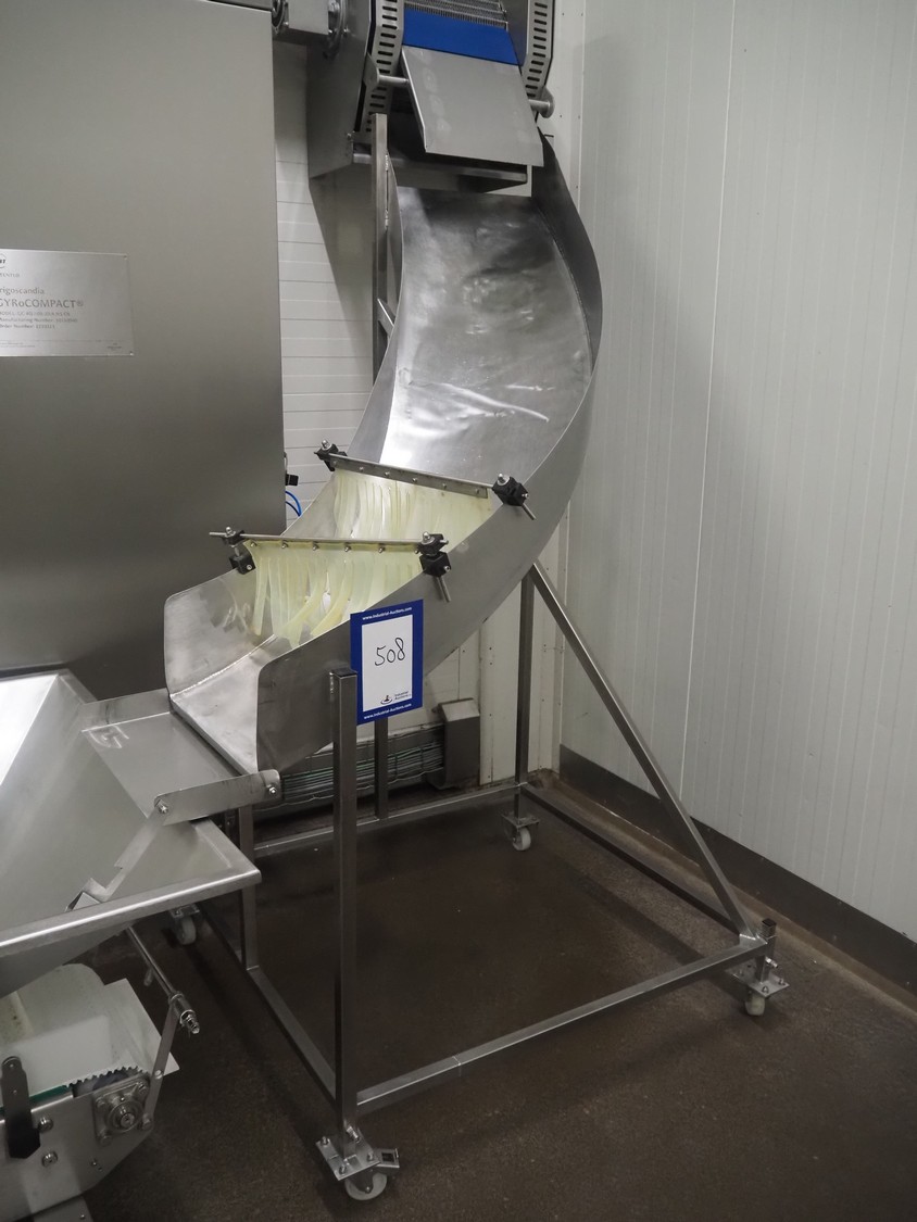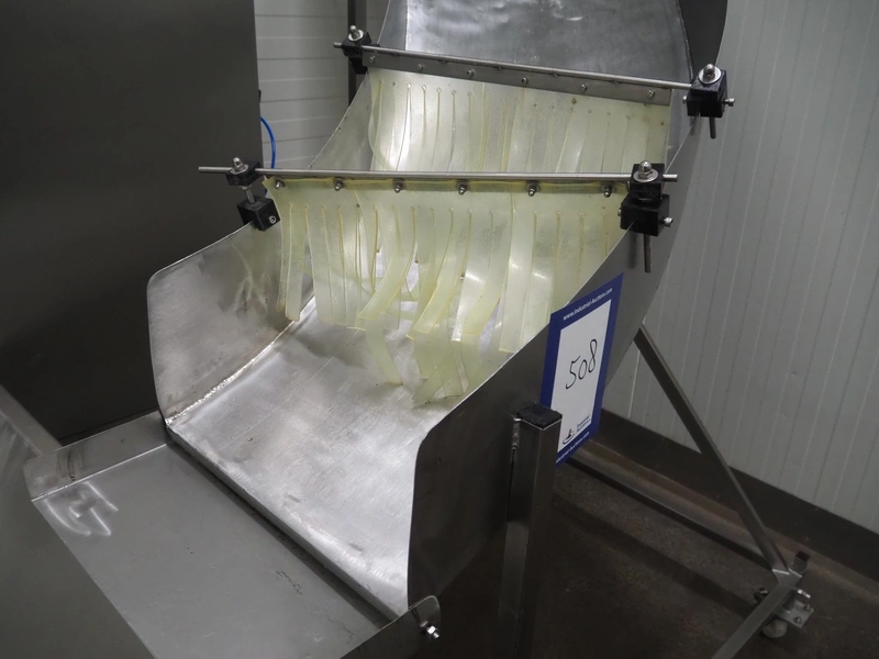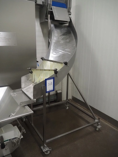 Mobile de-elevating gutter, gutter width: 460 mm, de-elevating height: from 2000 mm to 900 mm, total dimensions: 1400 mm x 1100 mm x 2150 mm.
