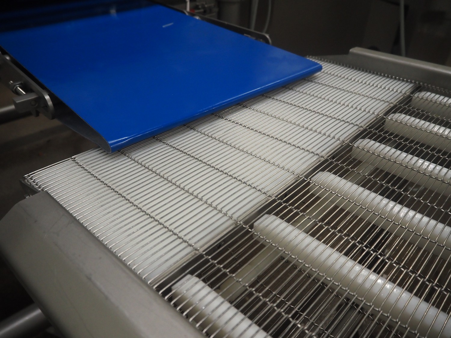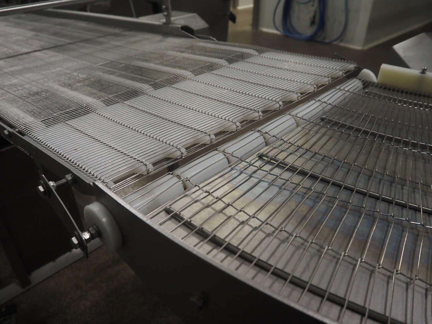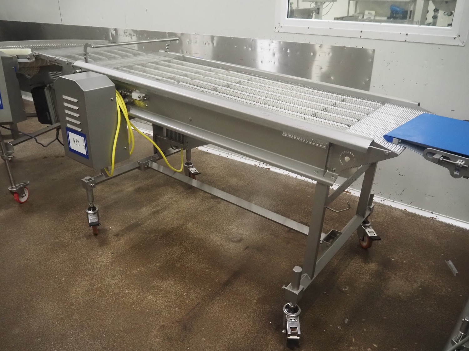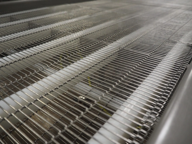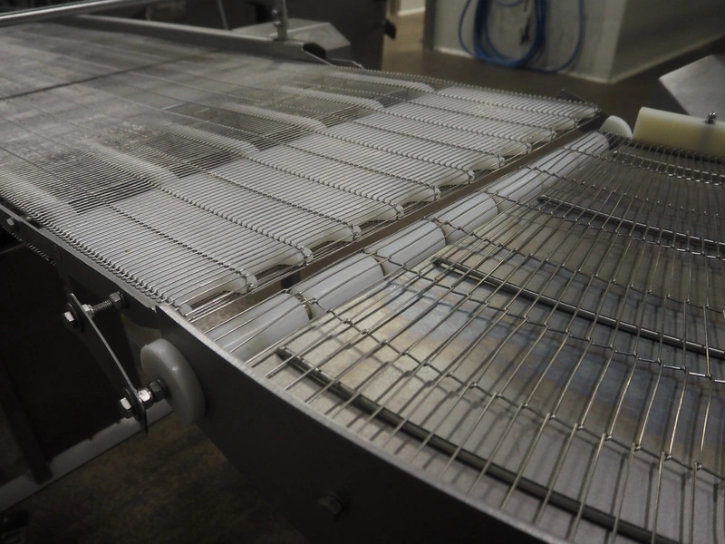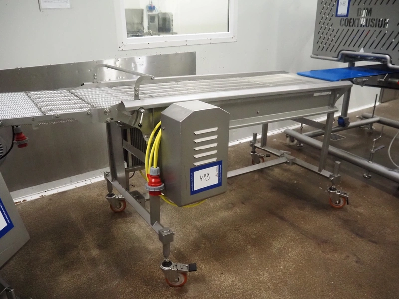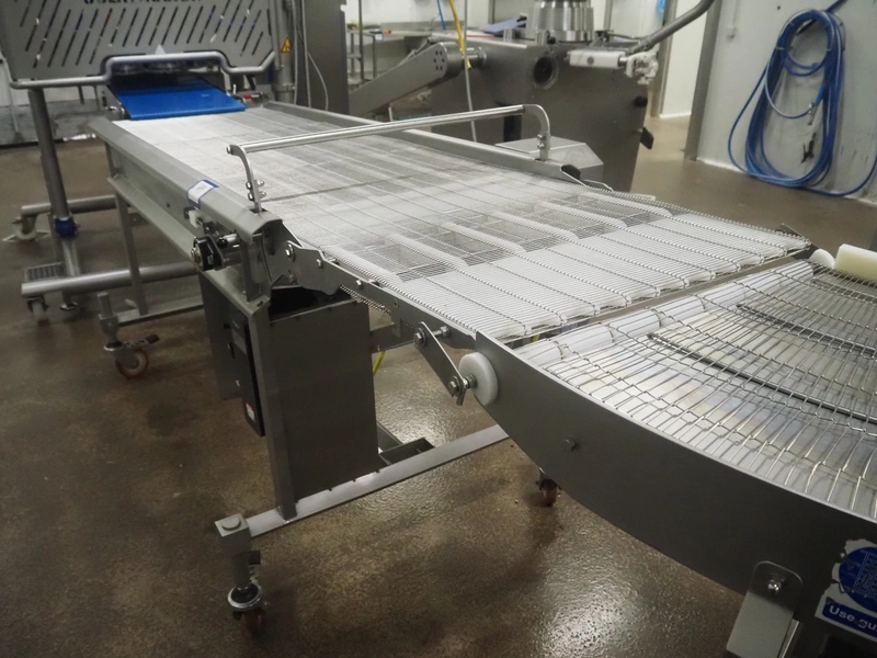 Stork mobile mesh belt, s/s frame, s/s mesh belt, belt width: 630 mm, total dimensions: 2500 mm x 1050 mm x 1250 mm.